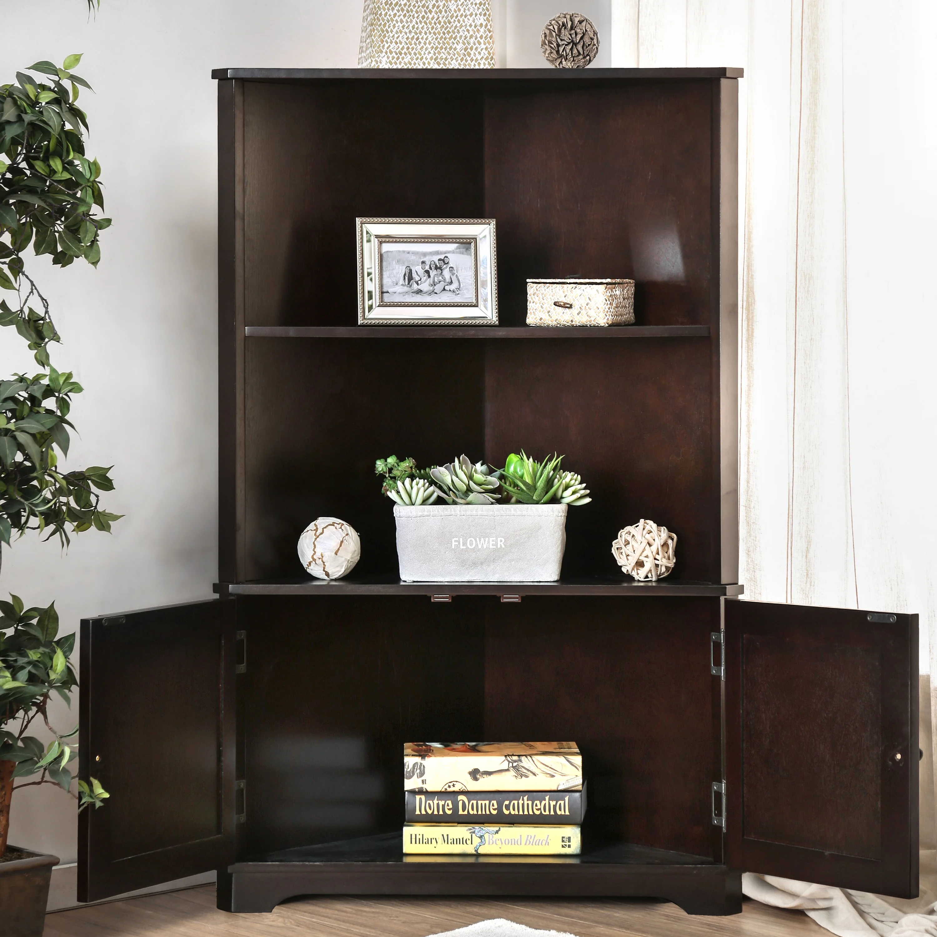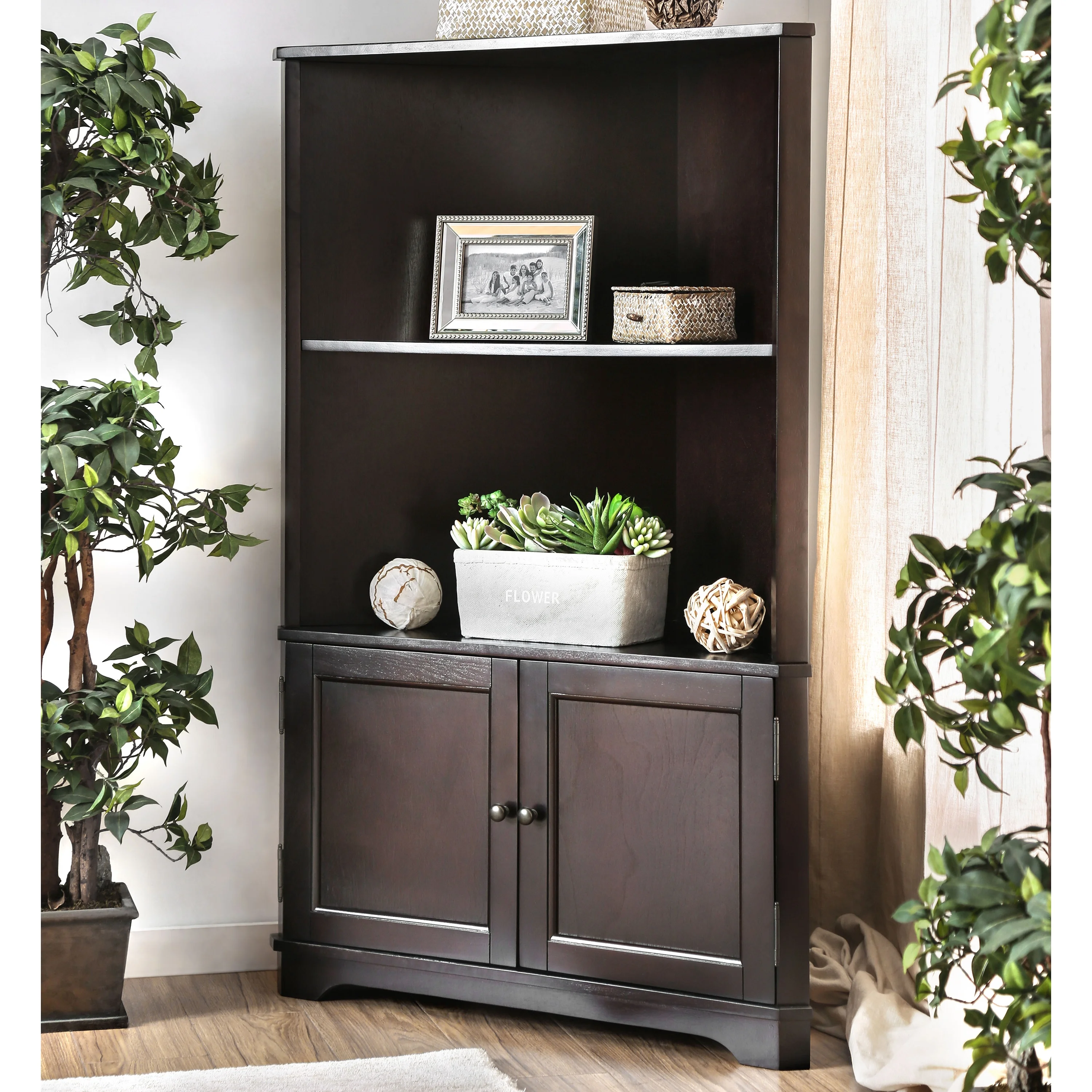 Augusta Indoor 2-Shelf Wood Espresso Corner Bookshelf for Home Office by Furniture of America