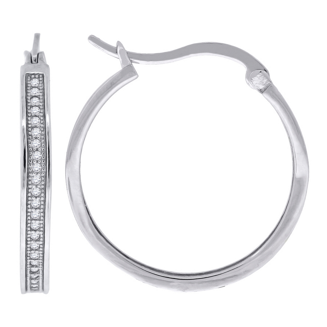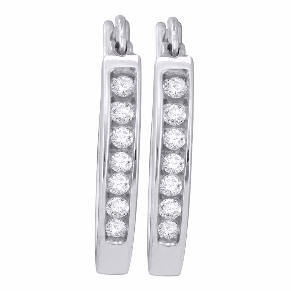 14kt White Gold Womens Round Channel-set Diamond Single Row Hoop Earrings 1/4 Cttw