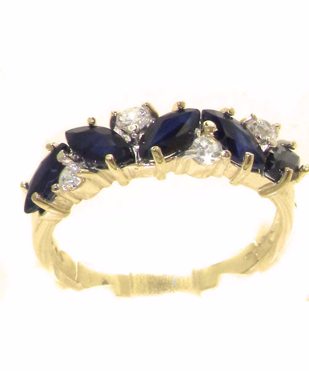 LBG British Made 9k Yellow Gold Natural Sapphire & Diamond Womens Eternity Ring - 33 size options