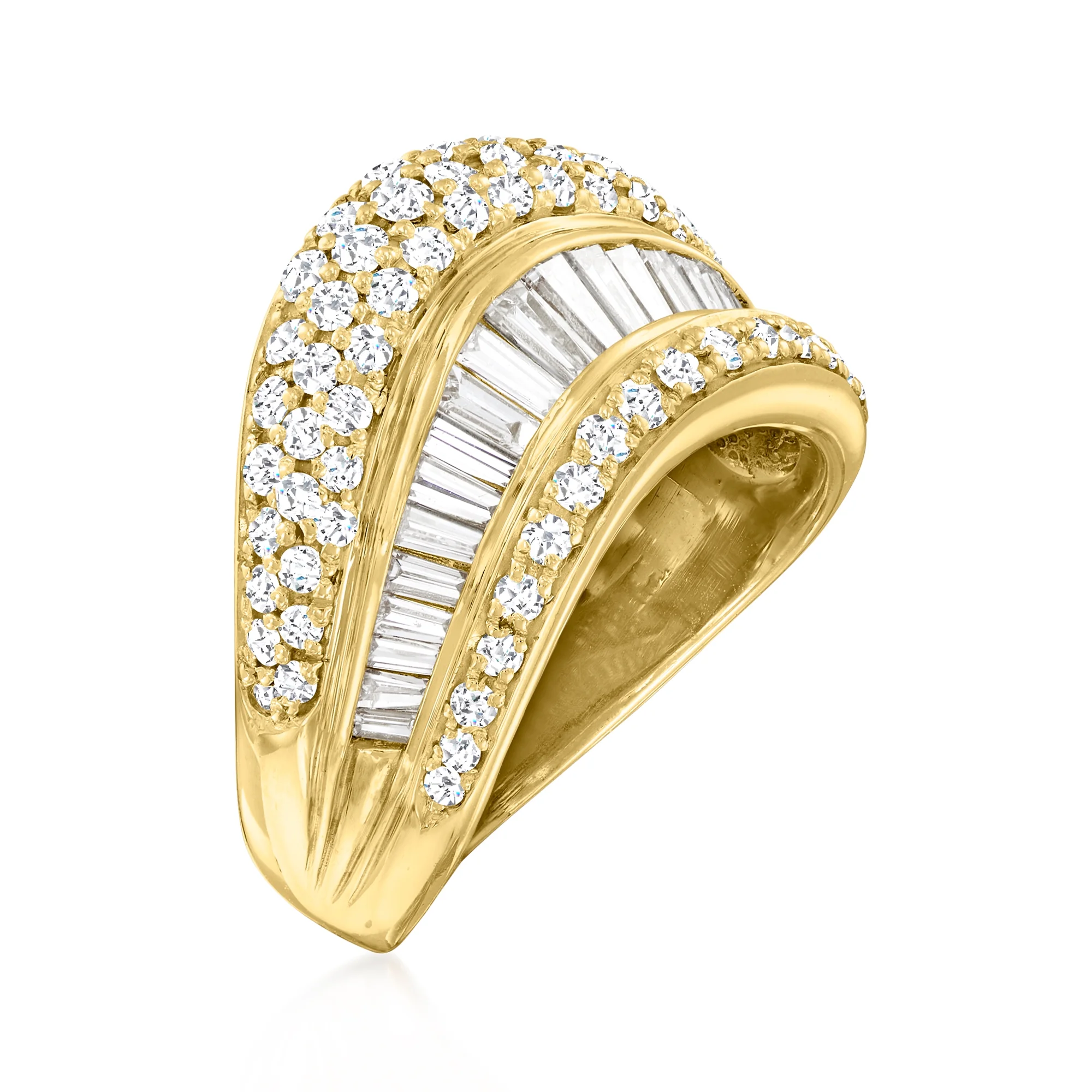 Ross-Simons C. 1980 Vintage 1.34 ct. t.w. Diamond 3-Row Ring in 18kt Yellow Gold, Women's, Adult, Pre-Owned