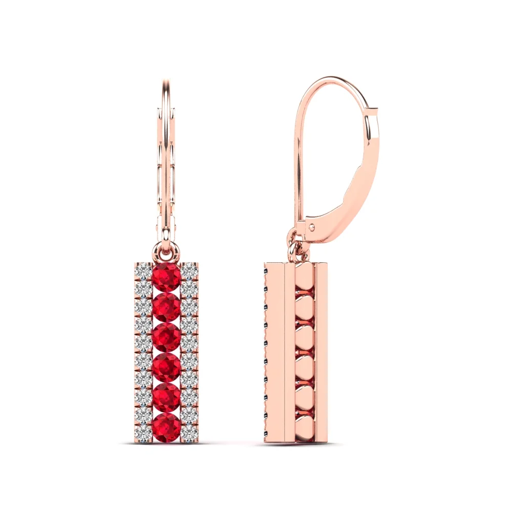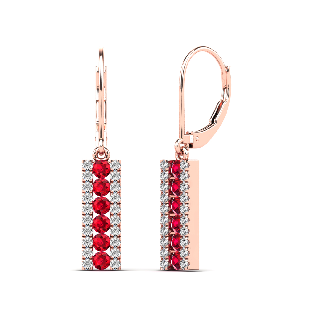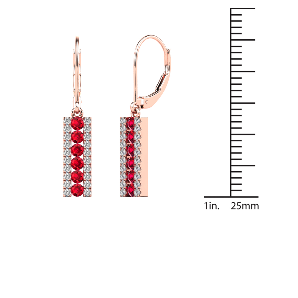 aaXia 14K Rose Gold 1/5ct.TDW Diamond and Ruby Bar Drop Earrings (H-I, I1-I2)