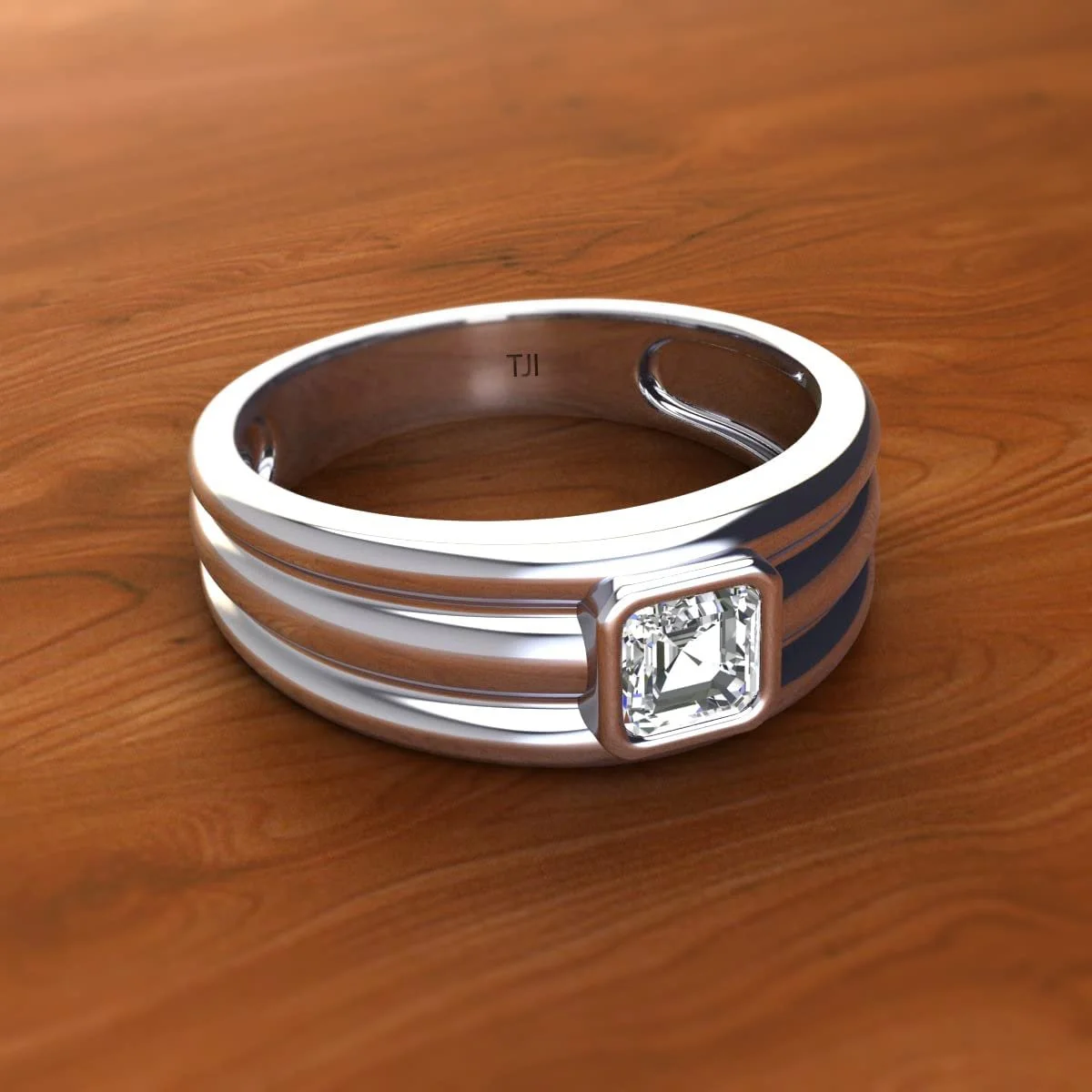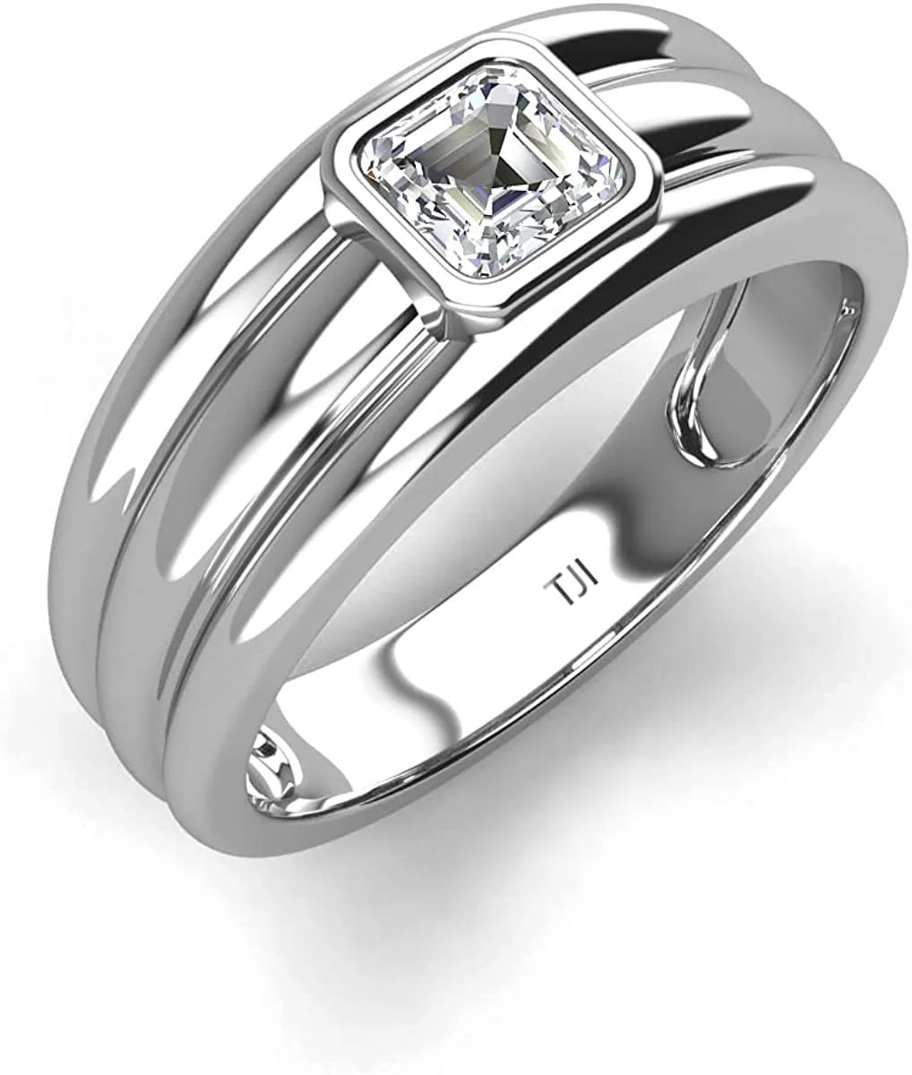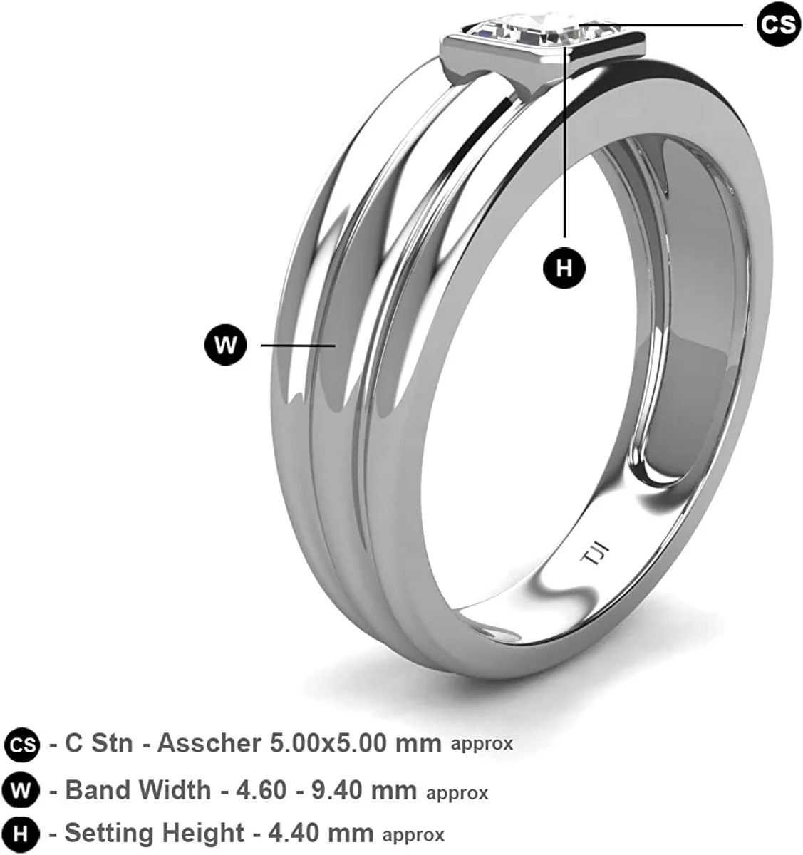 Asscher GIA Certified Natural Diamond 3/4 ctw High Polished Solitaire Men Wedding Band 14K White Gold-11.0