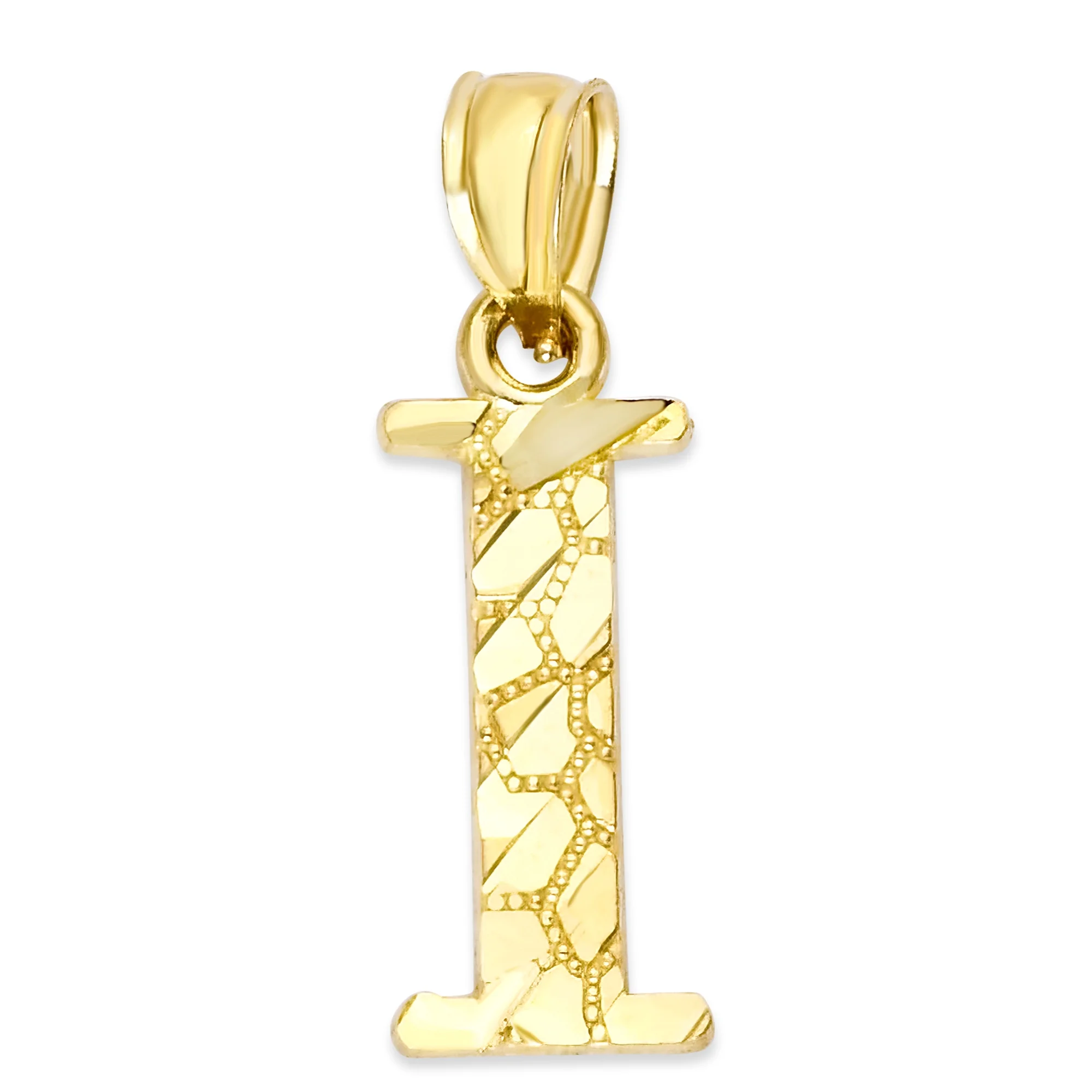 14k Solid Gold Nugget Initial Pendant, Personalized Letter Jewelry, Gifts for Her Letter I