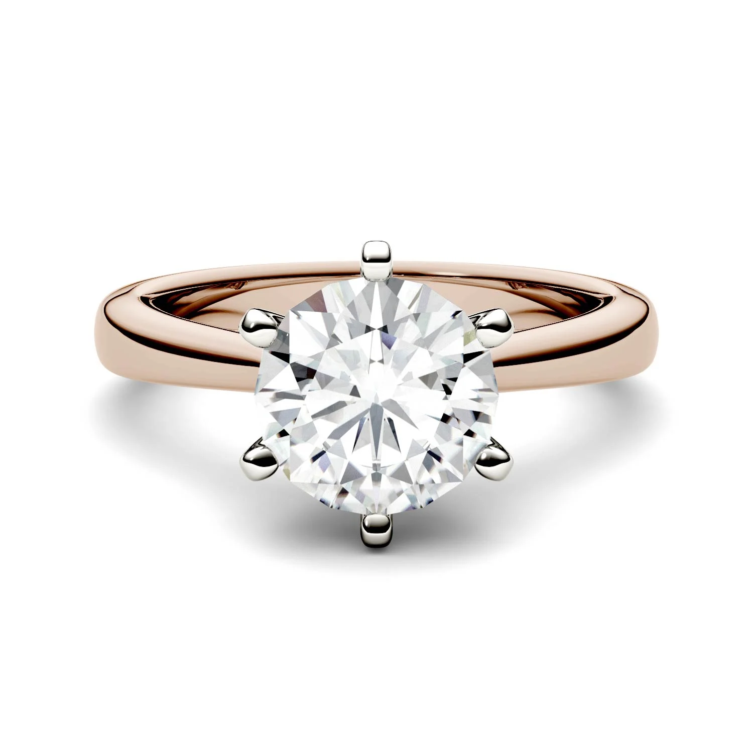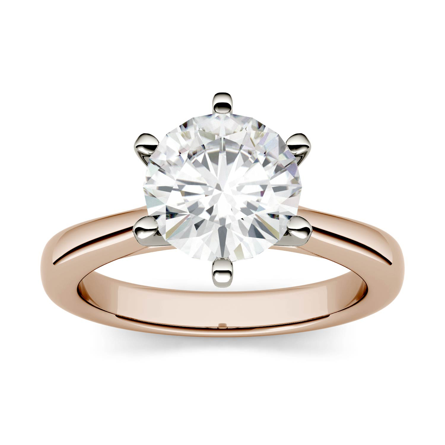 14K Rose Gold Moissanite by Charles & Colvard Round Solitaire Engagement Ring 1.90 DEW
