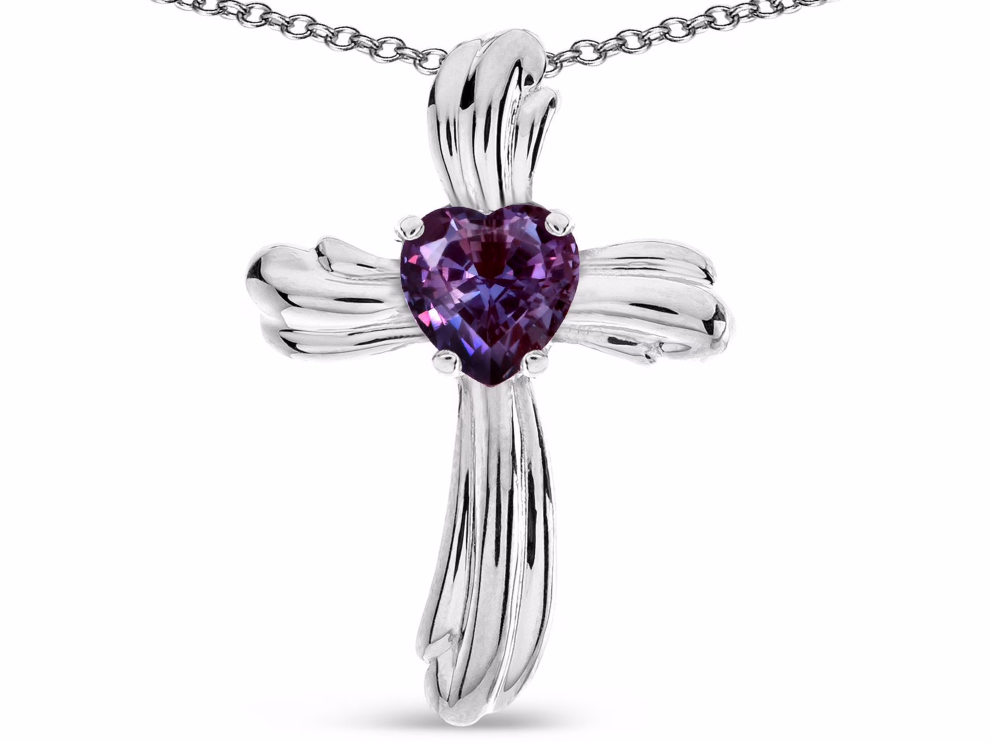 Star K� Heart Shape 6mm Simulated Alexandrite Ribbed Cross Of Love Pendant Necklace 10k White Gold
