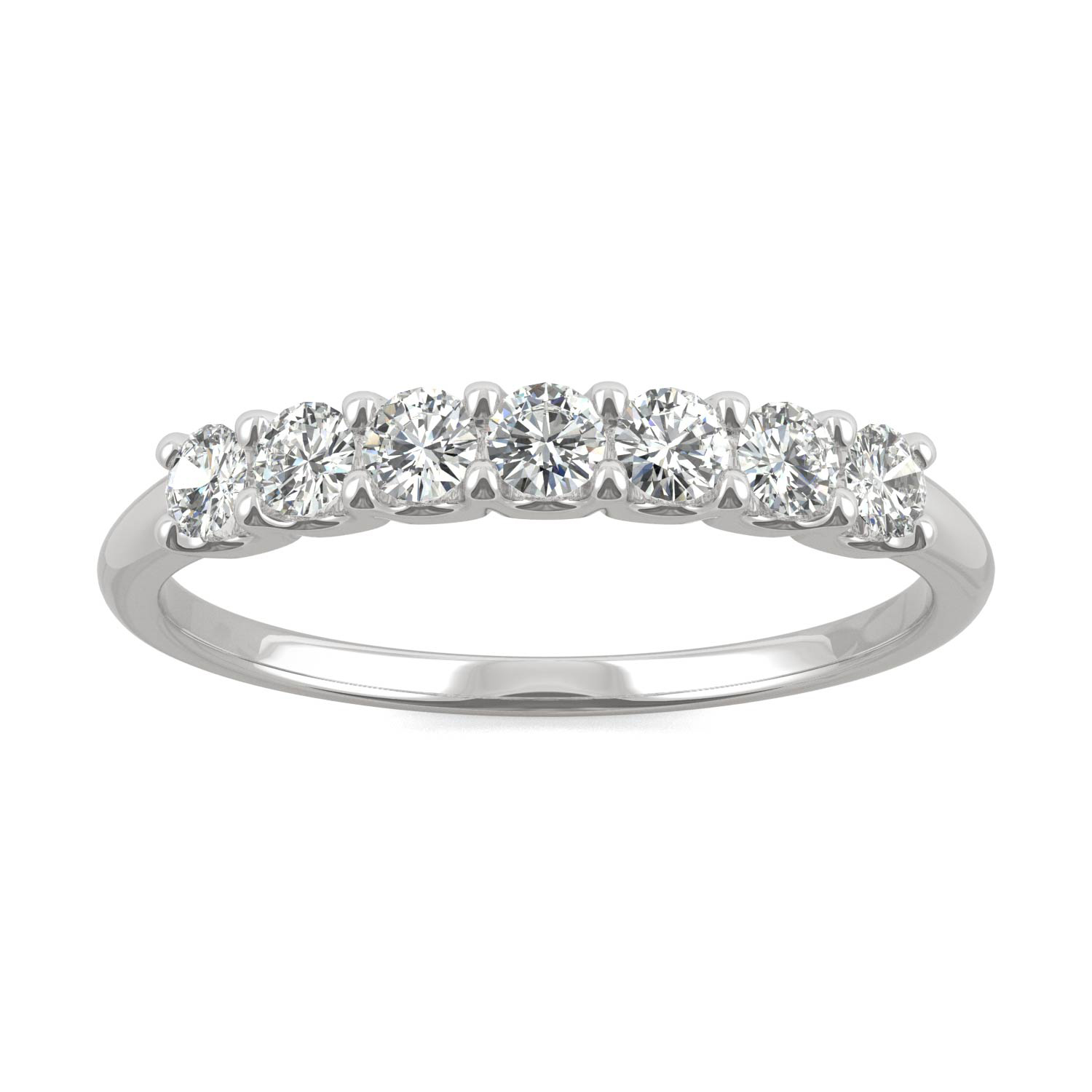 14K White Gold Moissanite by Charles & Colvard Seven Stone Anniversary Band 0.42 DEW