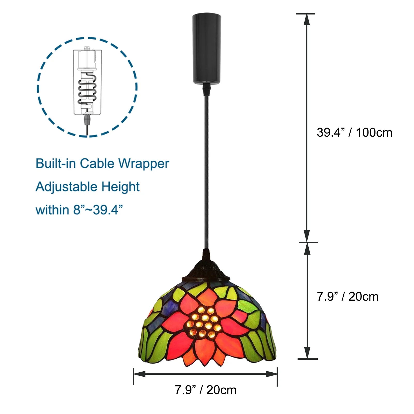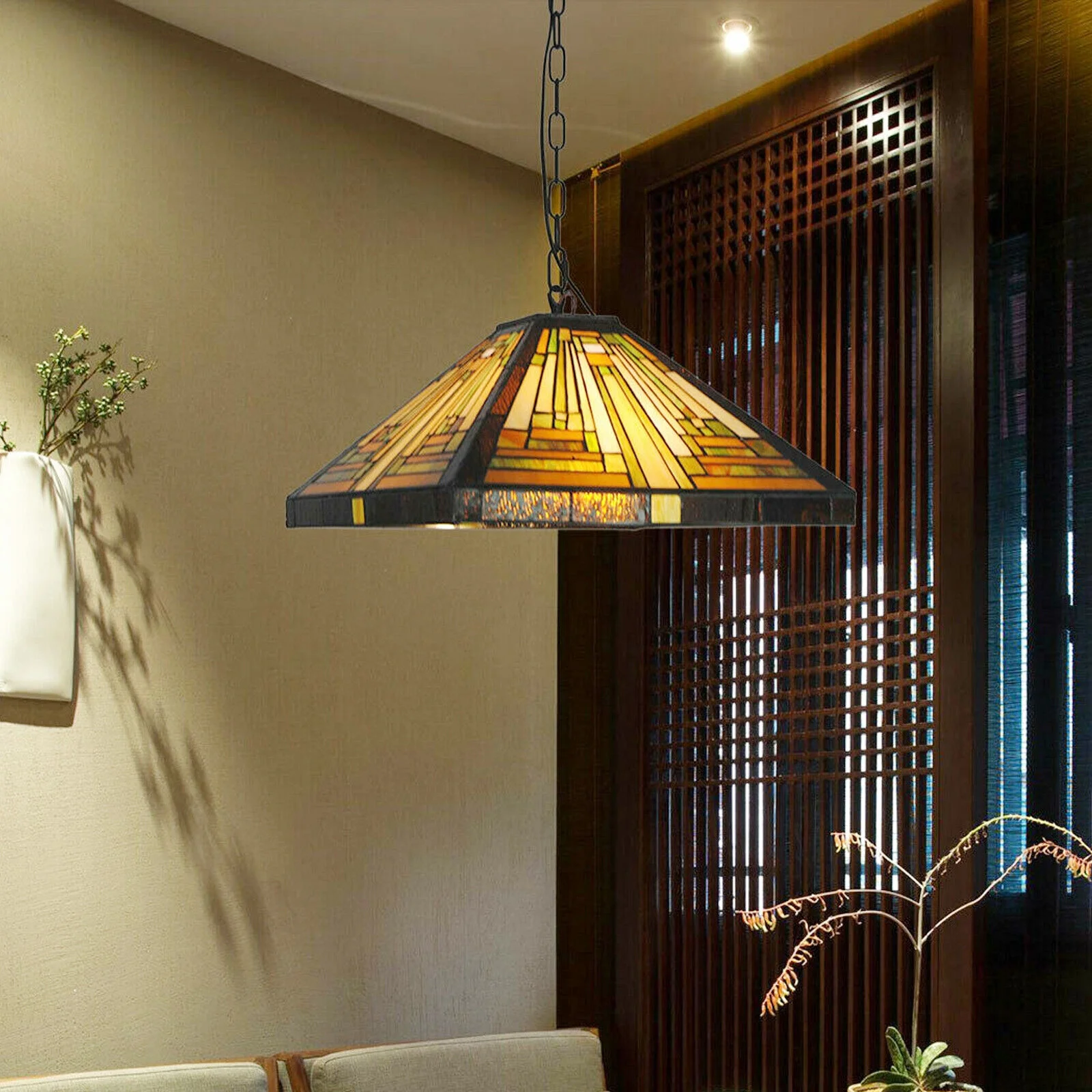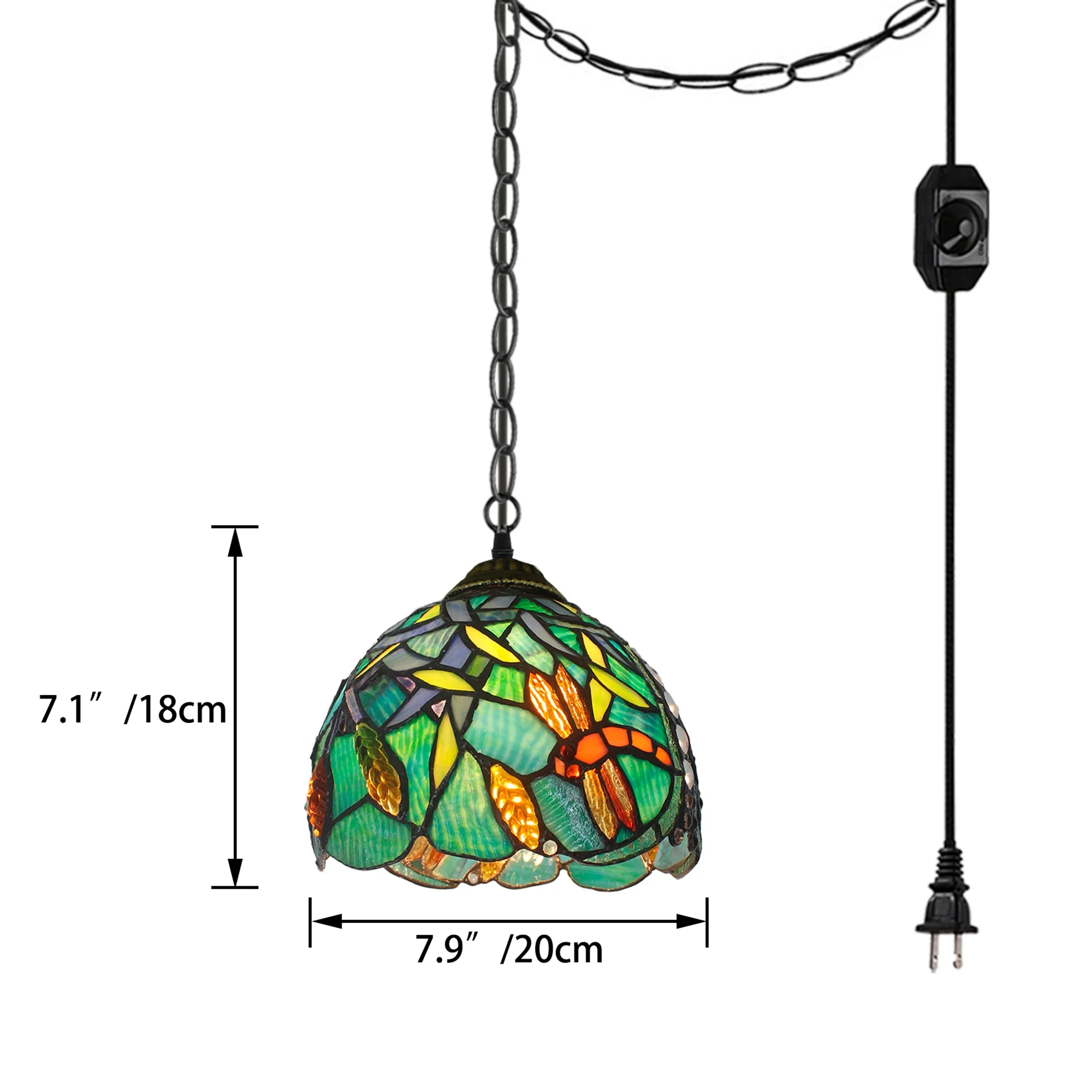 Vintage Stained Glass Pendant Lamp Tiffany Style Ceiling Fixture Hanging Light Wall Control