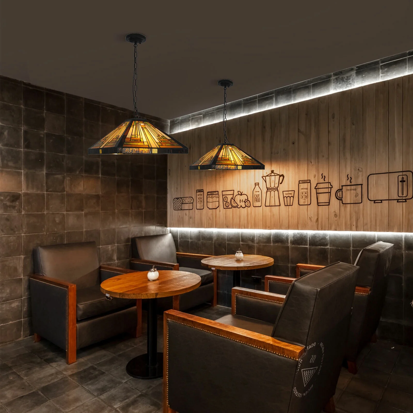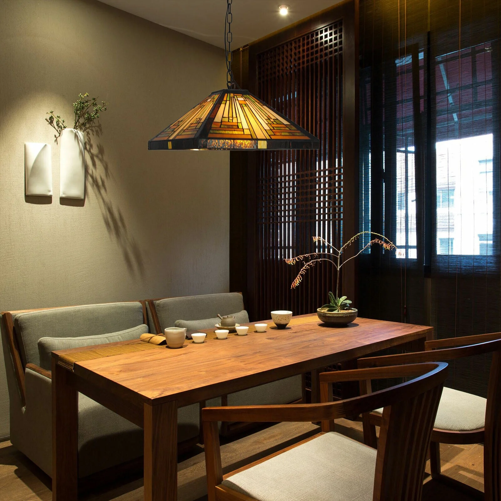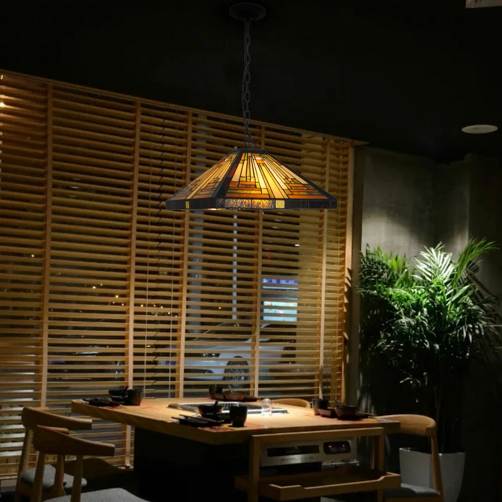 Vintage Stained Glass Pendant Lamp Tiffany Style Ceiling Fixture Hanging Light Wall Control