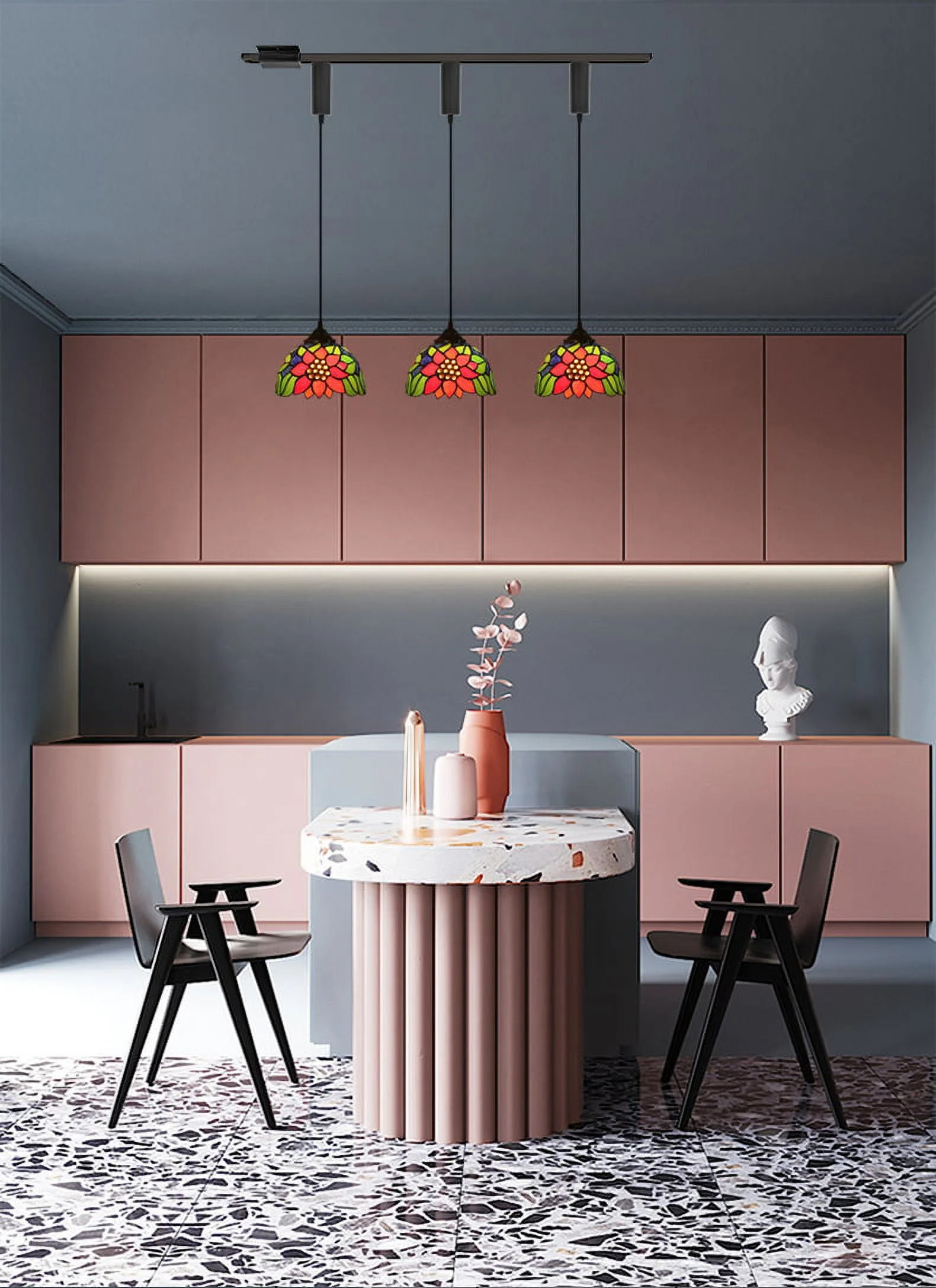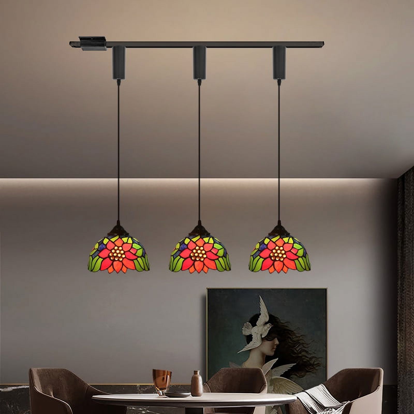 Kiven H Track Pendant Lightning,Adjustable Cord Length,Tiffany Style H Track Lighting Pendant Lights, 3 Lights