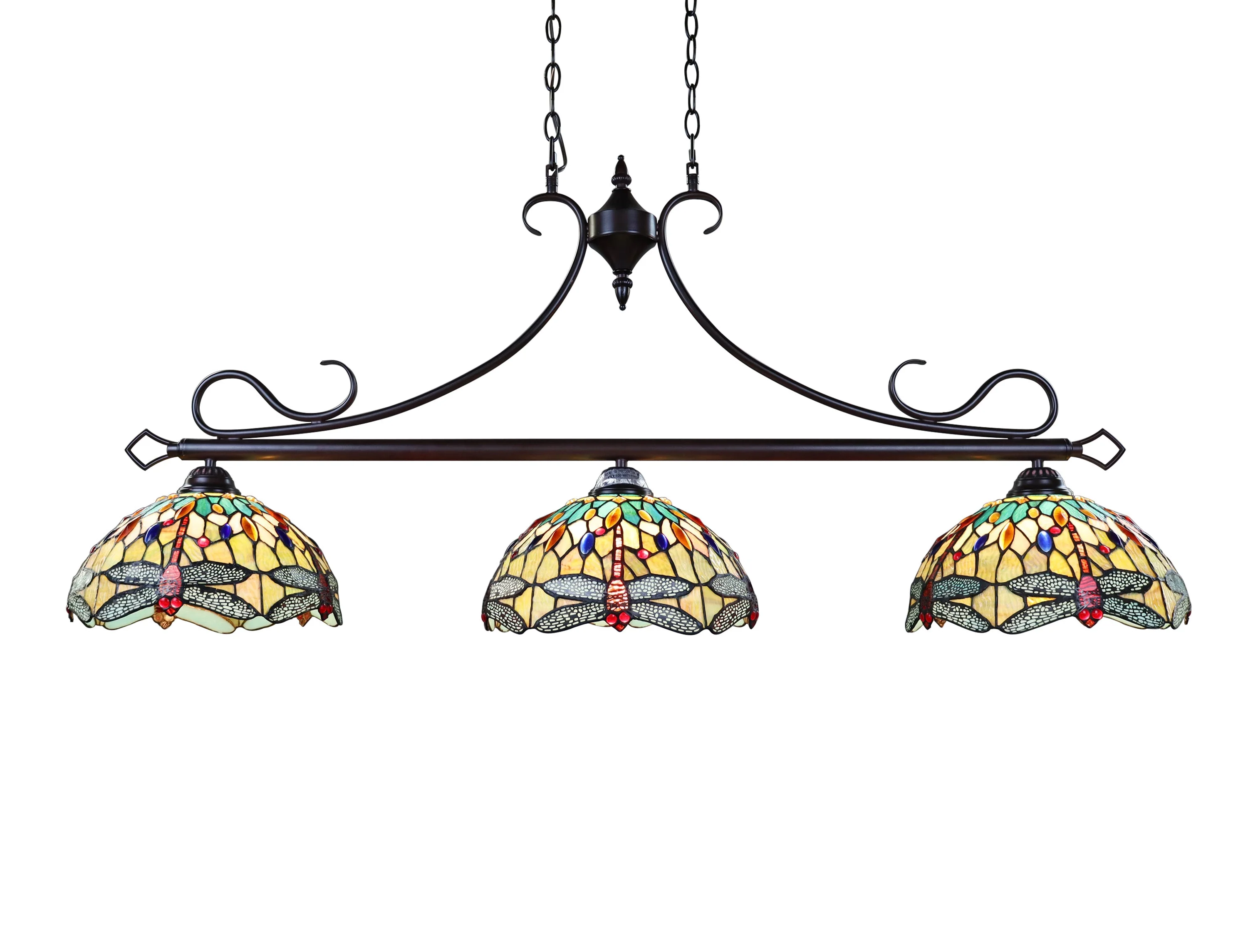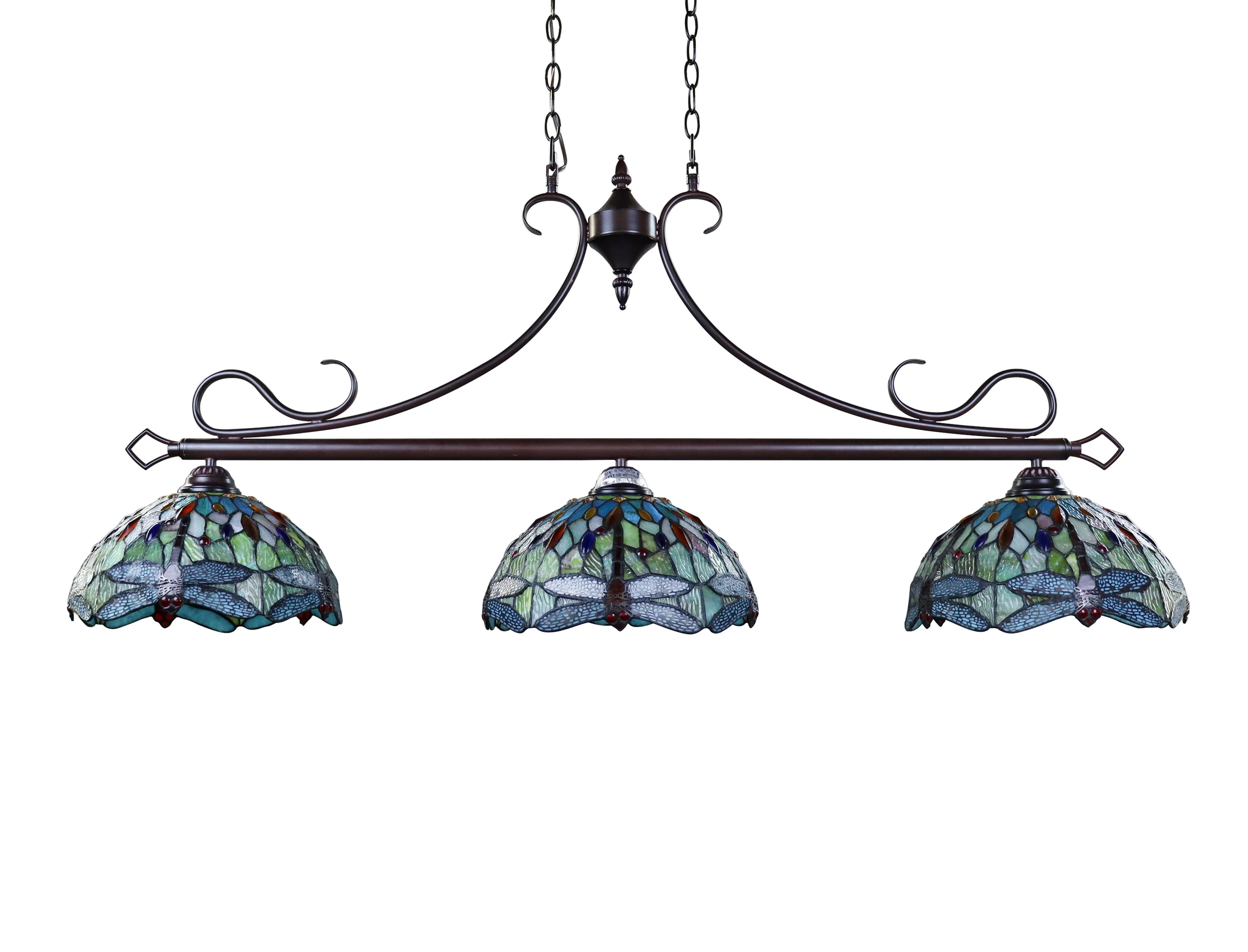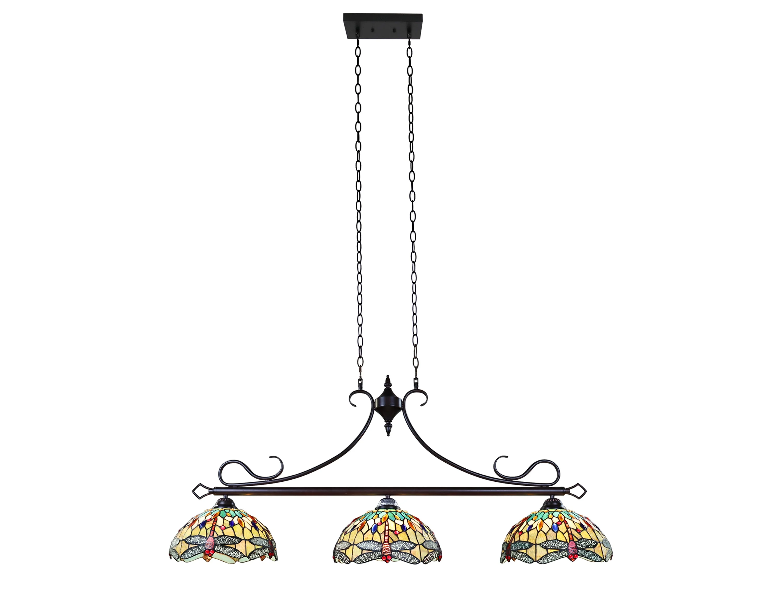 Radiance Goods Dragonfly Tiffany-Style Dark Bronze 3 Light Island Pendant 48" Wide