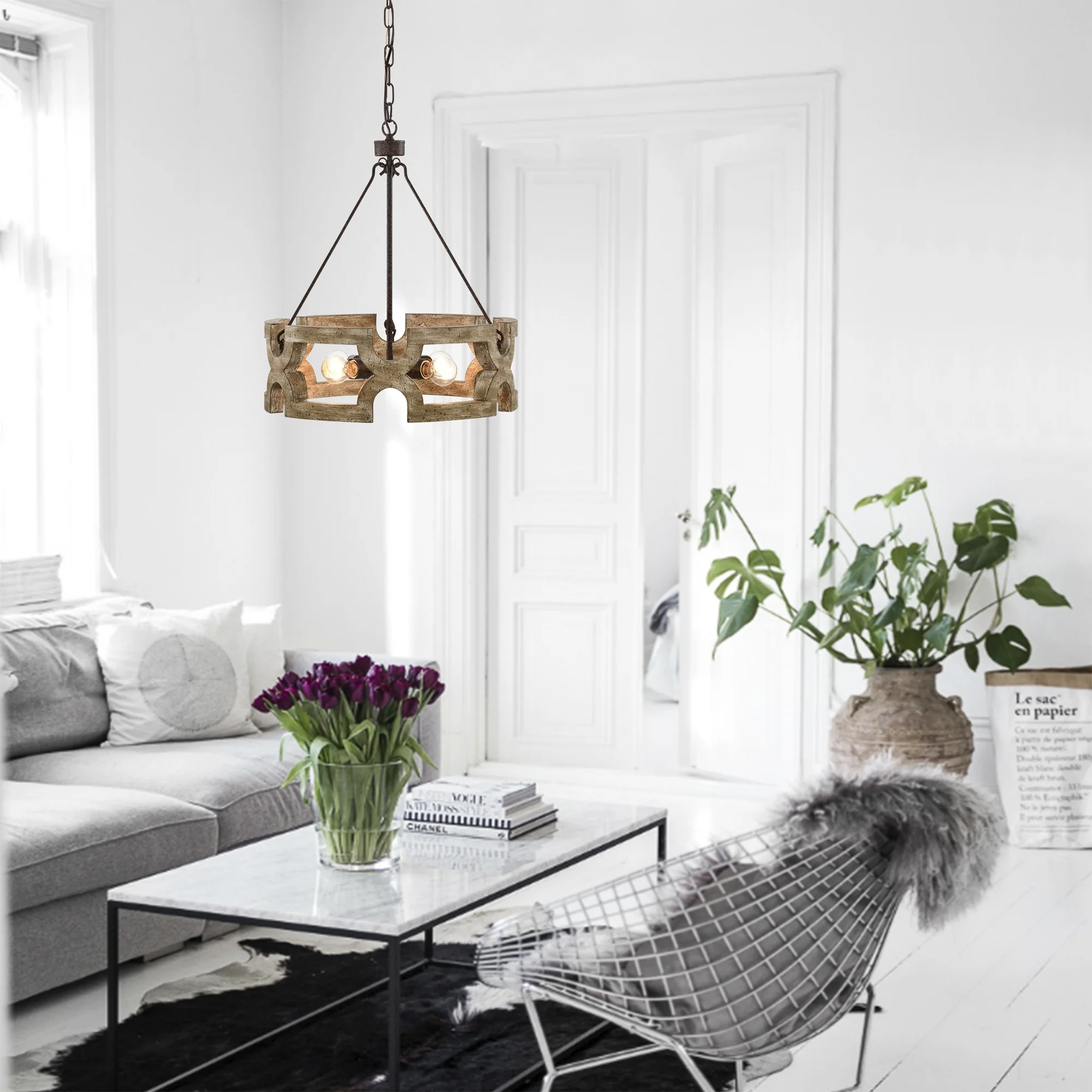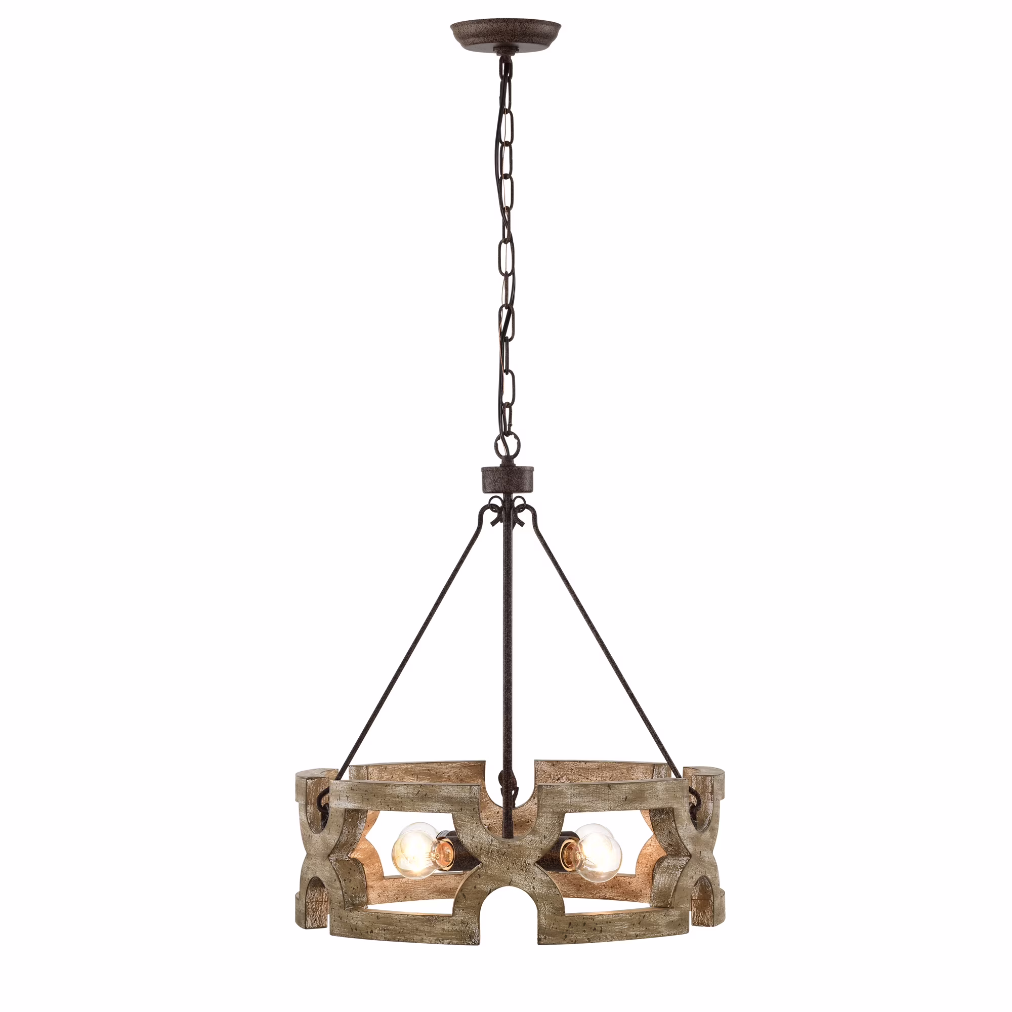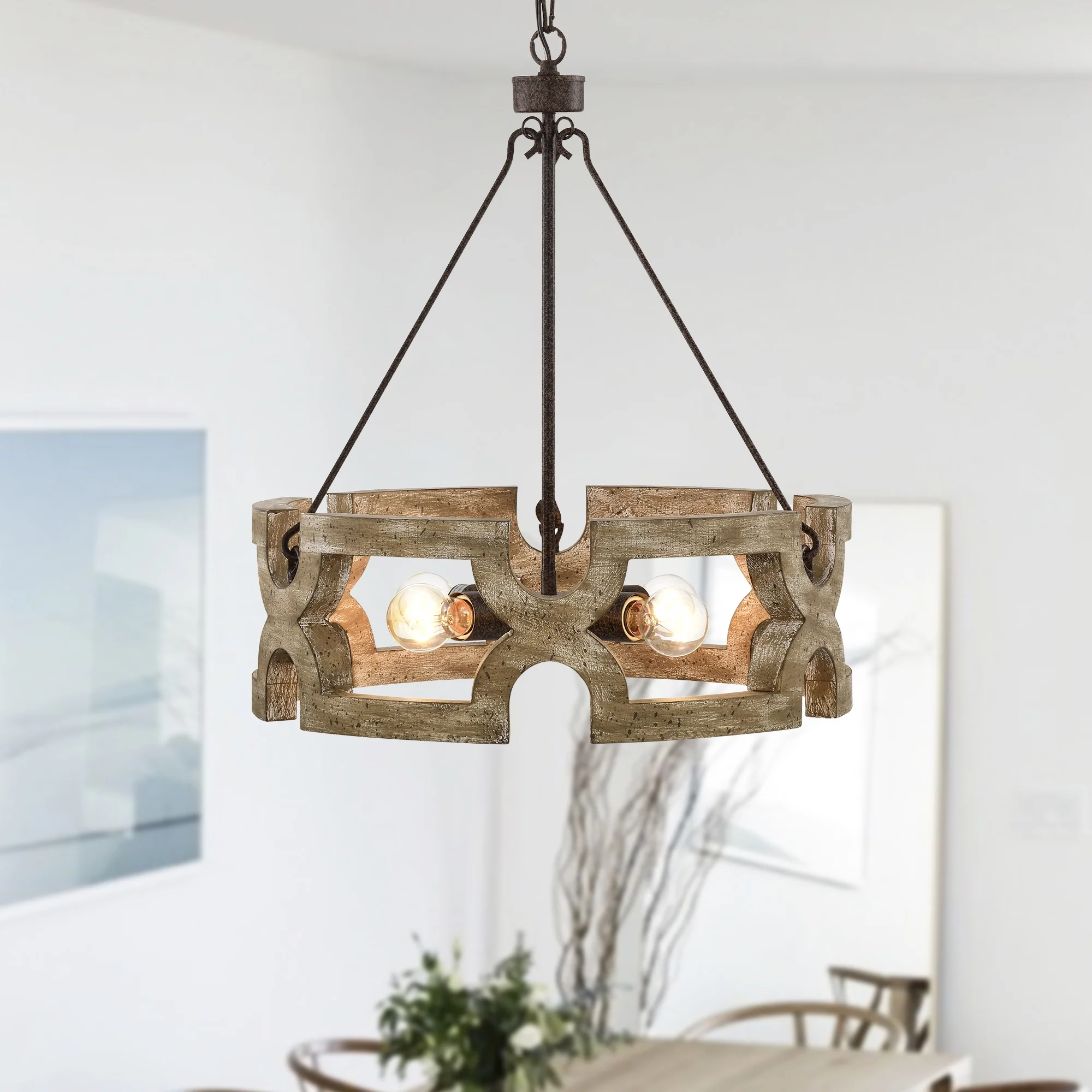 Warehouse of Tiffany Aarti Rustic Farmhouse 4 Light Wood Grain Paint Chandelier Pendant 19 Inch.
