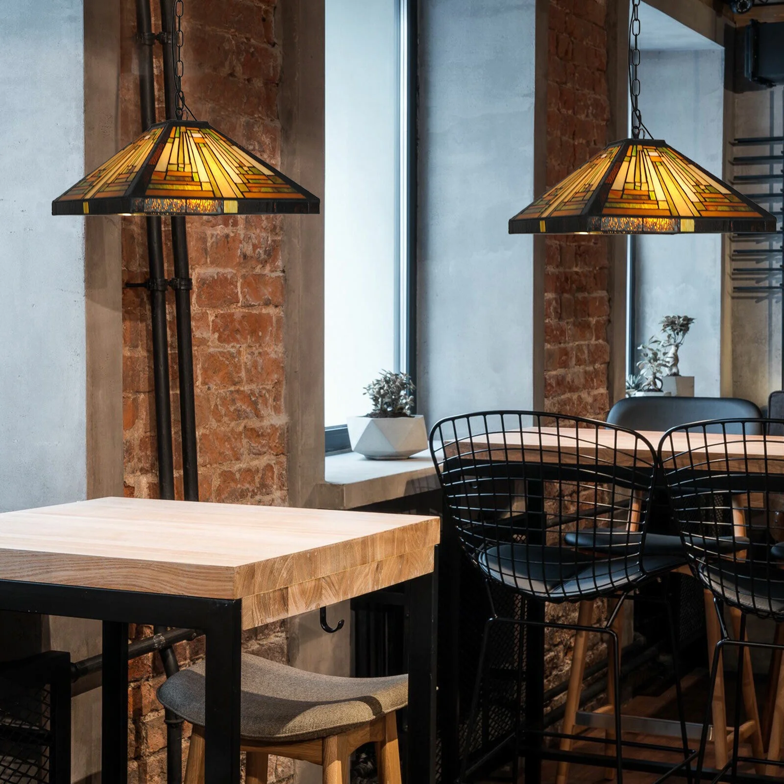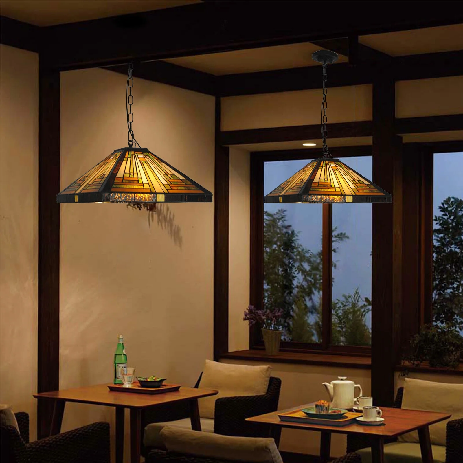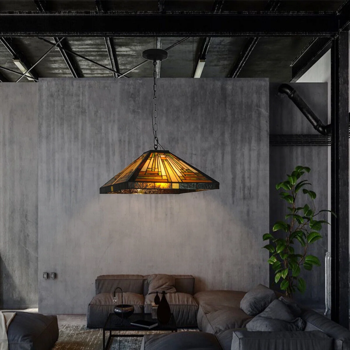 RADIANCE Goods Tiffany-Style Mission Stained Glass Ceiling Pendant 18" Height
