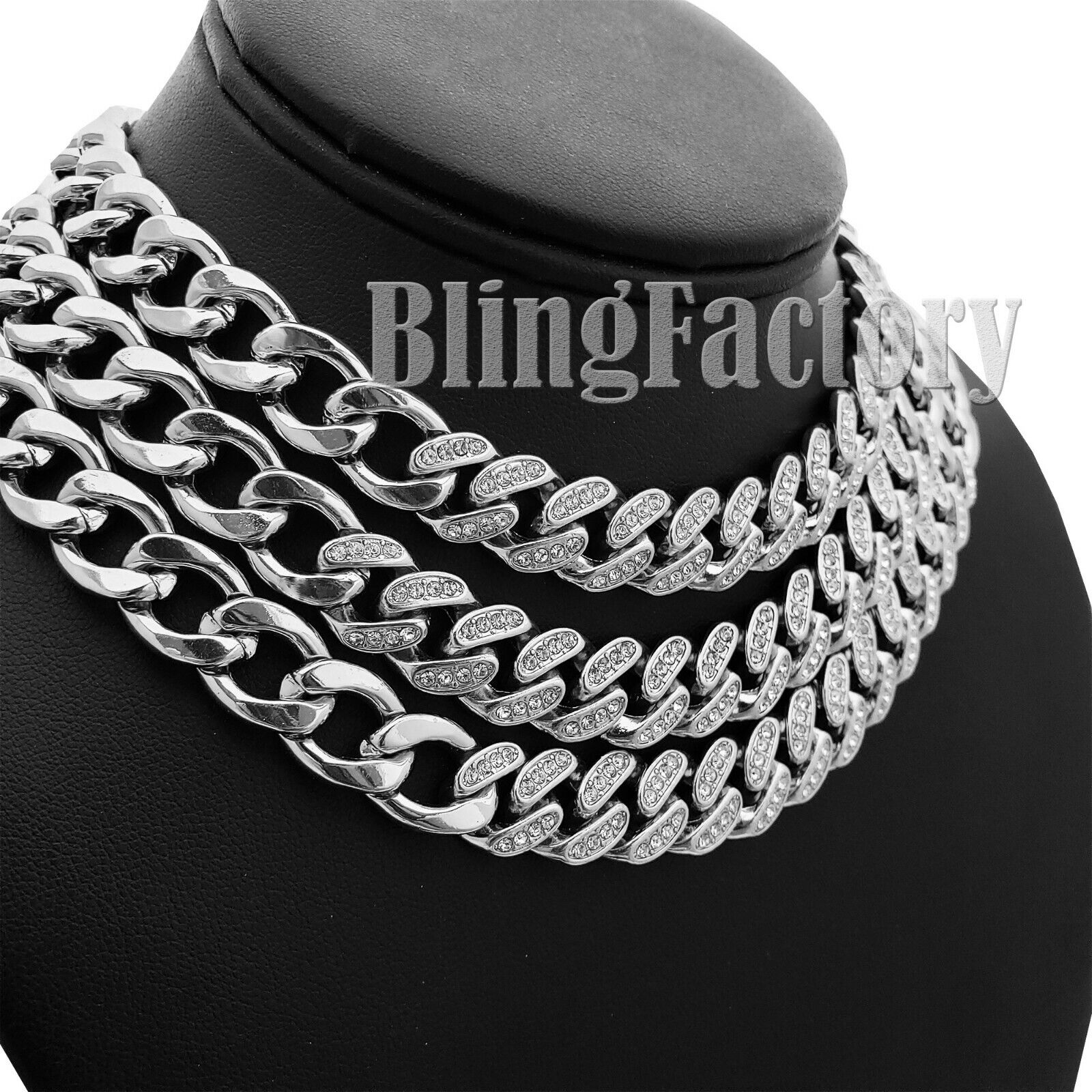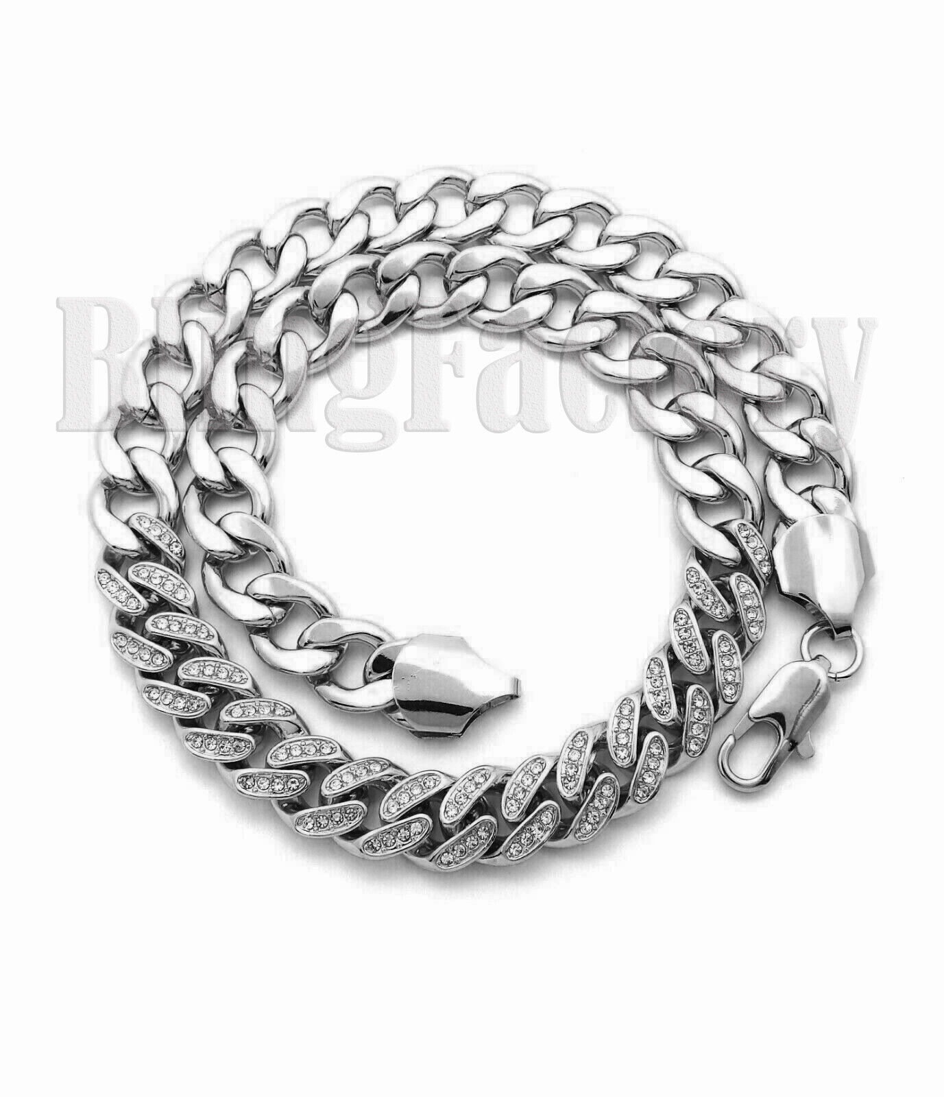 Partial Iced Silver PT 11mm 18" 20" 24" Cuban Link Choker Chain Hip Hop Necklace