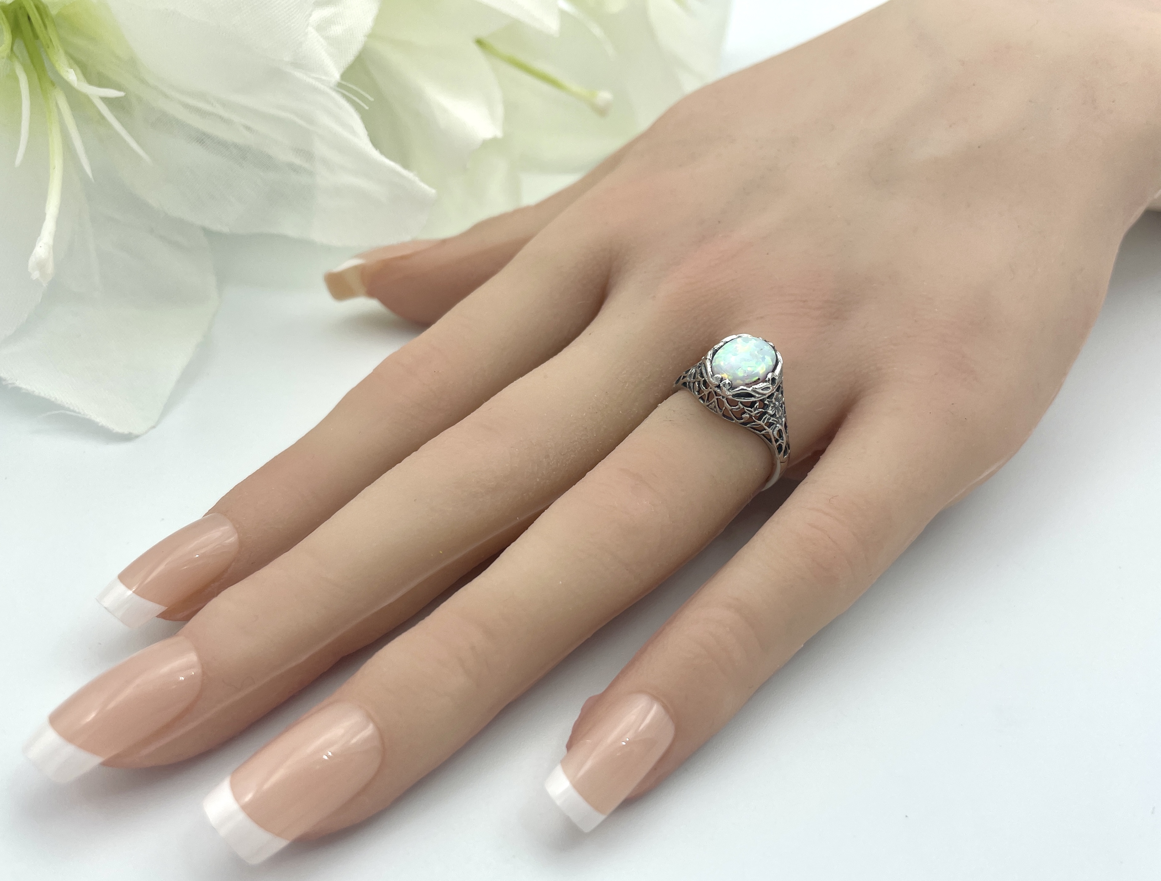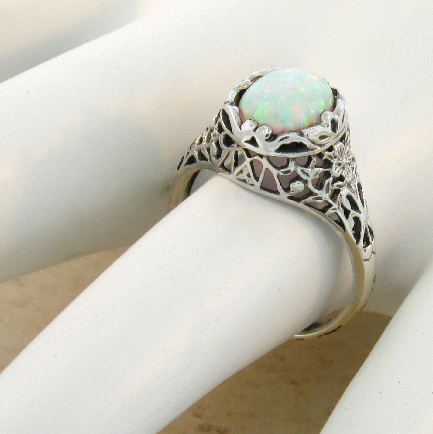 VICTORIAN DESIGN 925 STERLING SILVER LAB-CREATED OPAL CLASSIC ANTIQUE STYLE RING #798