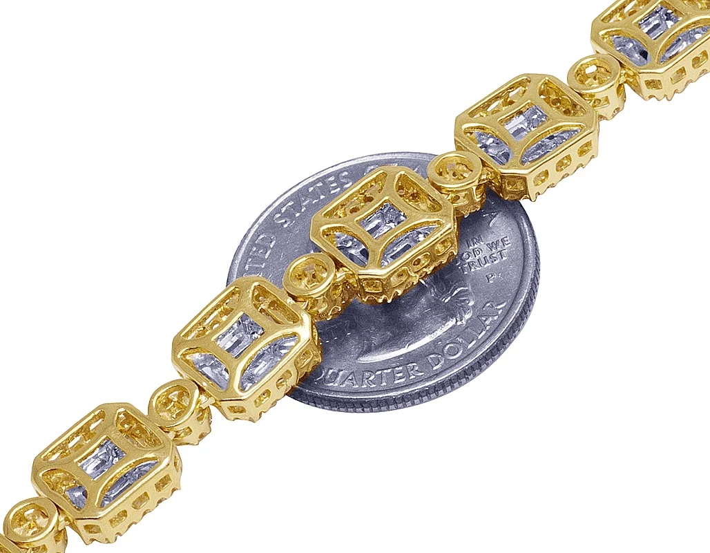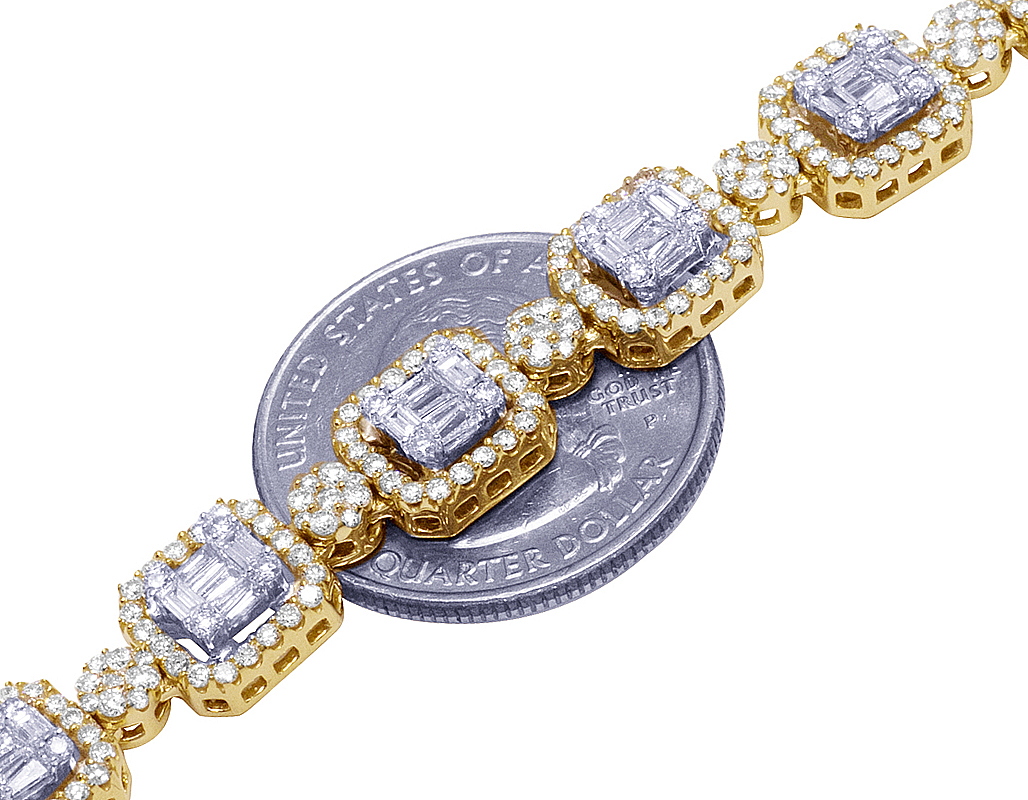 10K Yellow Gold 9MM Baguette Diamond Choker Chain Necklace 13.4 CT 18"