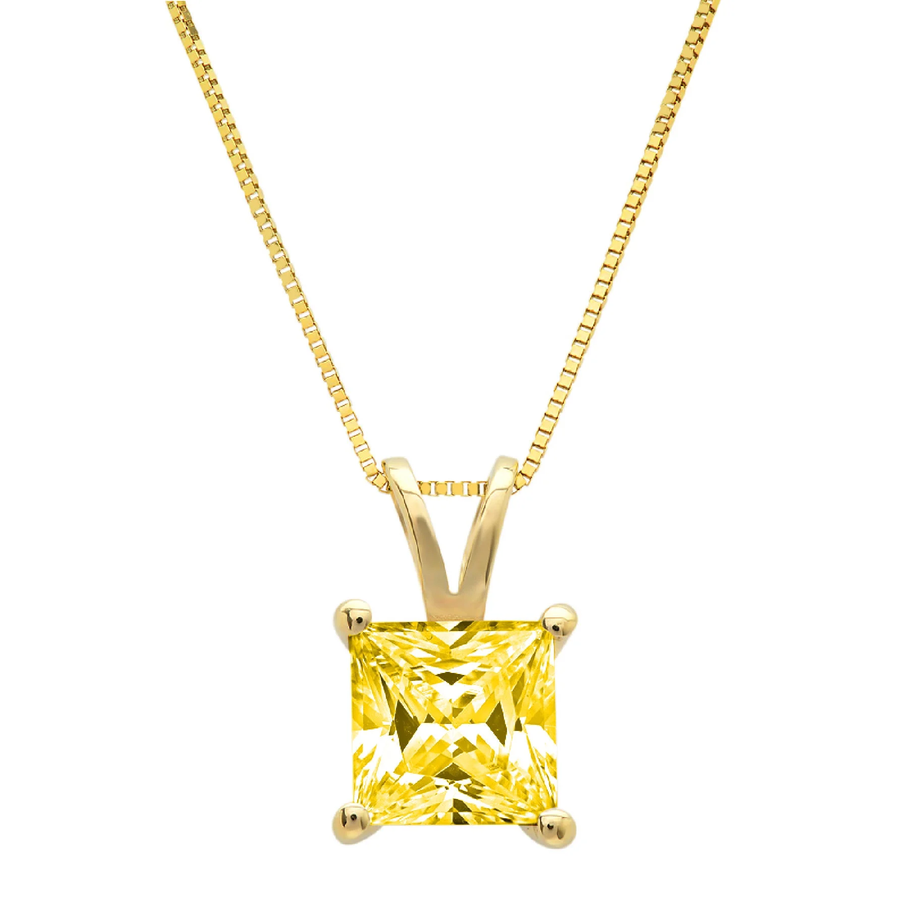 2.5 ct Brilliant Princess Cut Solitaire Synthetic Yellow Moissanite 14k Yellow Gold Pendant with 18" Chain