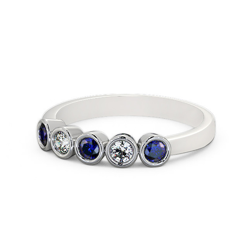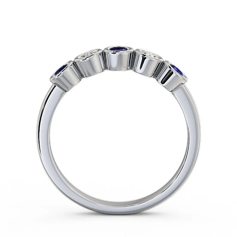 0.50 Ct Round Cut Real Diamond Blue Sapphire Beautiful Eternity Band for Women 14K White Gold Size 9.5
