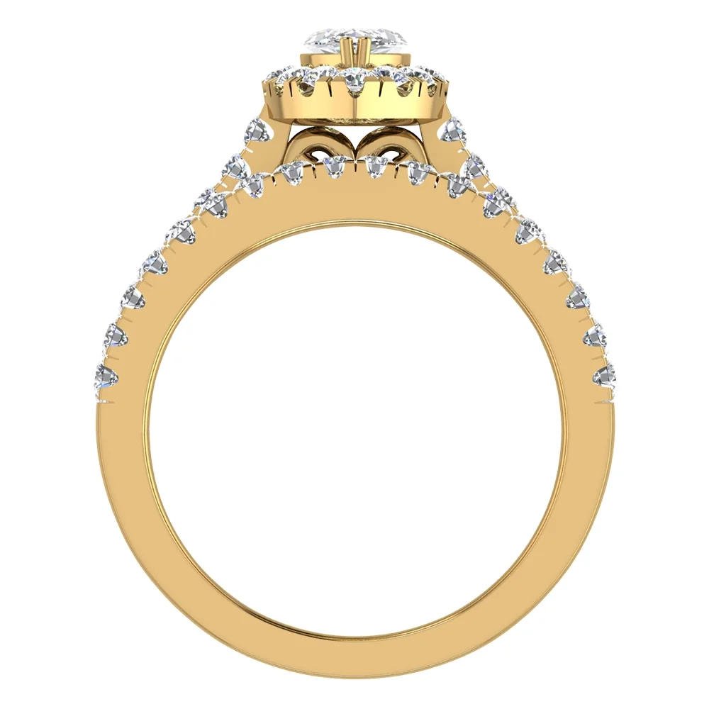 Marquise Cut Halo Diamond Wedding Ring Set 1.25 CT 14K Gold (F,VS1)