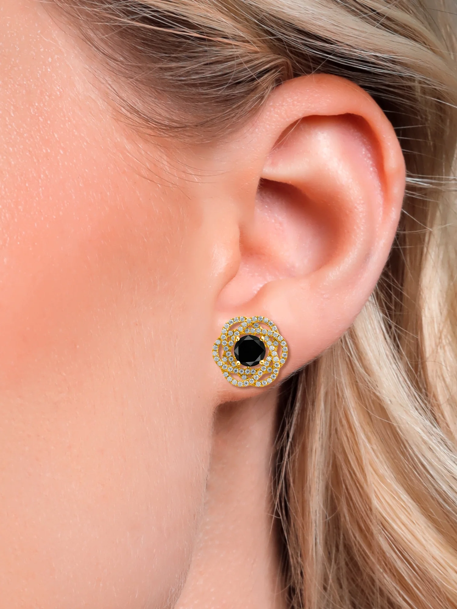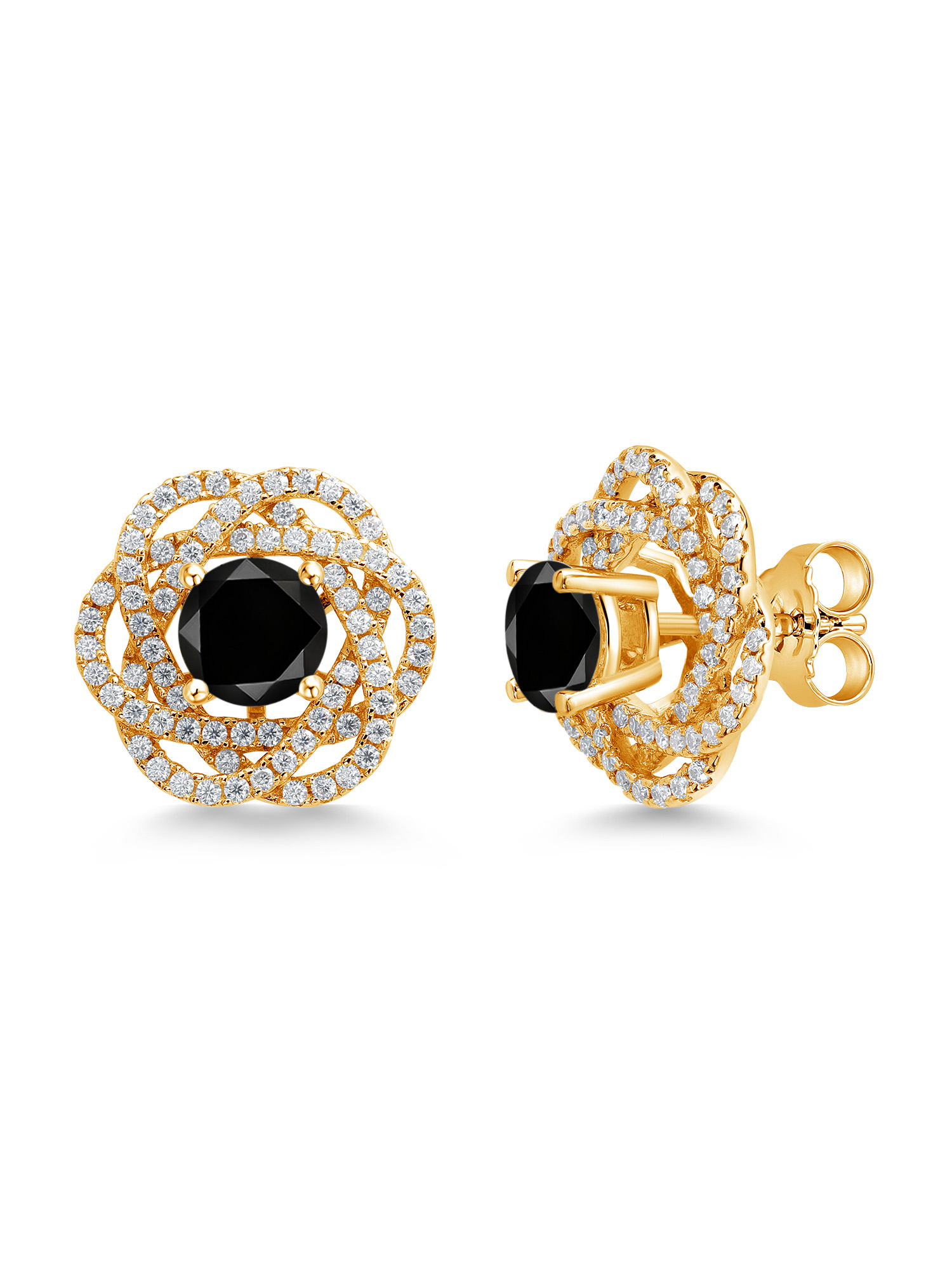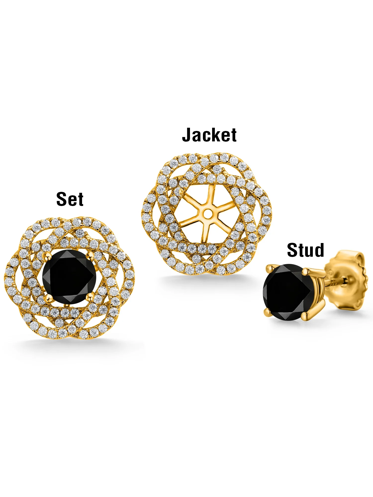 Gem Stone King 18K Yellow Gold Plated Silver Stud Earrings with Jackets Diamond and Moissanite (2.82 Cttw)