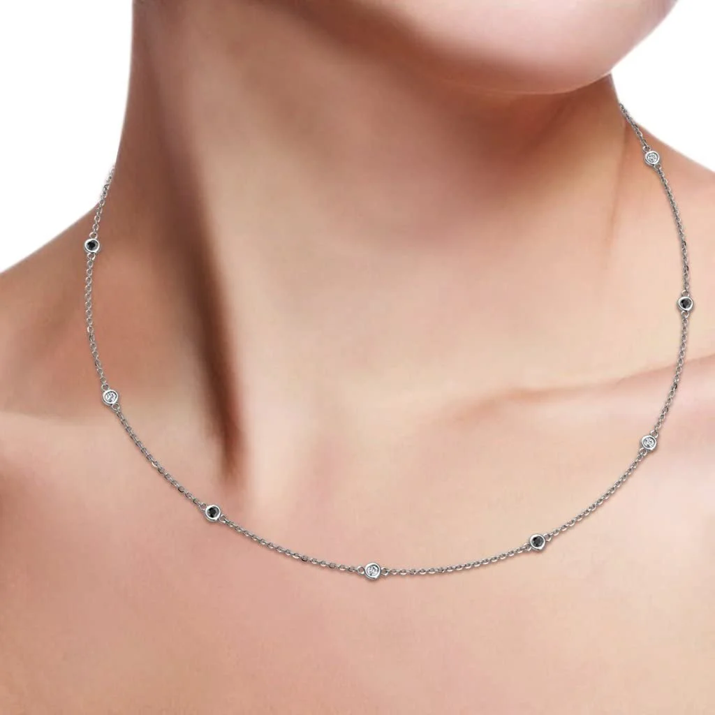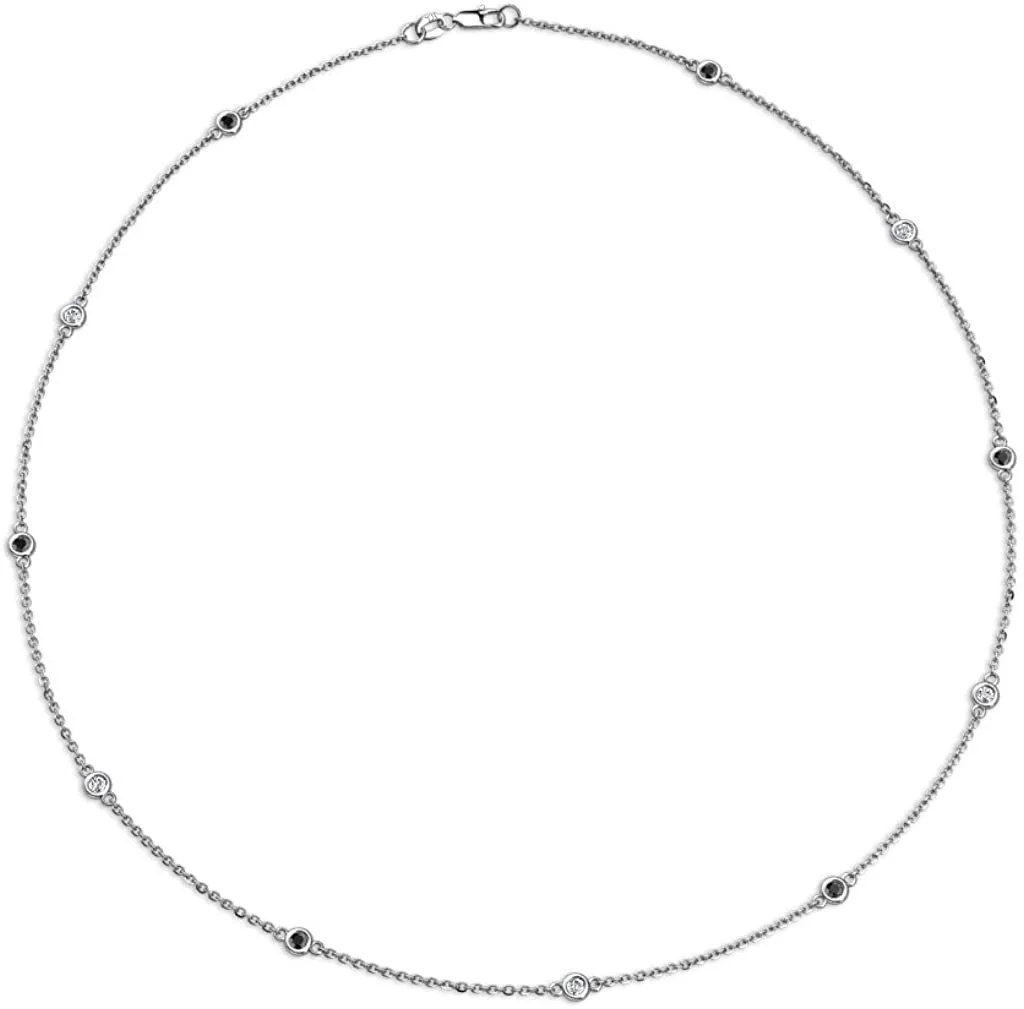 Petite Black & White Diamond by the Yard 11 Stations Necklace 0.35 ct tw 14K White Gold.18 Inches Length