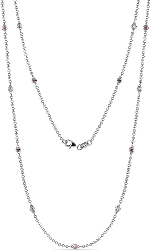 Petite Rhodolite Garnet and Diamond by the Yard 13 Stations Necklace 0.40 ct tw in 14K White Gold