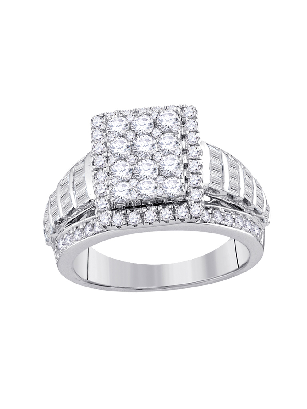 10kt White Gold Round Diamond Cluster Bridal Wedding Engagement Ring 2 Cttw
