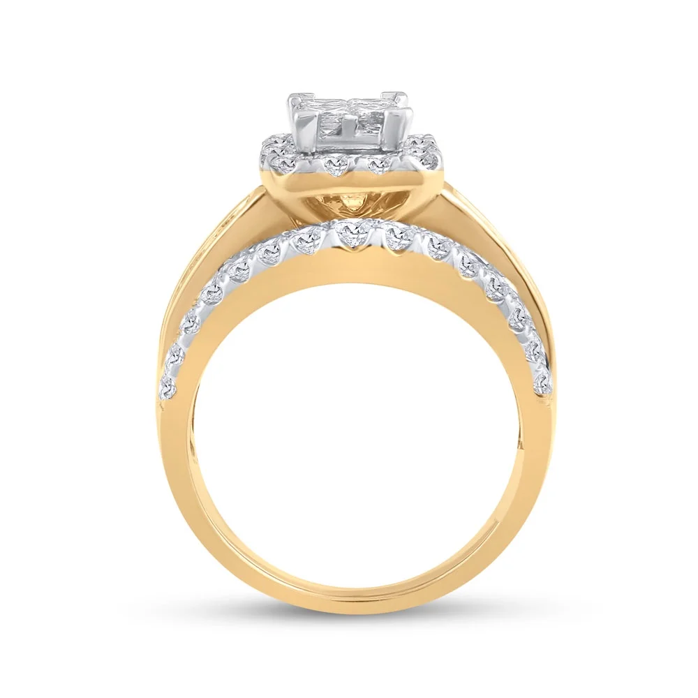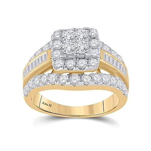 Women's Solid 14kt Yellow Gold Princess Diamond Cluster Bridal Wedding Engagement Ring 2 Cttw Ring Size 6