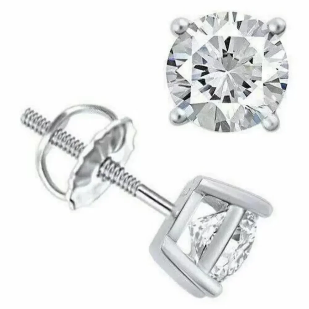 3Ct Round Cut Moissanite Diamond 14K White Gold Studs Earrings for Women's Fine Jewelry