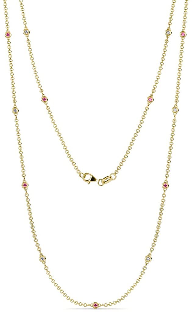 Petite Pink Sapphire and Diamond by the Yard 13 Stations Necklace 0.35 ct tw in 14K Yellow Gold