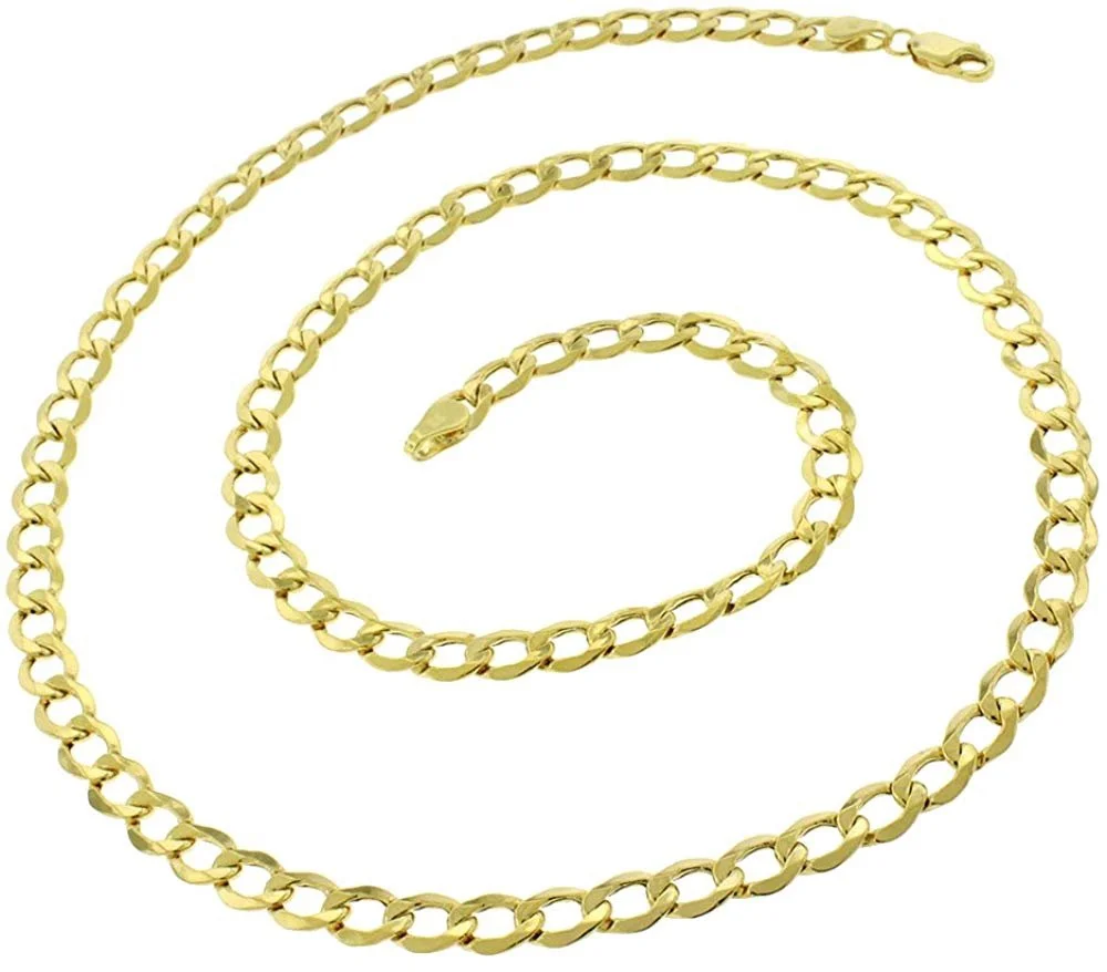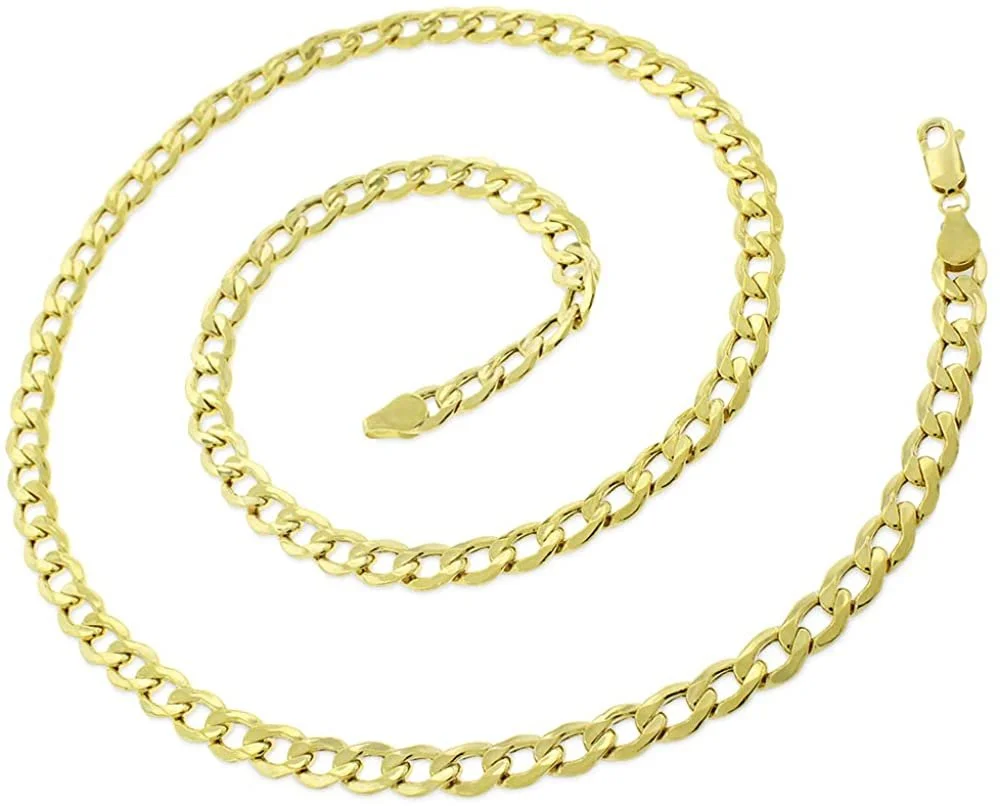 10K Yellow Gold 6mm Hollow Cuban Chain, FREE Microfiber Cloth, Curb Link Mens Womens Necklace, Giorgio Bergamo