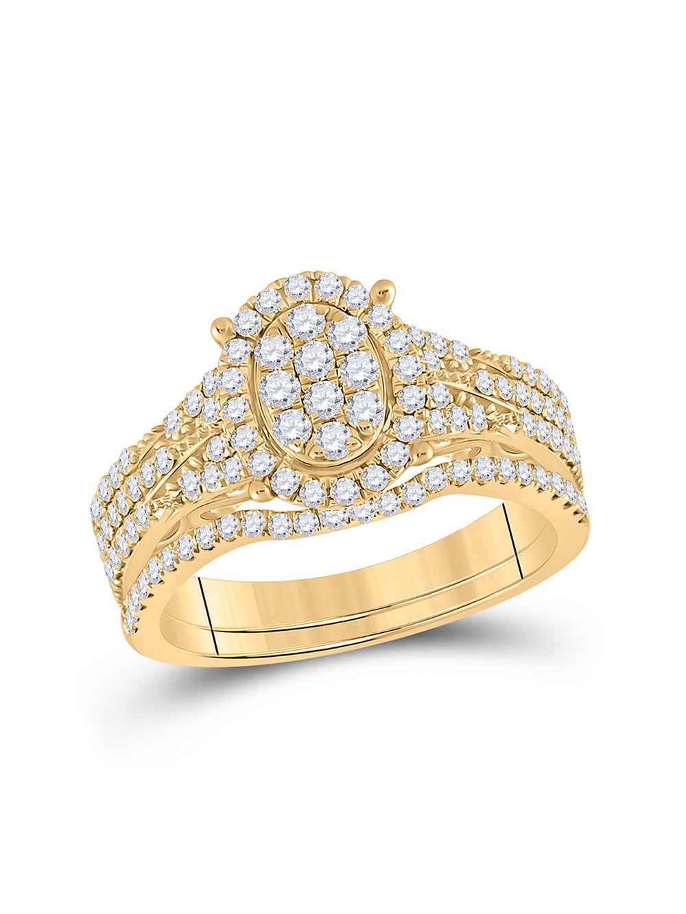 14kt Yellow Gold Round Diamond Cluster Bridal Wedding Ring Band Set 7/8 Cttw