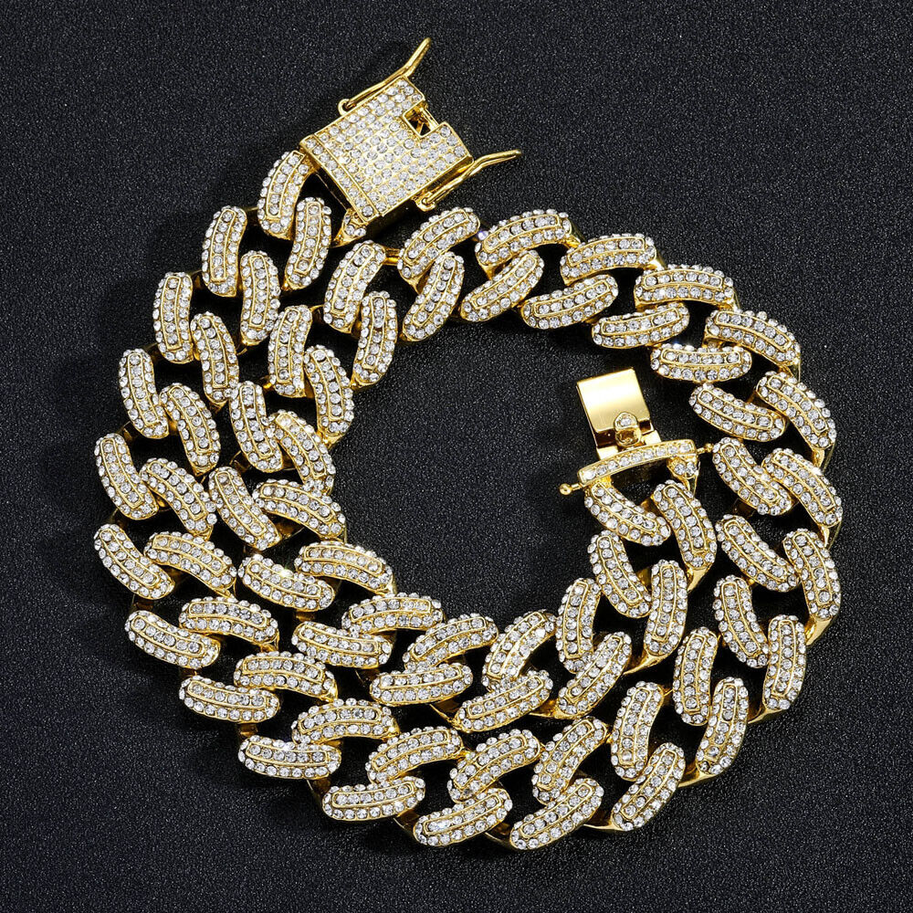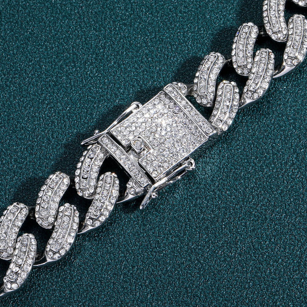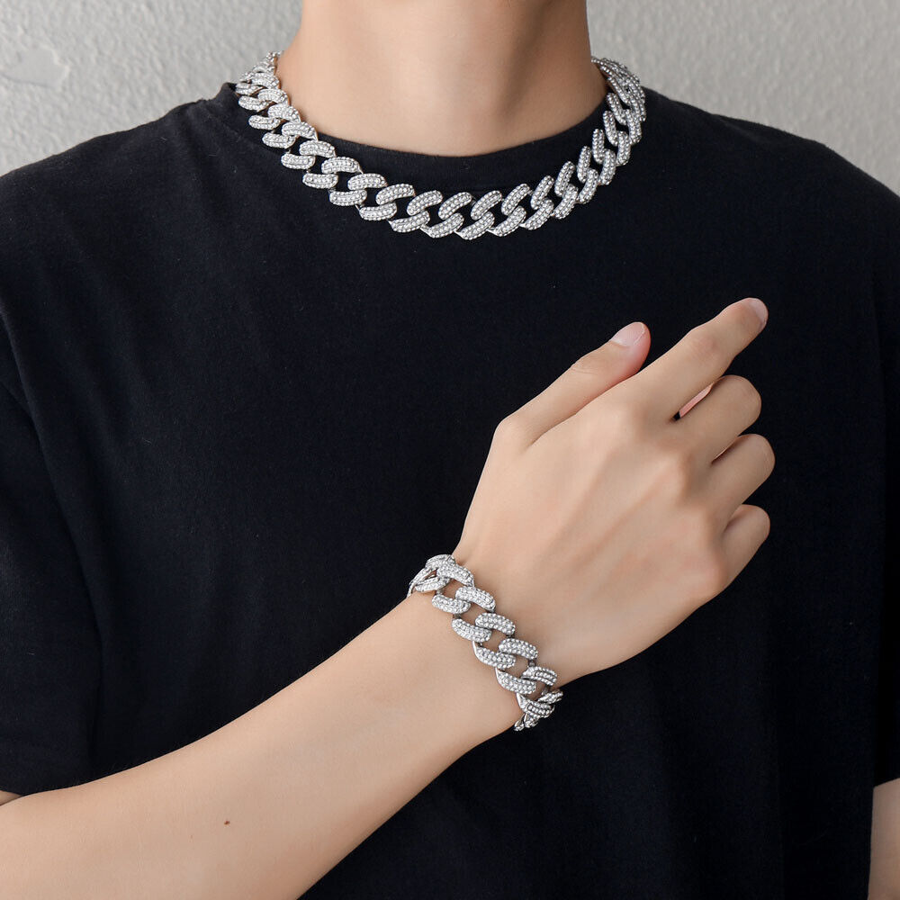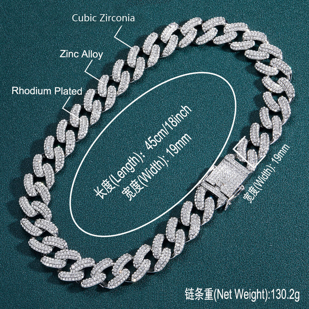 Men Hip Hop 19mm Necklaces Cuban Chains Bling CZ 18K Gold Silver Plated Jewelry