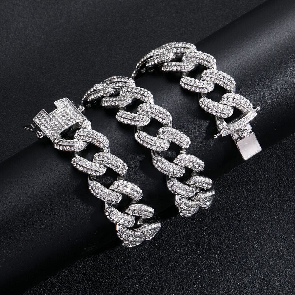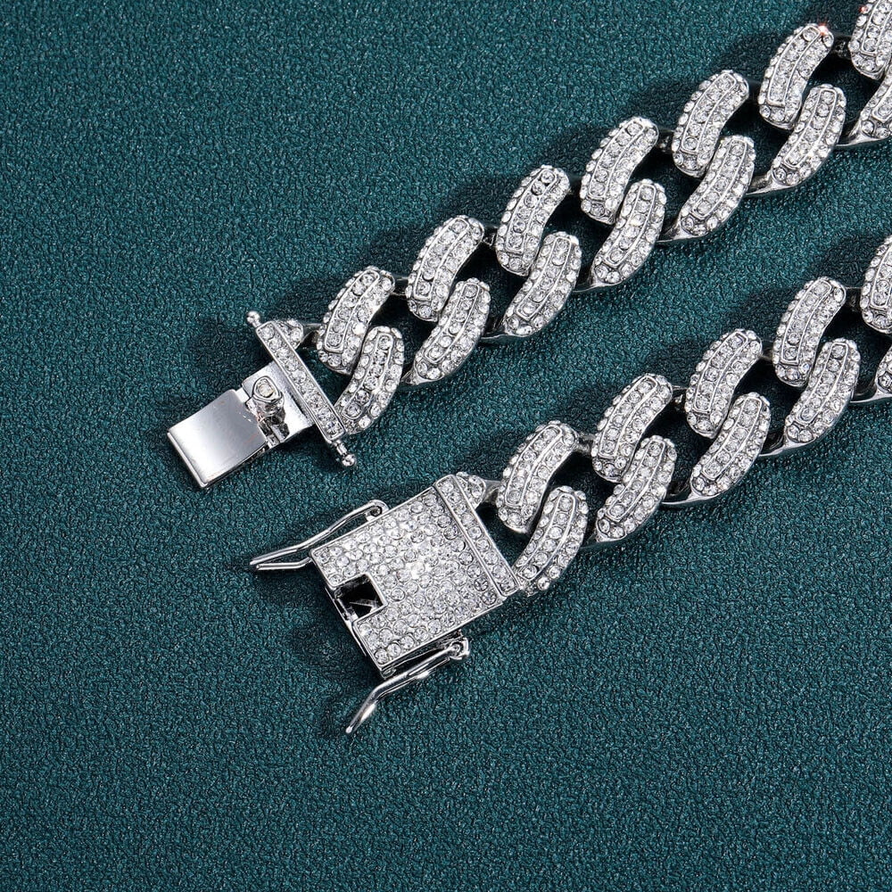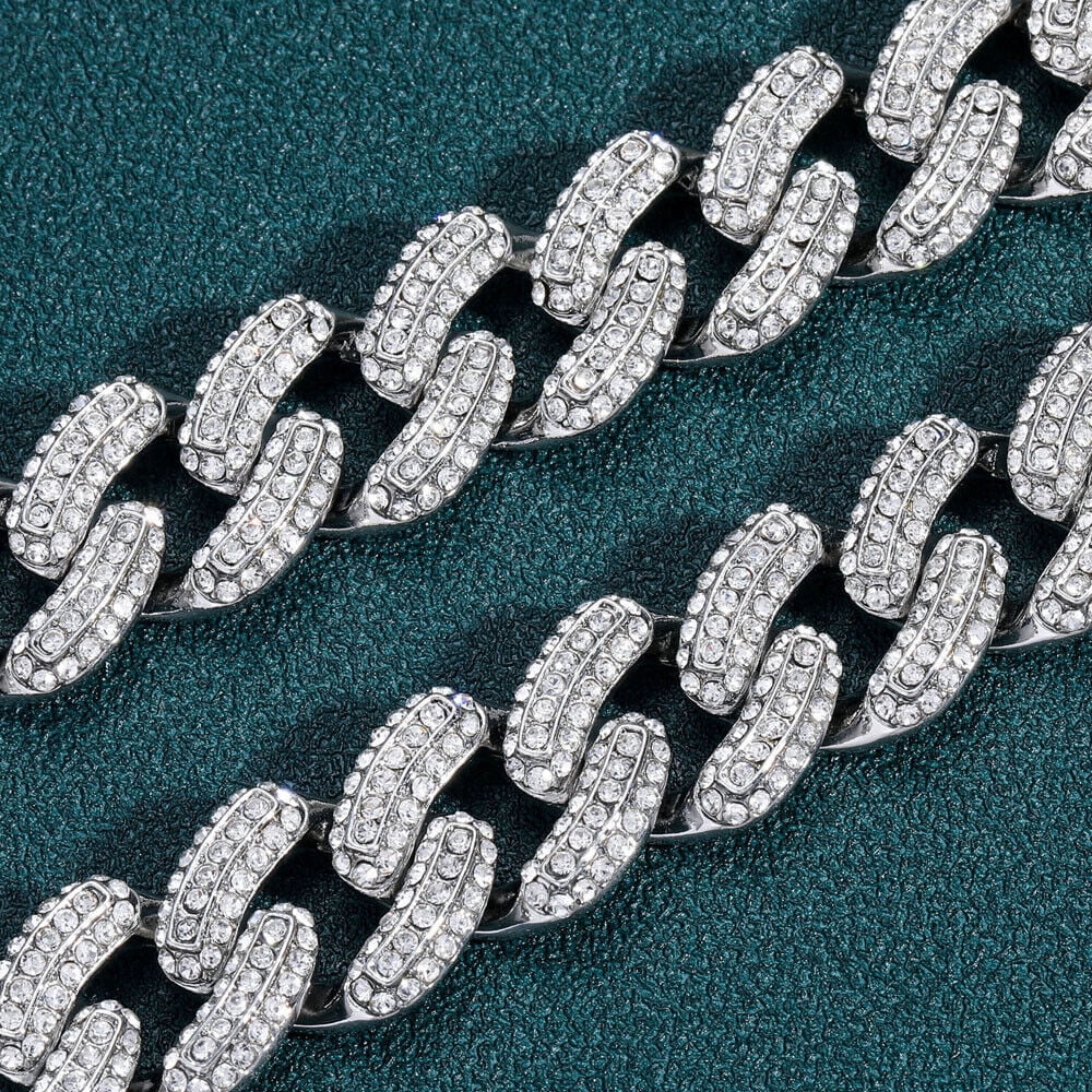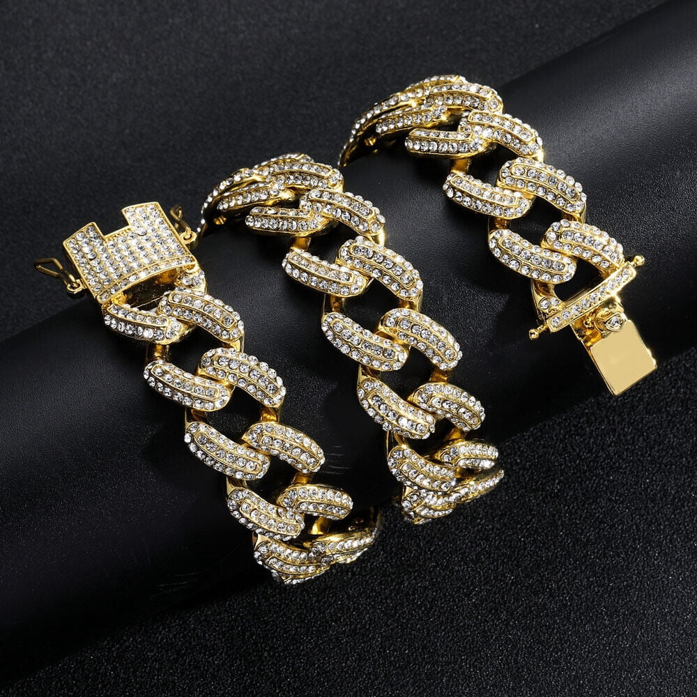 Men Hip Hop 19mm Necklaces Cuban Chains Bling CZ 18K Gold Silver Plated Jewelry