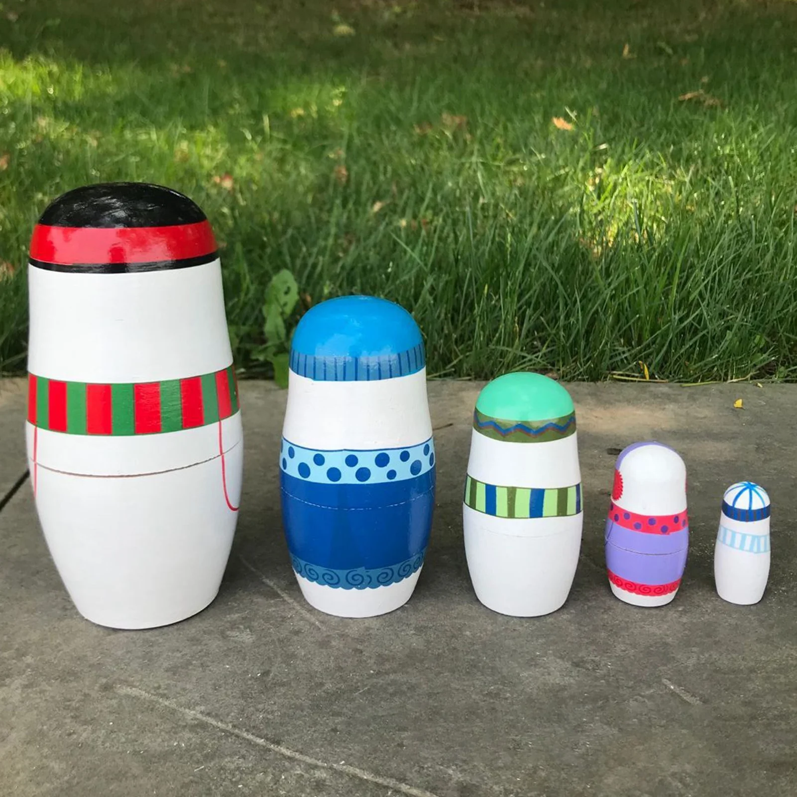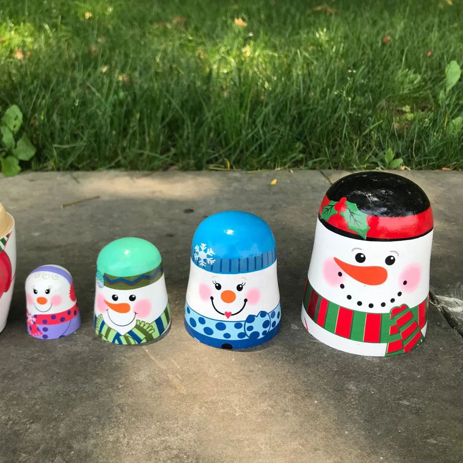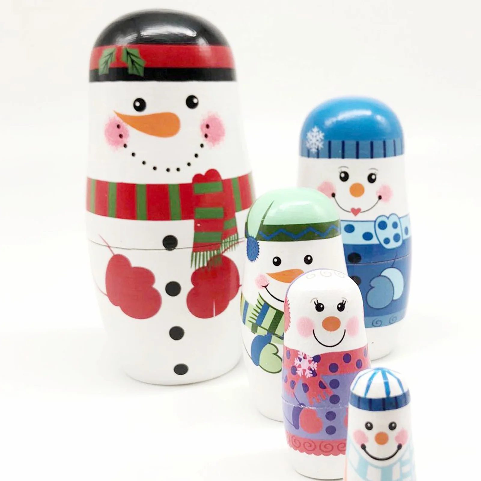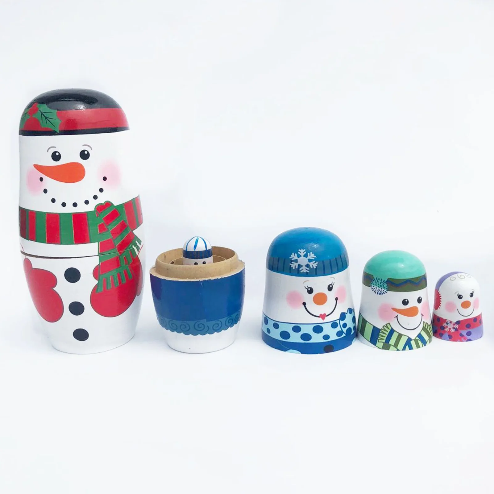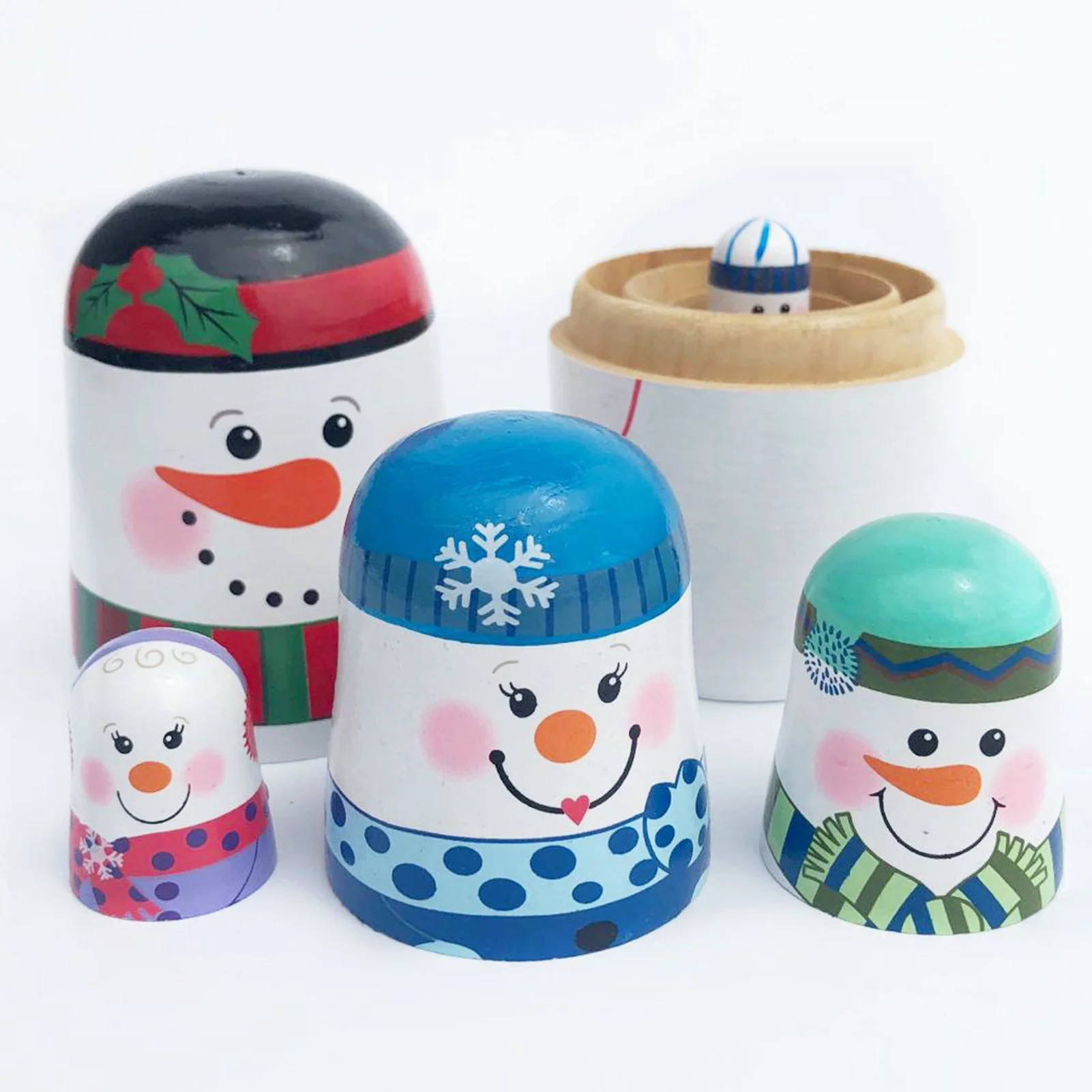 Flm 5-layer Snowman Nesting Dolls Matryoshka Wooden Toys Birthday Valentine Gift