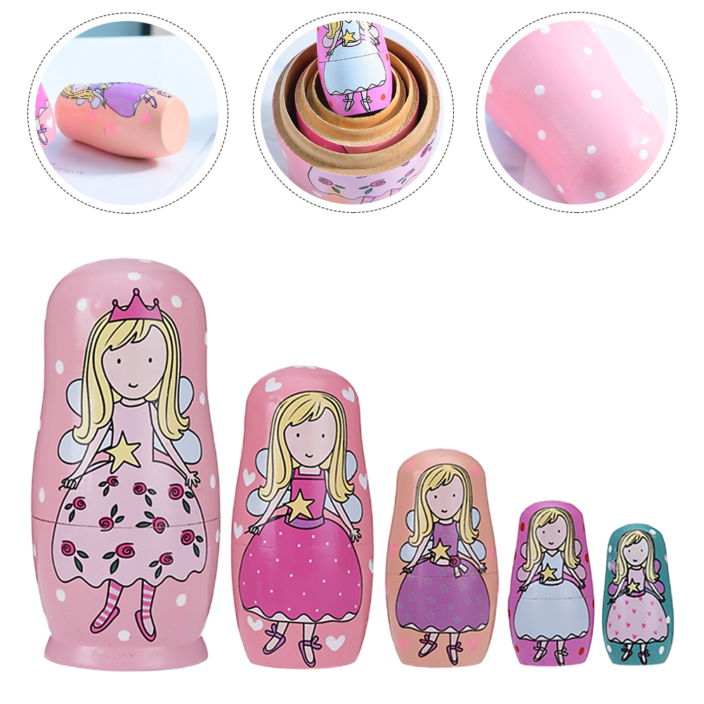 NUOLUX 5Pcs Matryoshka Doll Girl Pattern Nesting Doll Russian Doll Toy Home Adornment