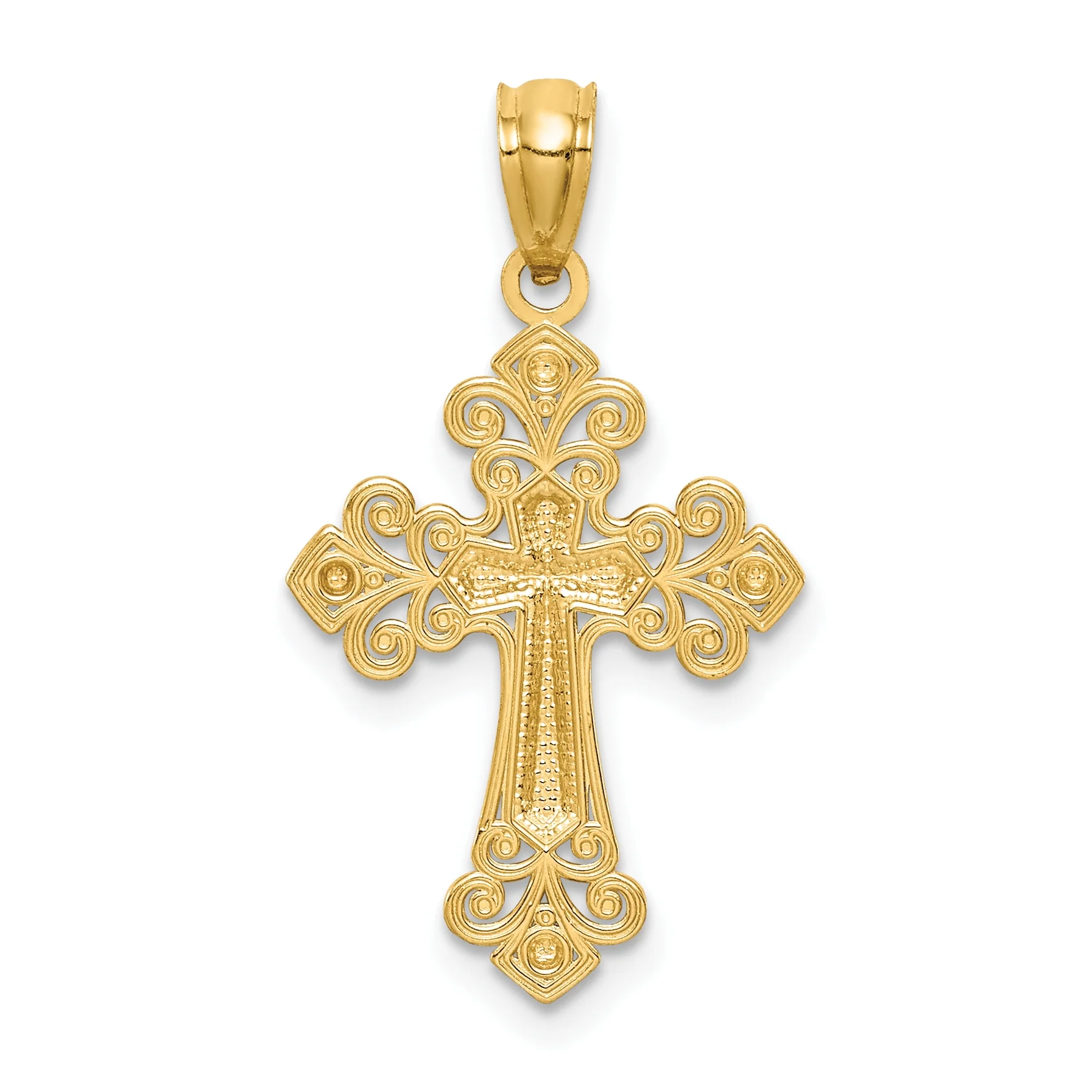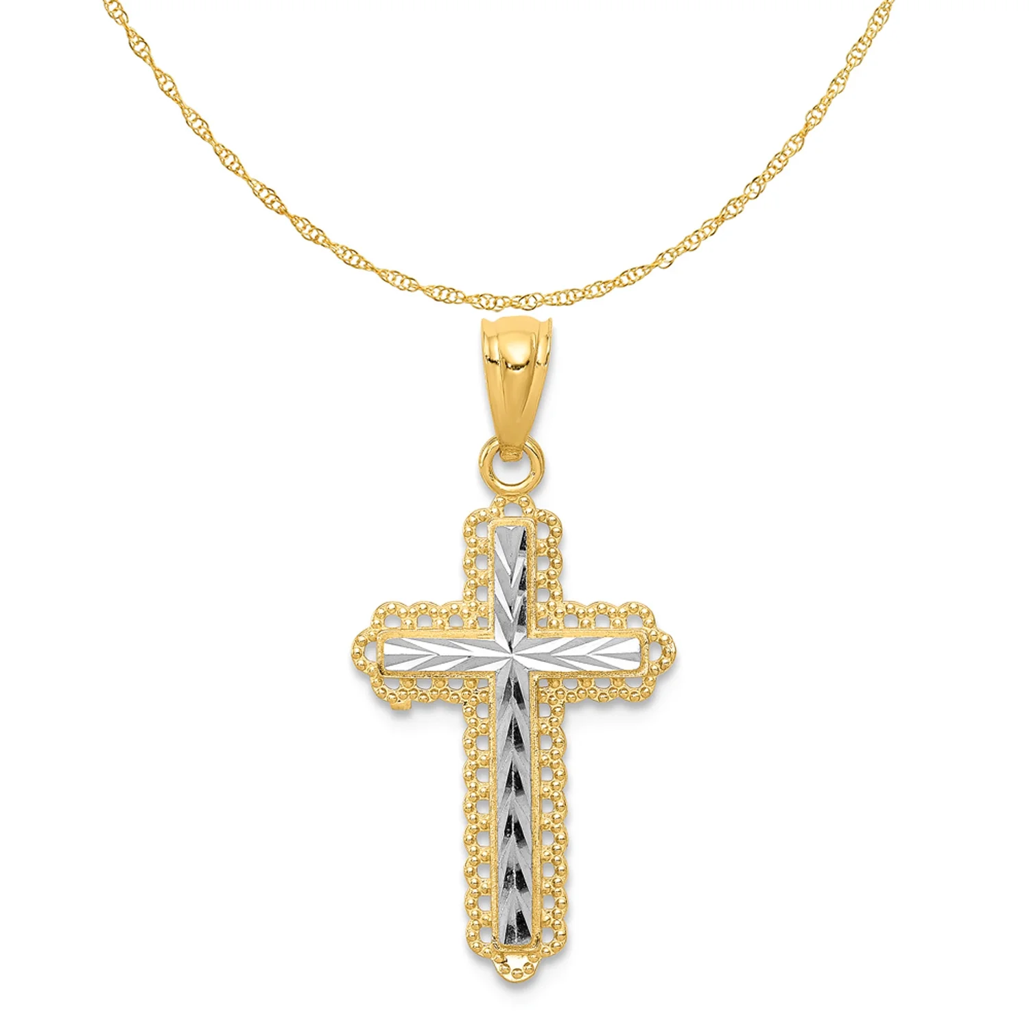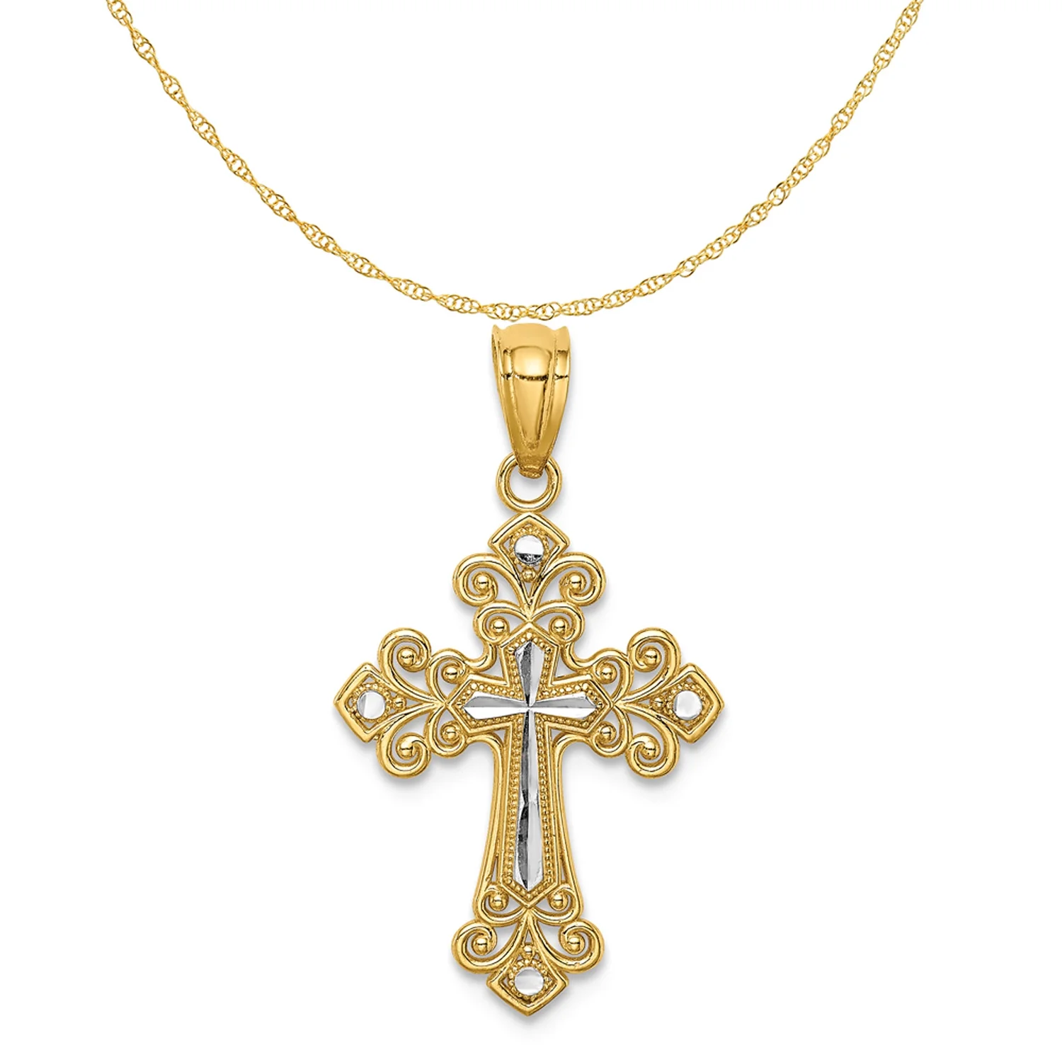 Carat In Karats 10K White Gold Rhodium Plated Polished Claddagh Cross Pendant Charm (29mm x 26mm)