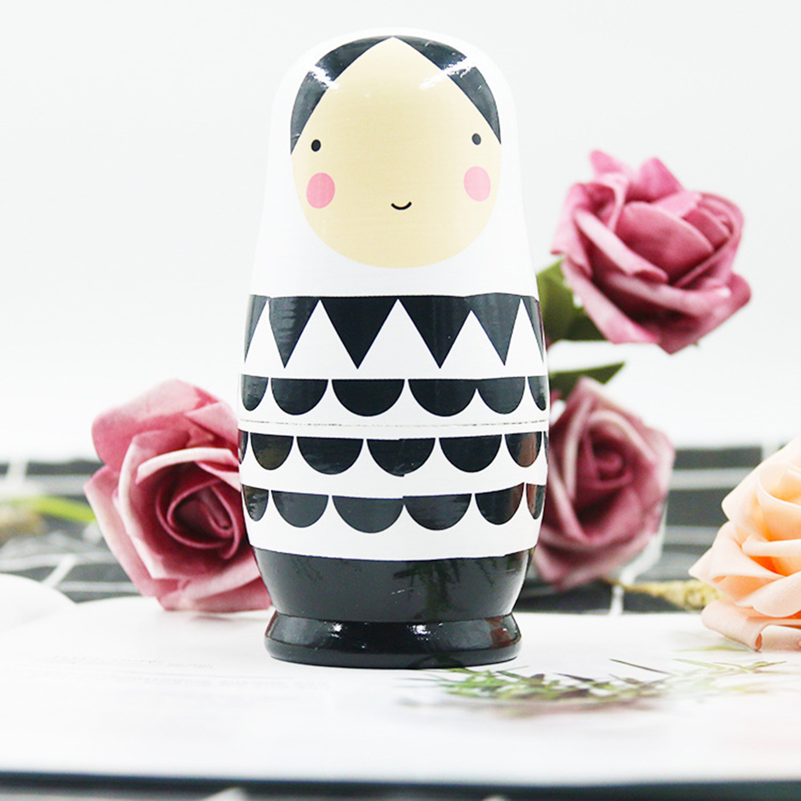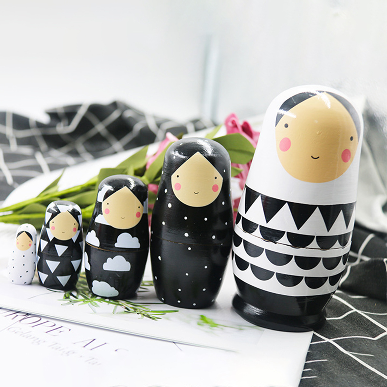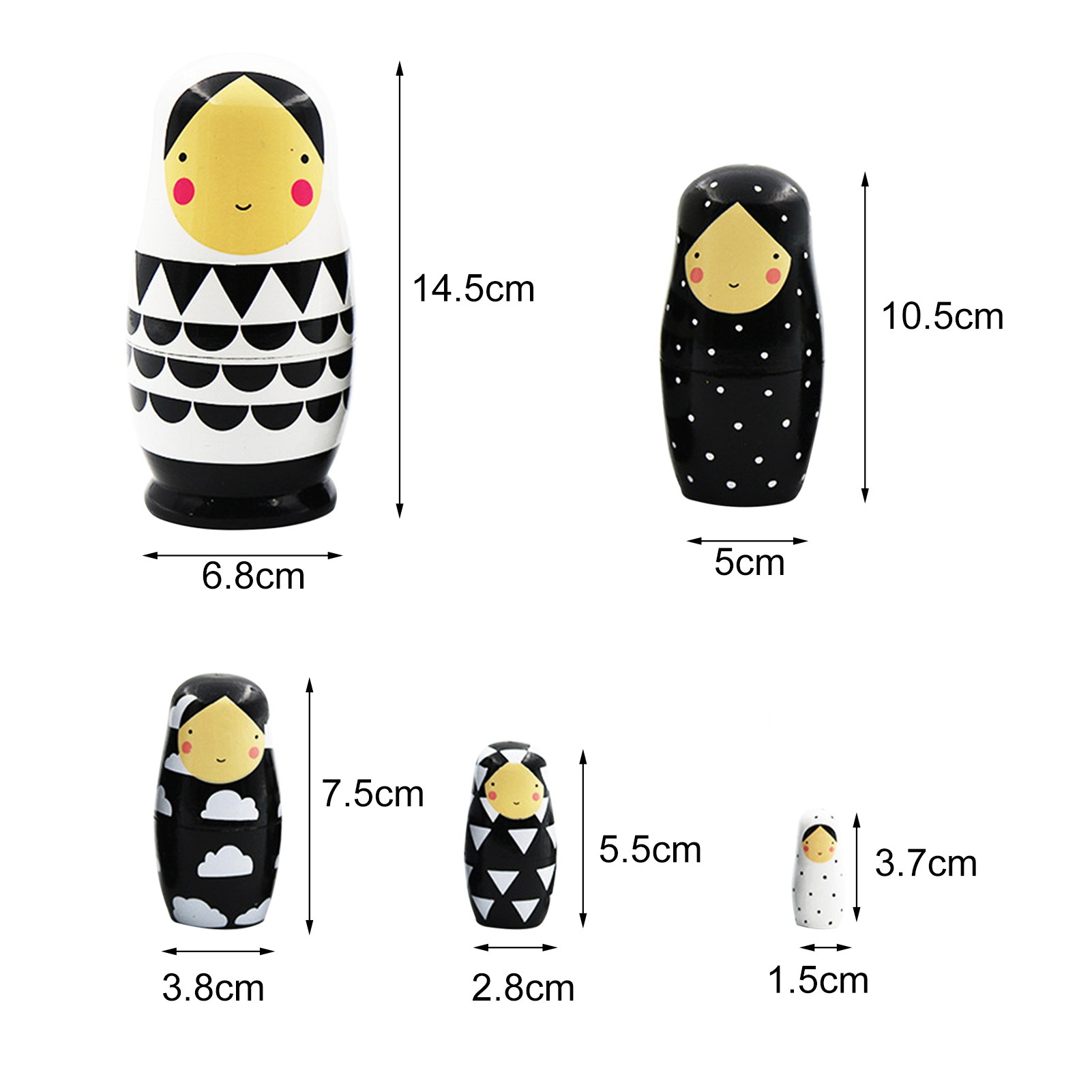 Temacd 5Pcs/Set Russian Dolls Colour-fast Unique Small Wooden Matryoshka Dolls for Indoor,Black