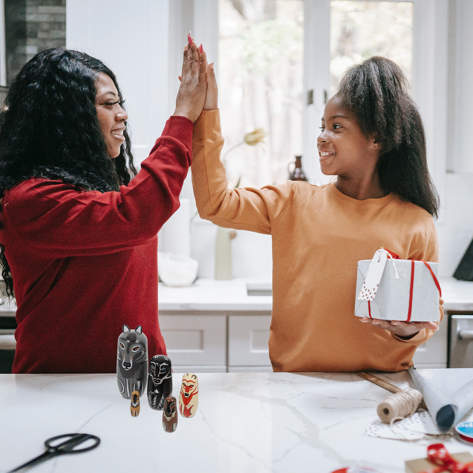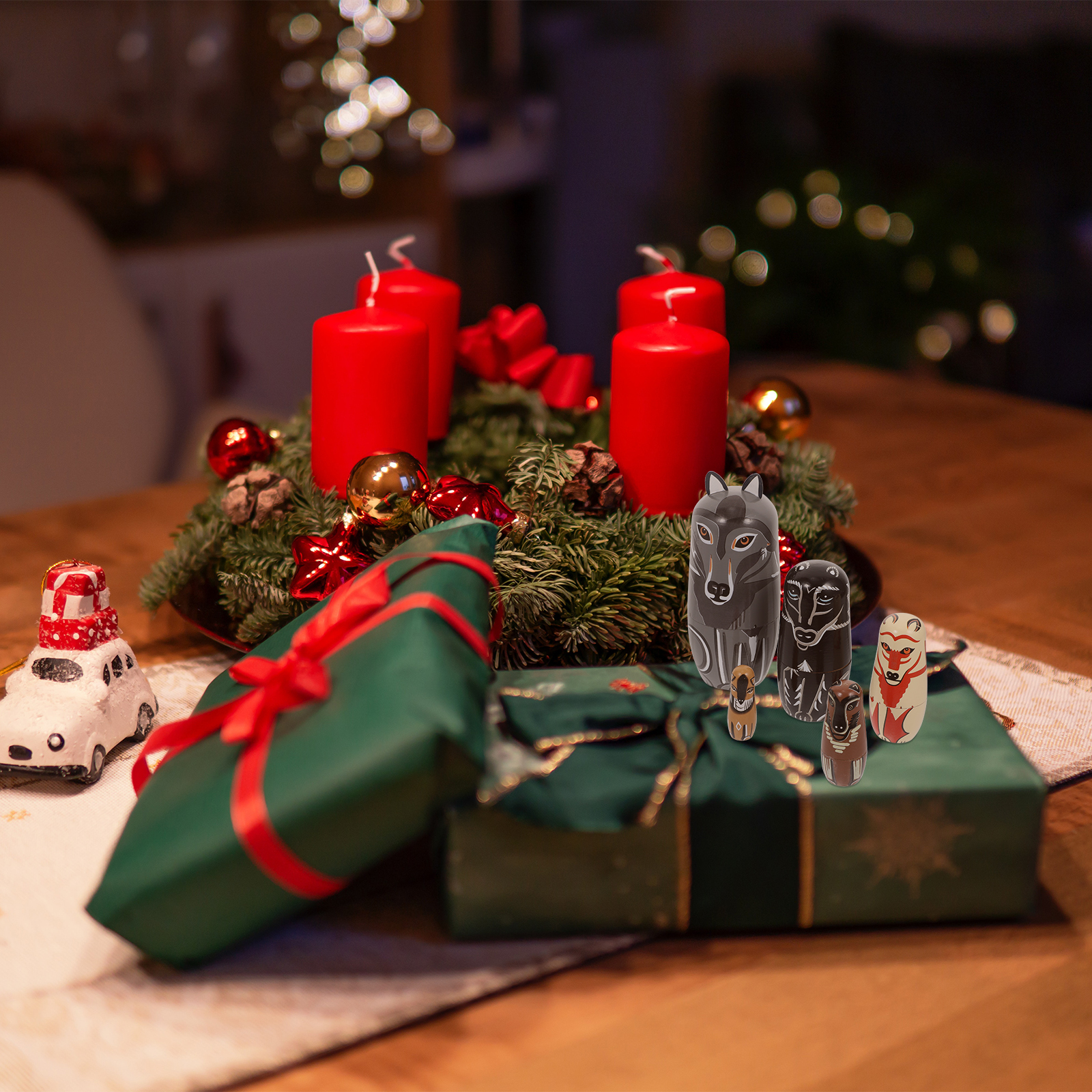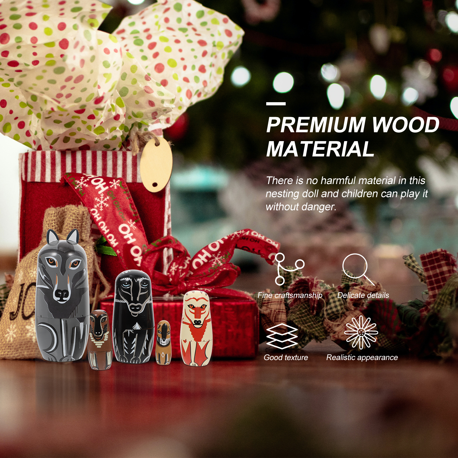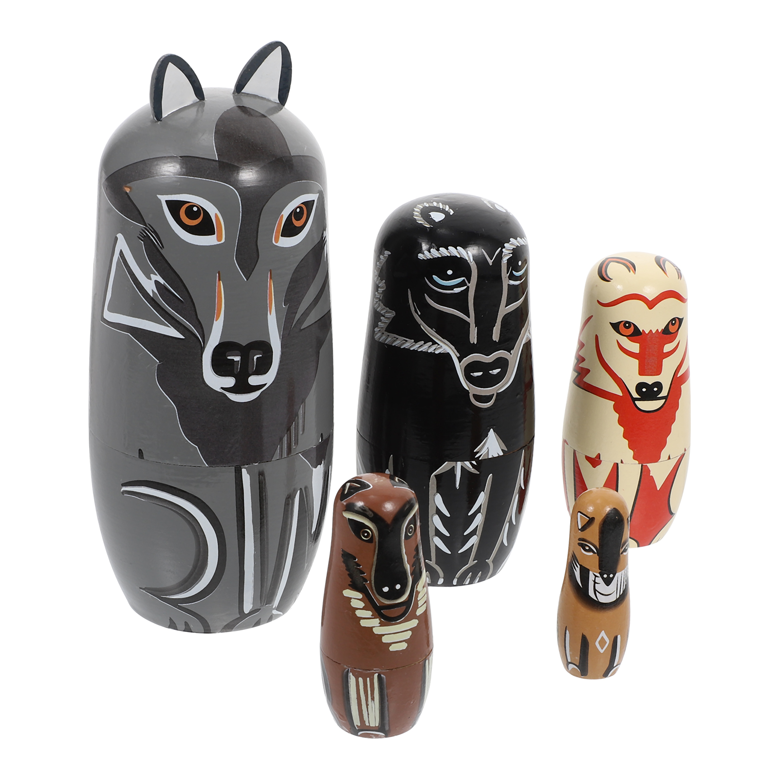 Wolf Matryoshka Doll Painted Wooden Playset Animal Stacking Dolls Home Decor Crafts