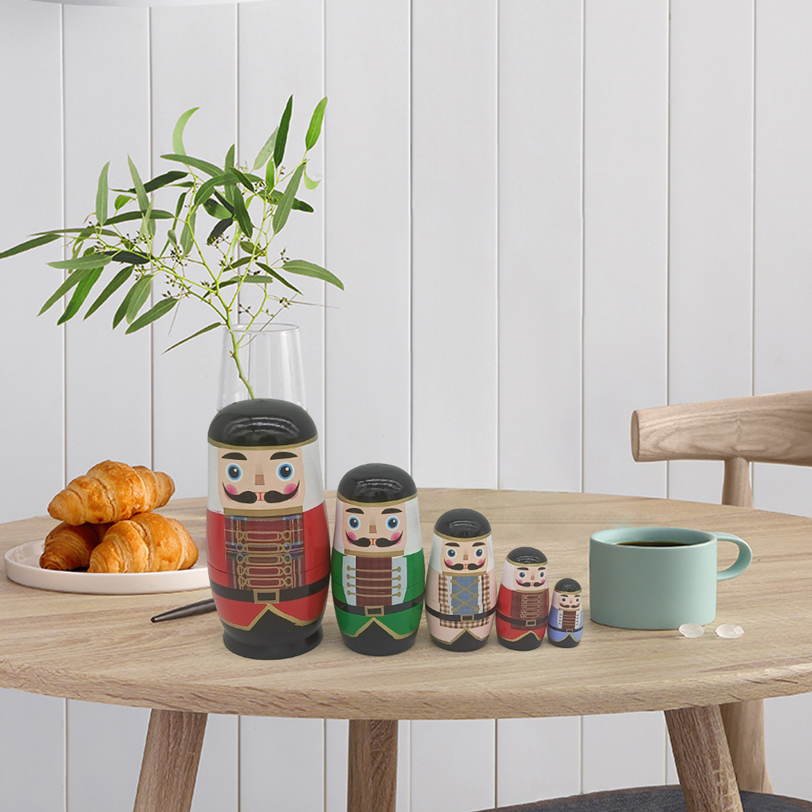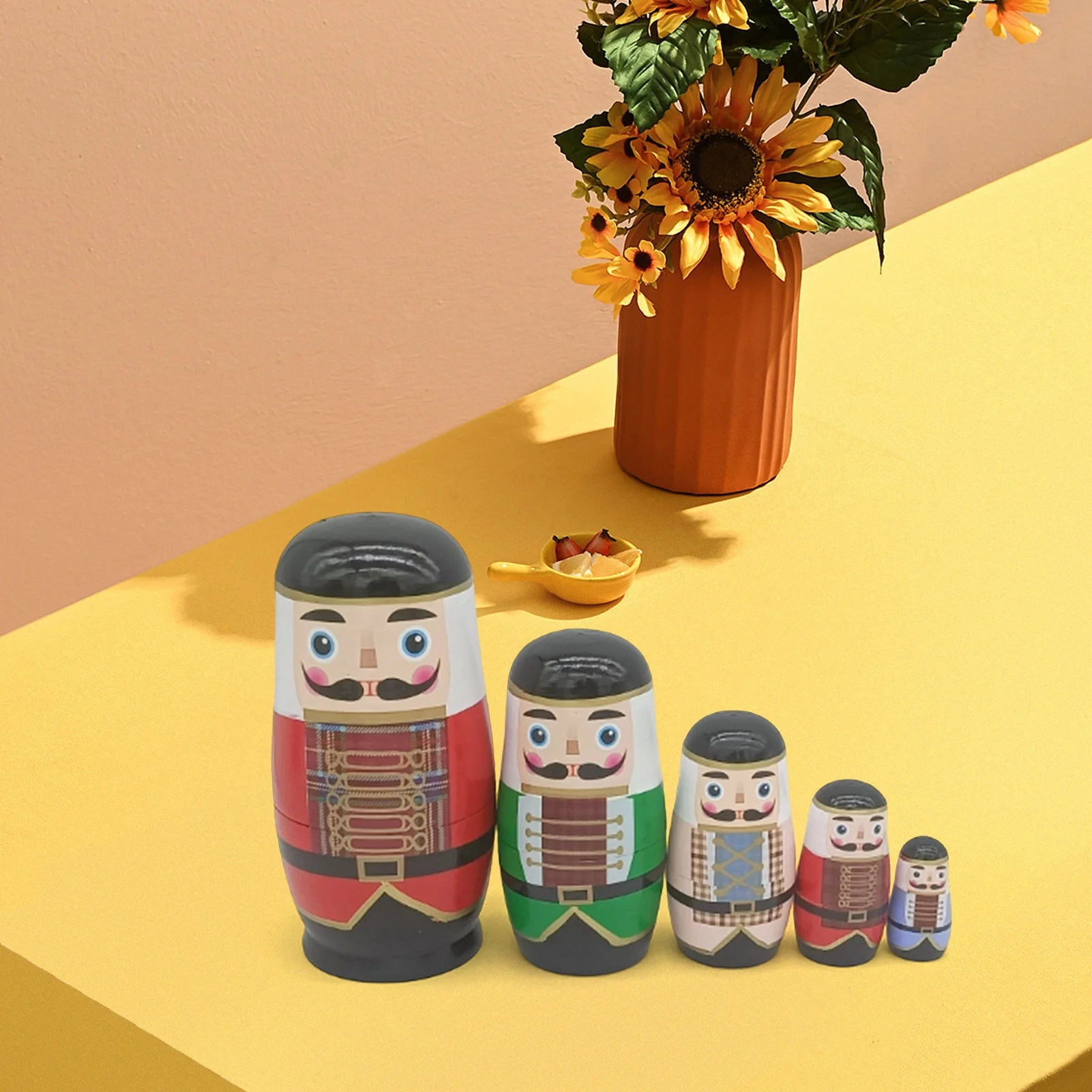 Wanwan Five-layer Russian Matryoshka Doll Regional Style DIY Walnut Soldier Nesting Doll Toy for Kindergarten
