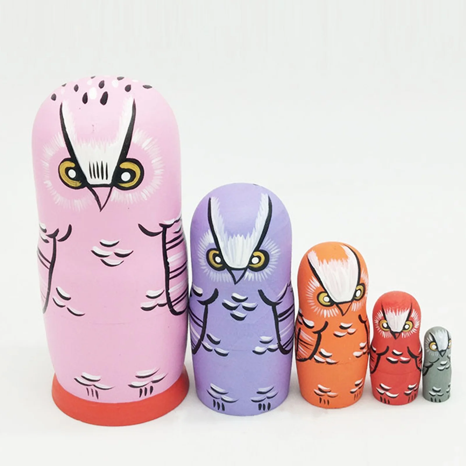 Taize 5Pcs/Set Nesting Dolls Hand-painted Ornament Wood Cartoon Owl Matryoshka Dolls for Home