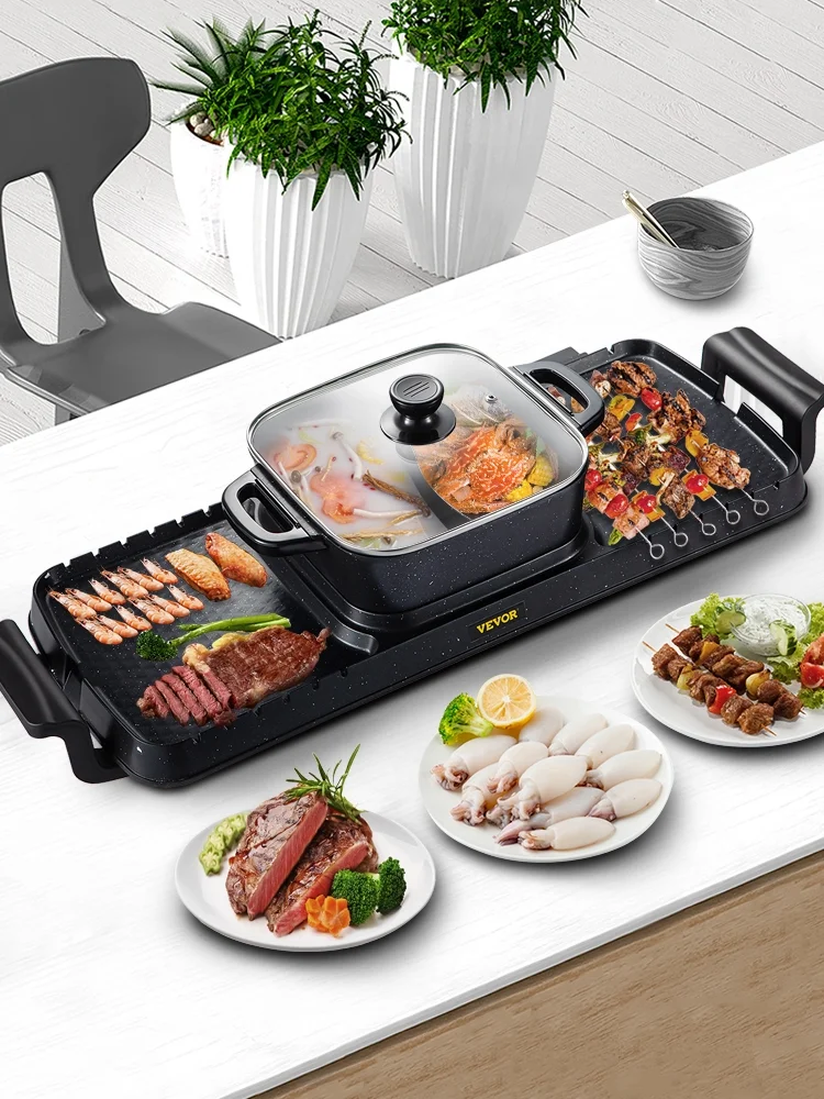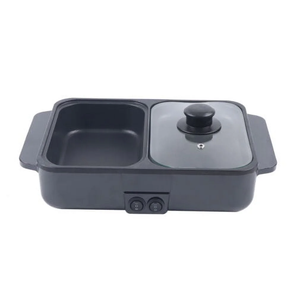 1200W Portable Electric 2 in 1 Hot Pot Barbecue Grill Non-Stick Teppanyaki Pan