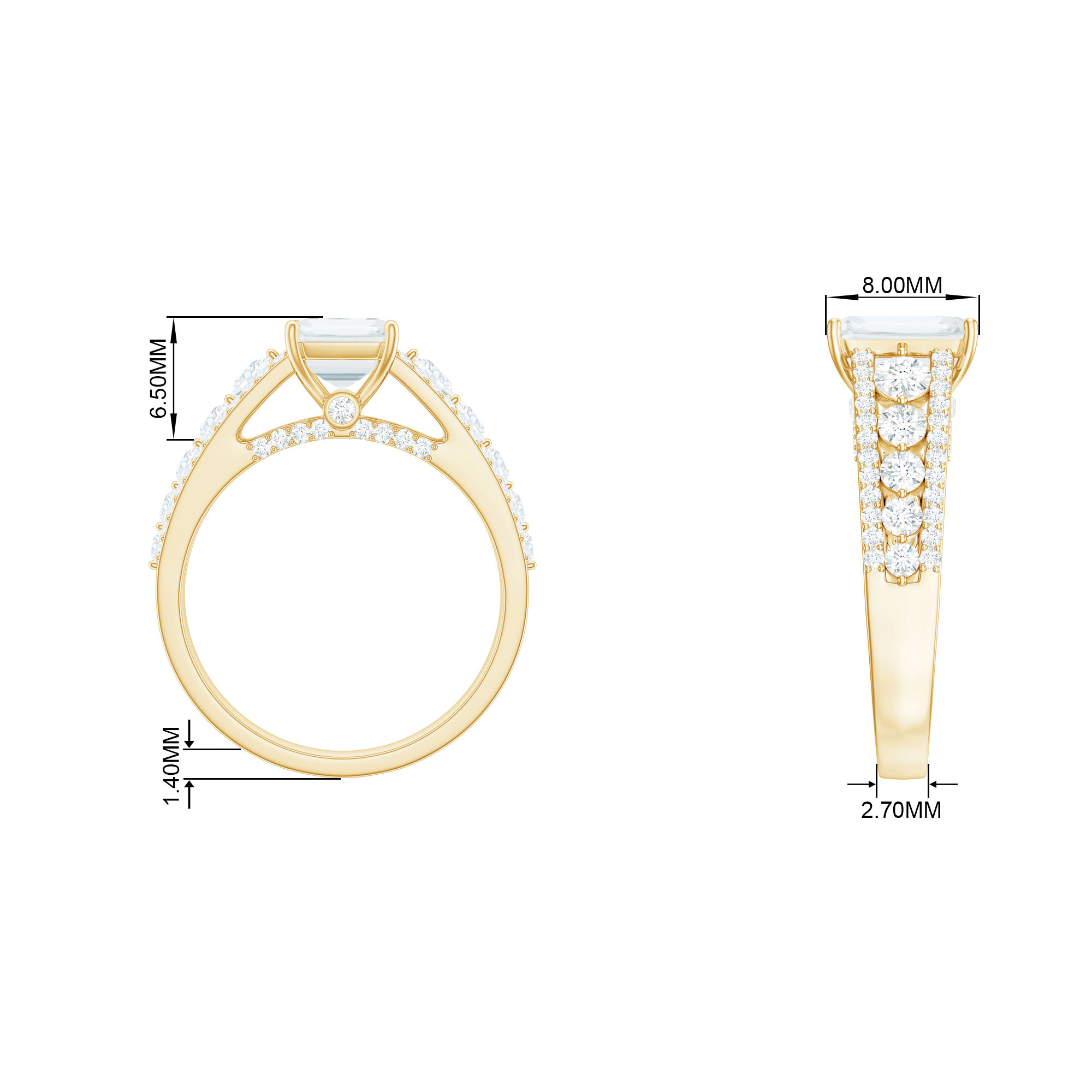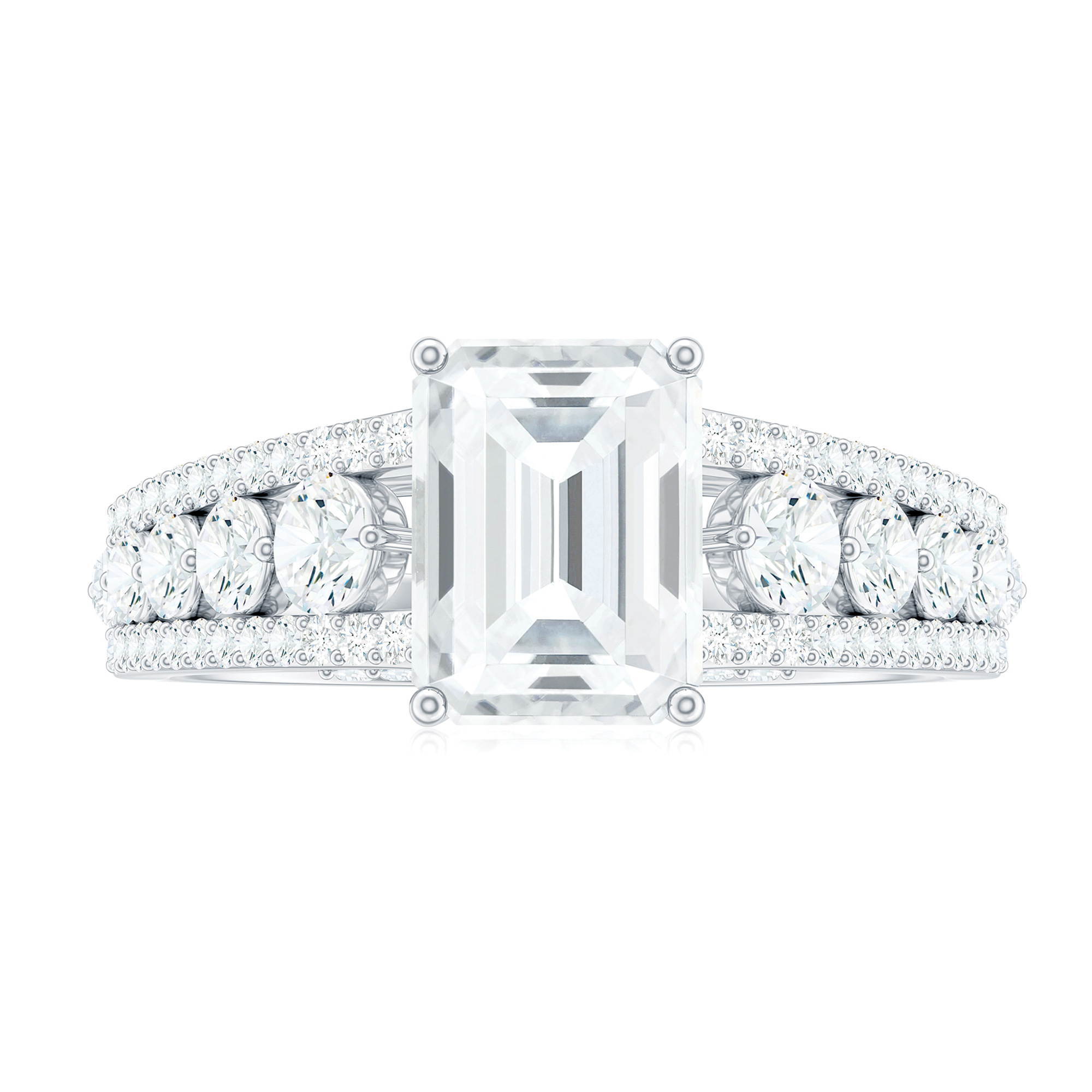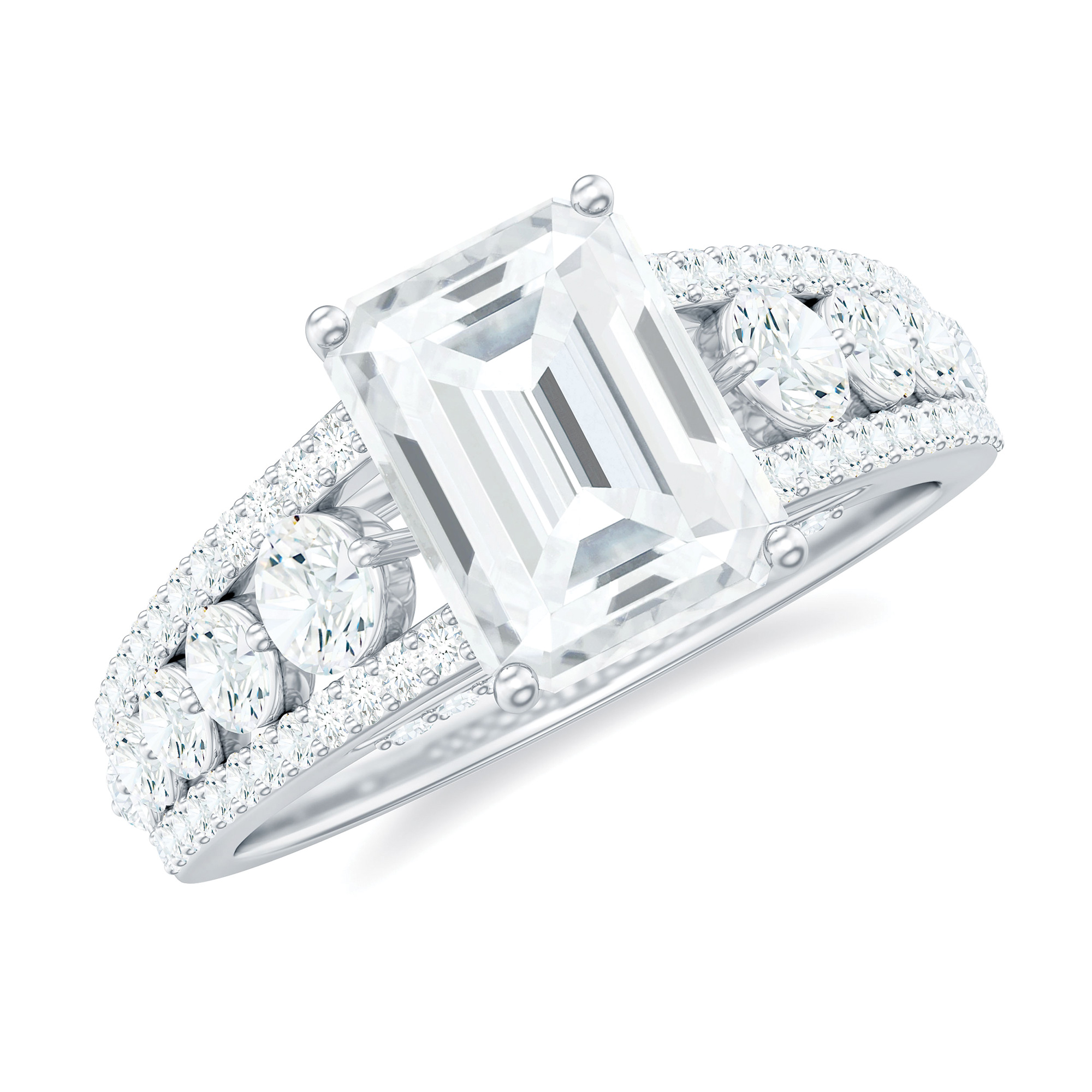 Emerald Cut Moissanite Solitaire Engagement Ring with Side Stones (3.25 CT), 18K White Gold, US 5.50
