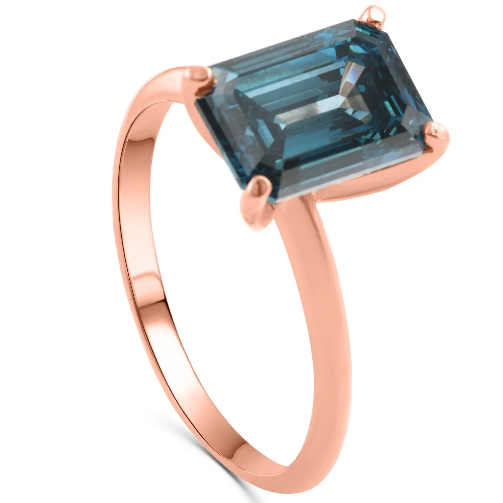 Pompeii3 3Ct Blue Diamond Emerald Cut Solitaire Engagement 14k Ring Rose Gold Lab Grown