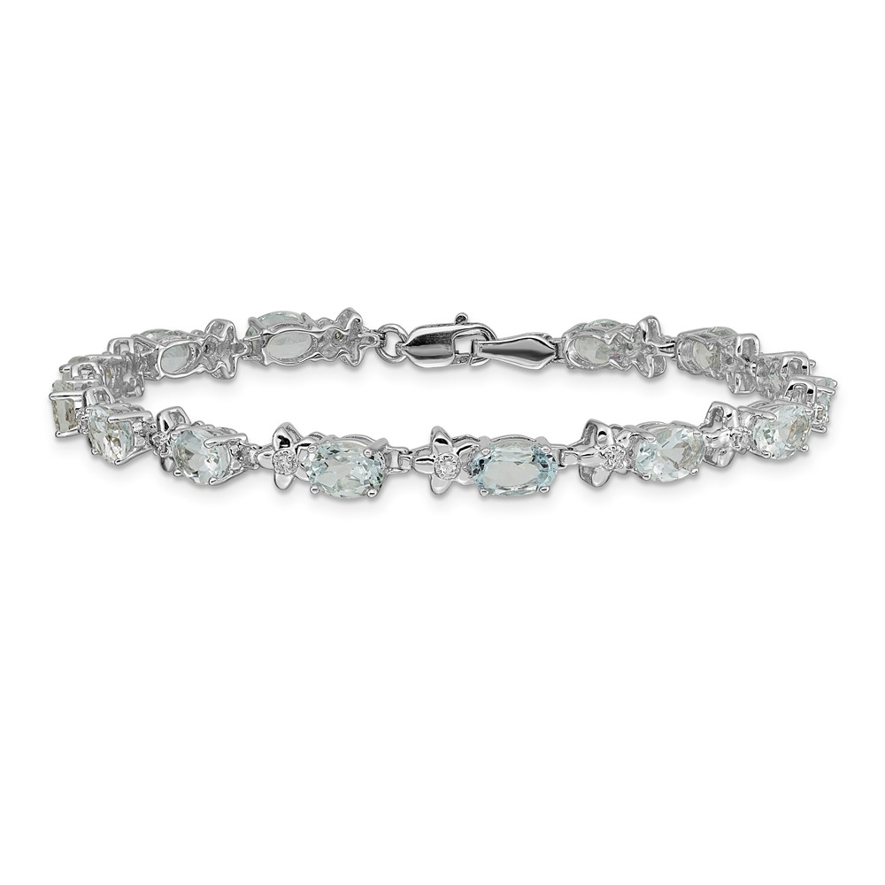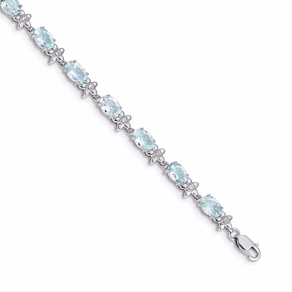 Primal Gold 14 Karat White Gold Floral Diamond and Aquamarine Bracelet
