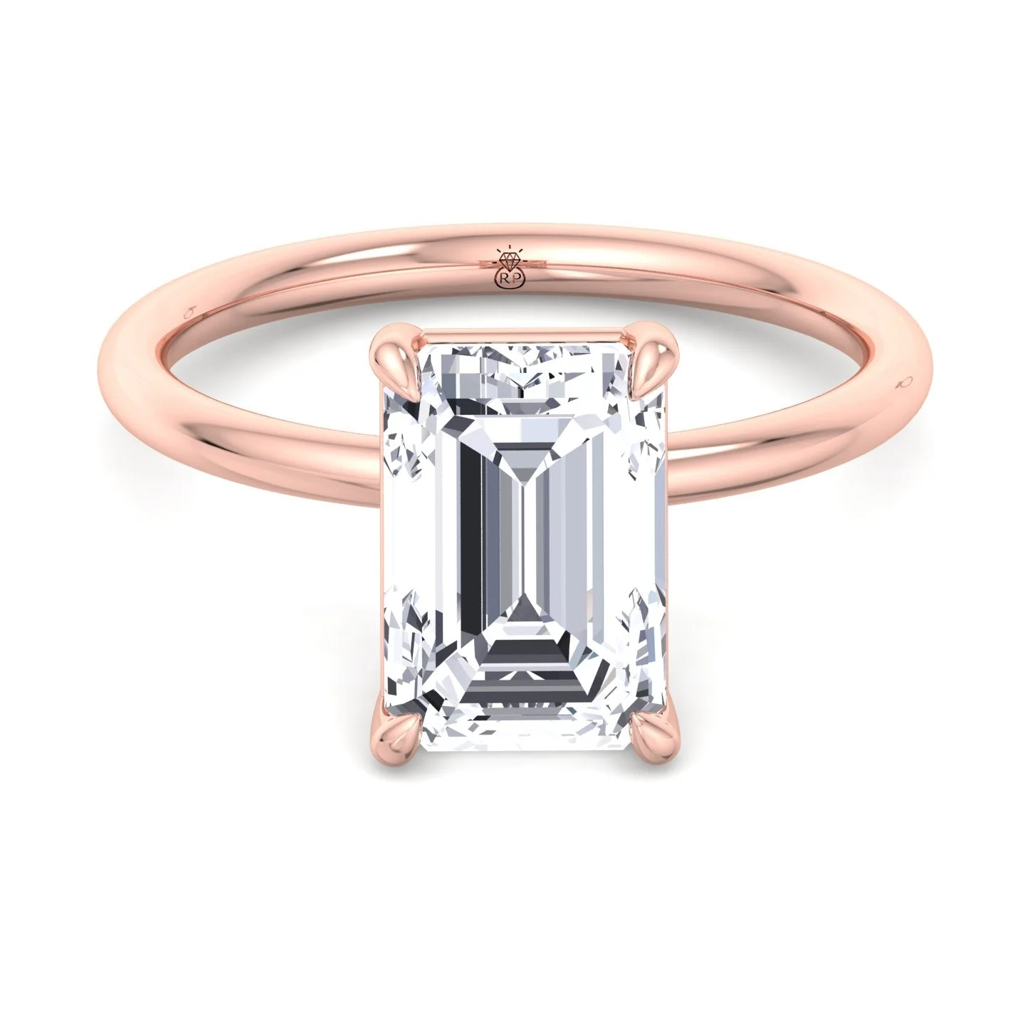 Melsa - Emerald Cut Moissanite Lab- Diamond Thin Band Solitaire Engagement Ring