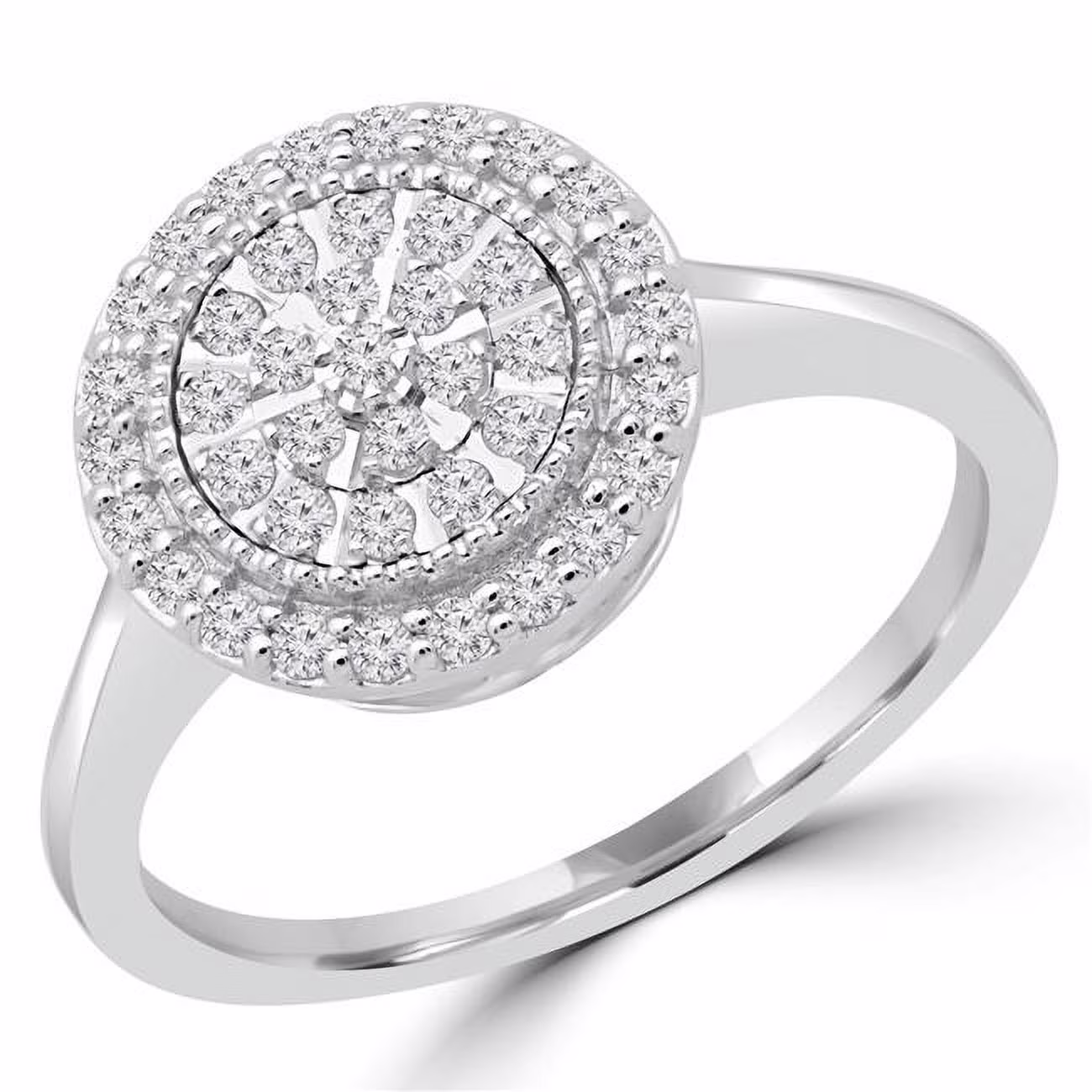 Majesty Diamonds 0.25 CTW Round Diamond Promise Halo Cluster Engagement Ring in 10K White Gold - Size 5.75