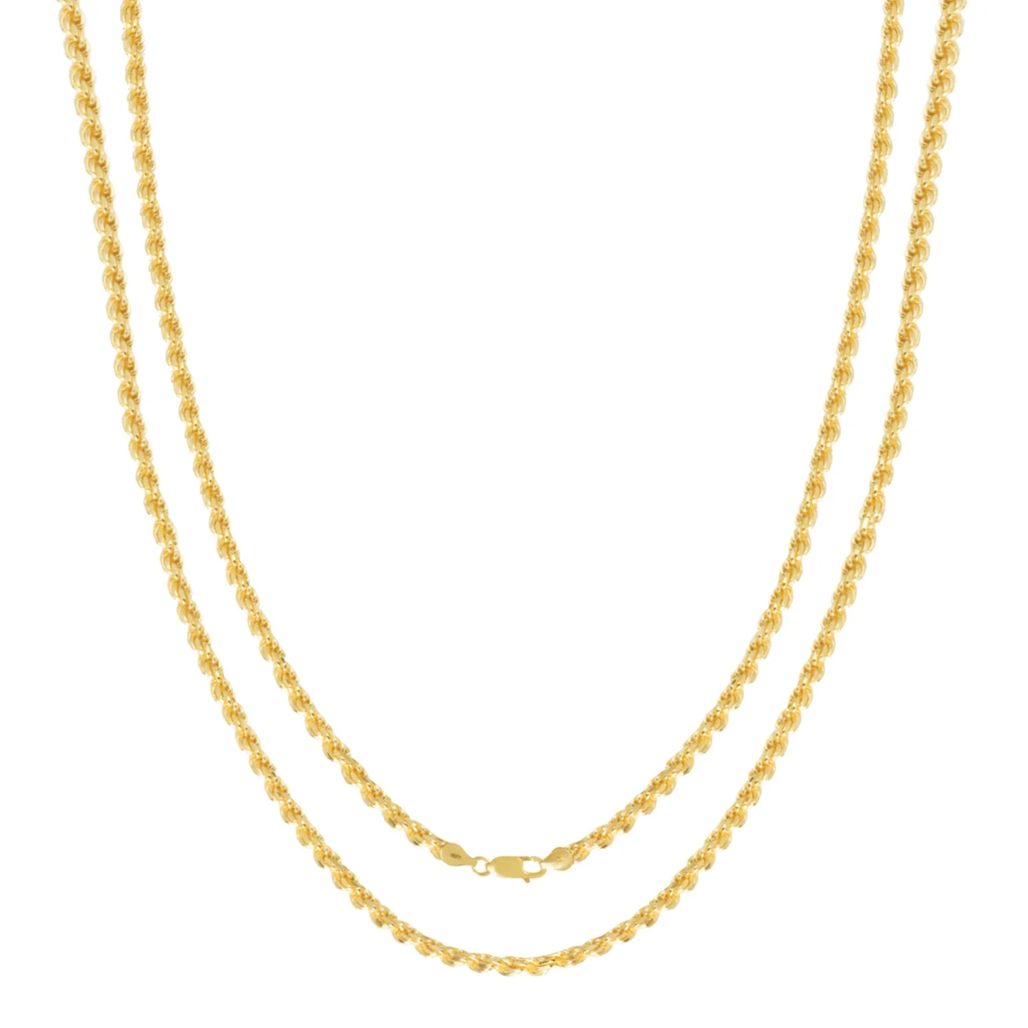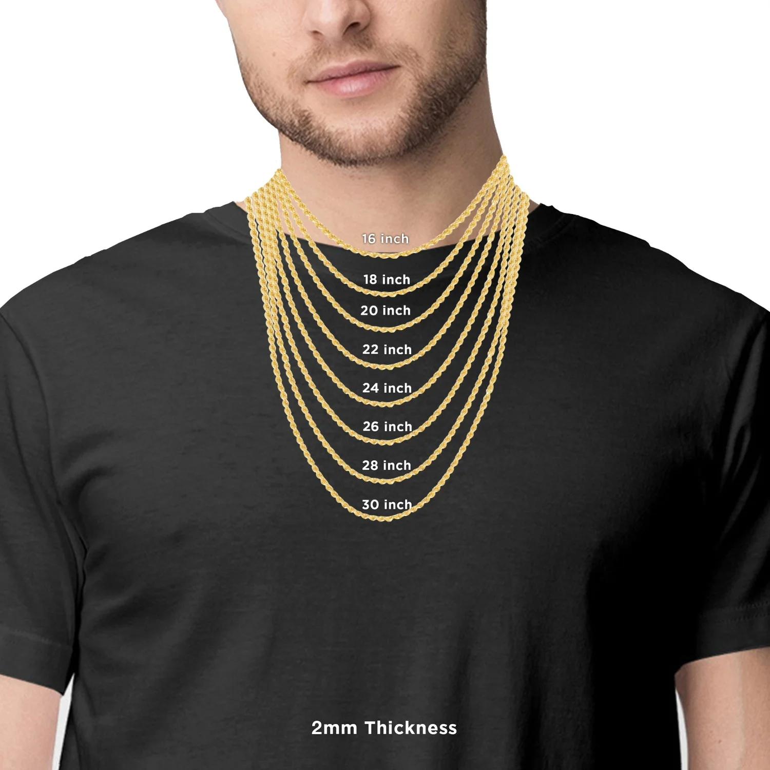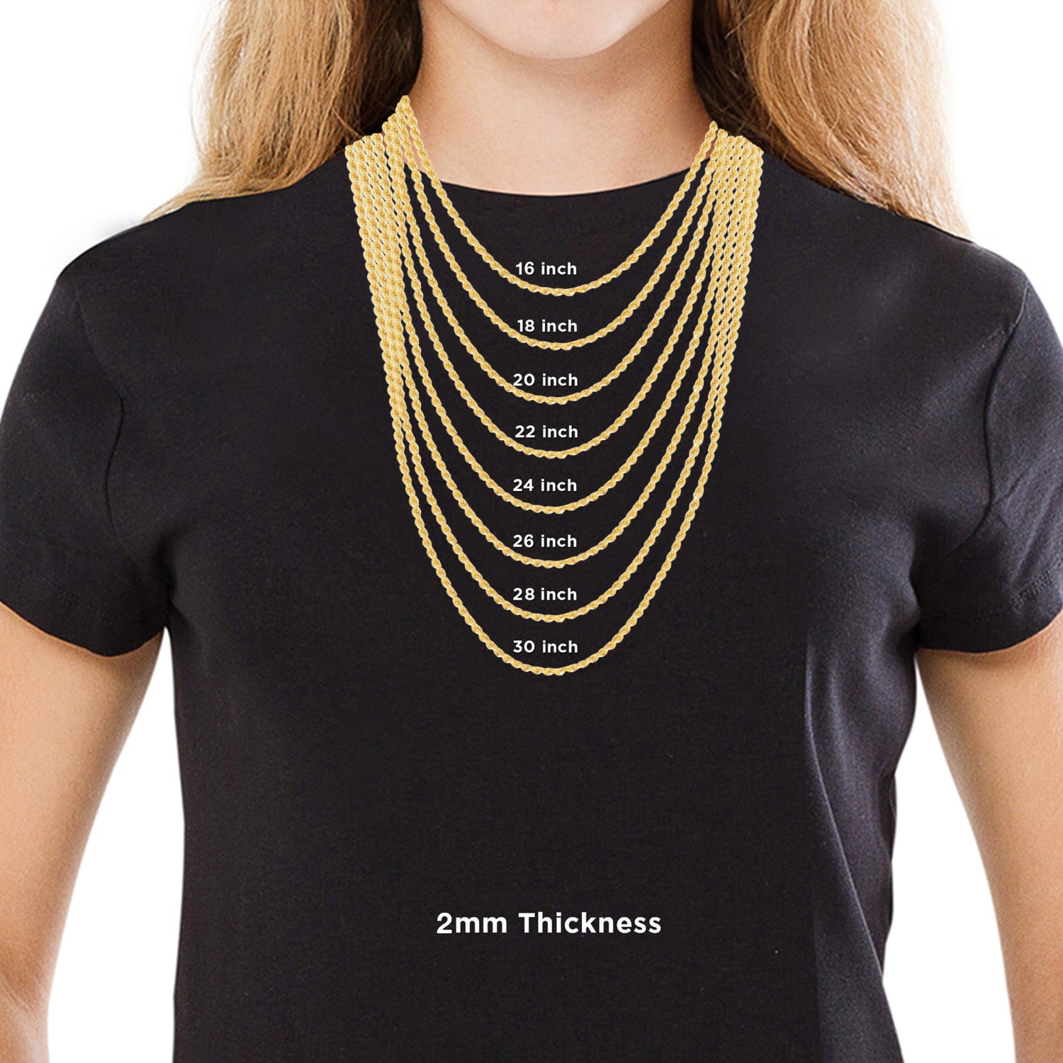 Sterling Silver and Gold Plated Rope Chain Necklaces and Bracelets - 2.00MM Thick - 18 Inches