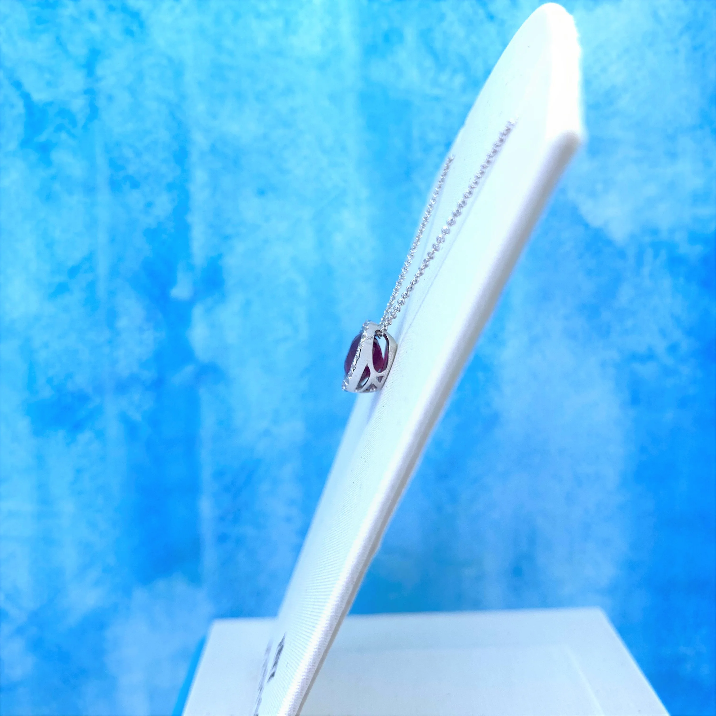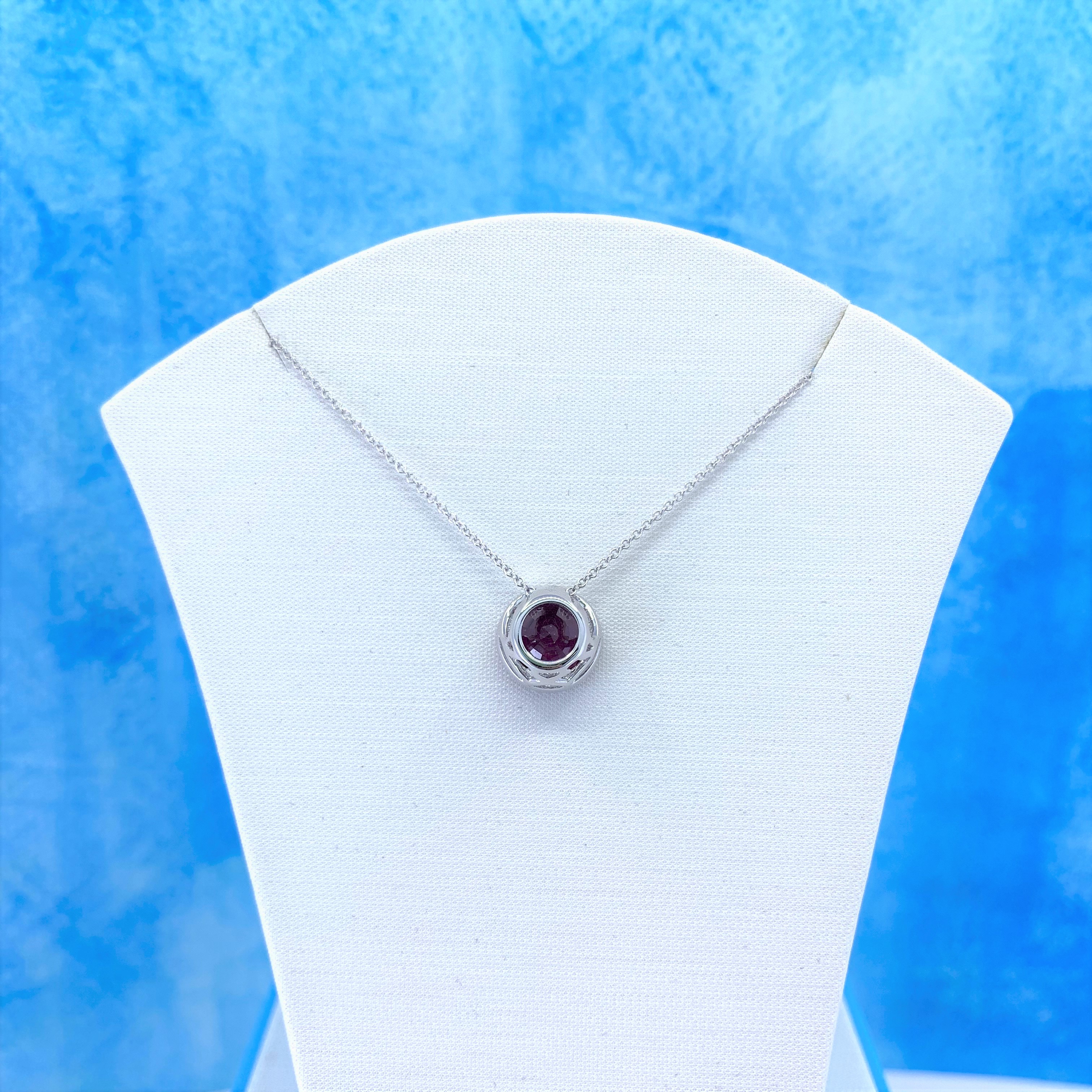 14K White Gold Necklace with 2.05-ct Round Red Ruby and 0.05-ct White Diamonds