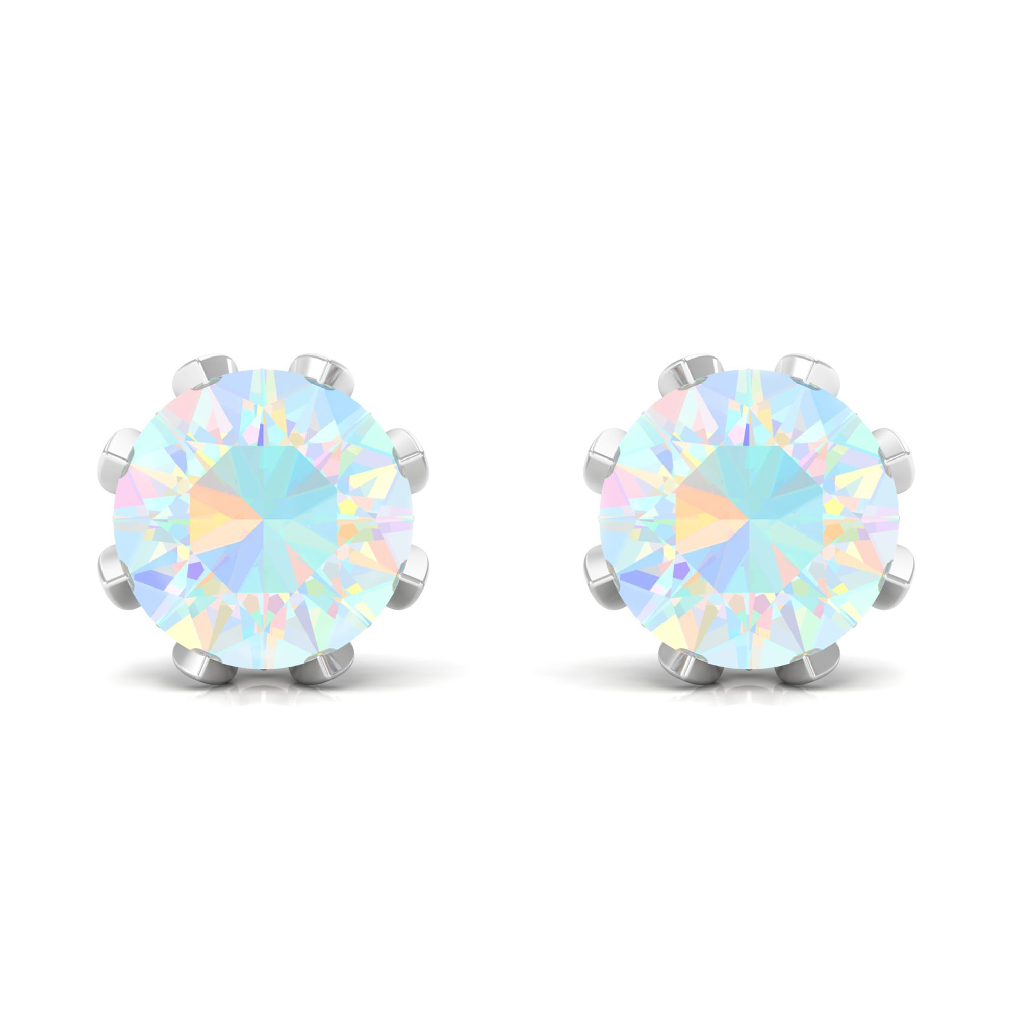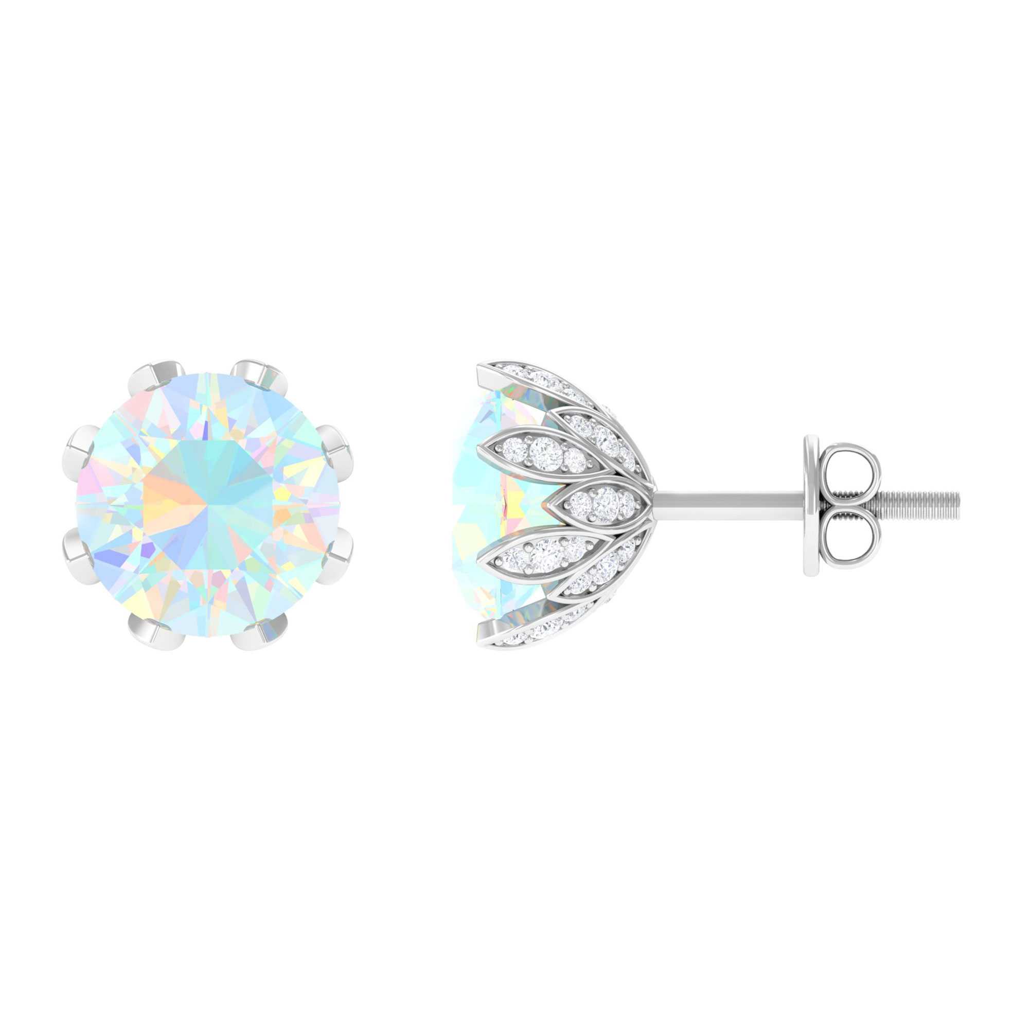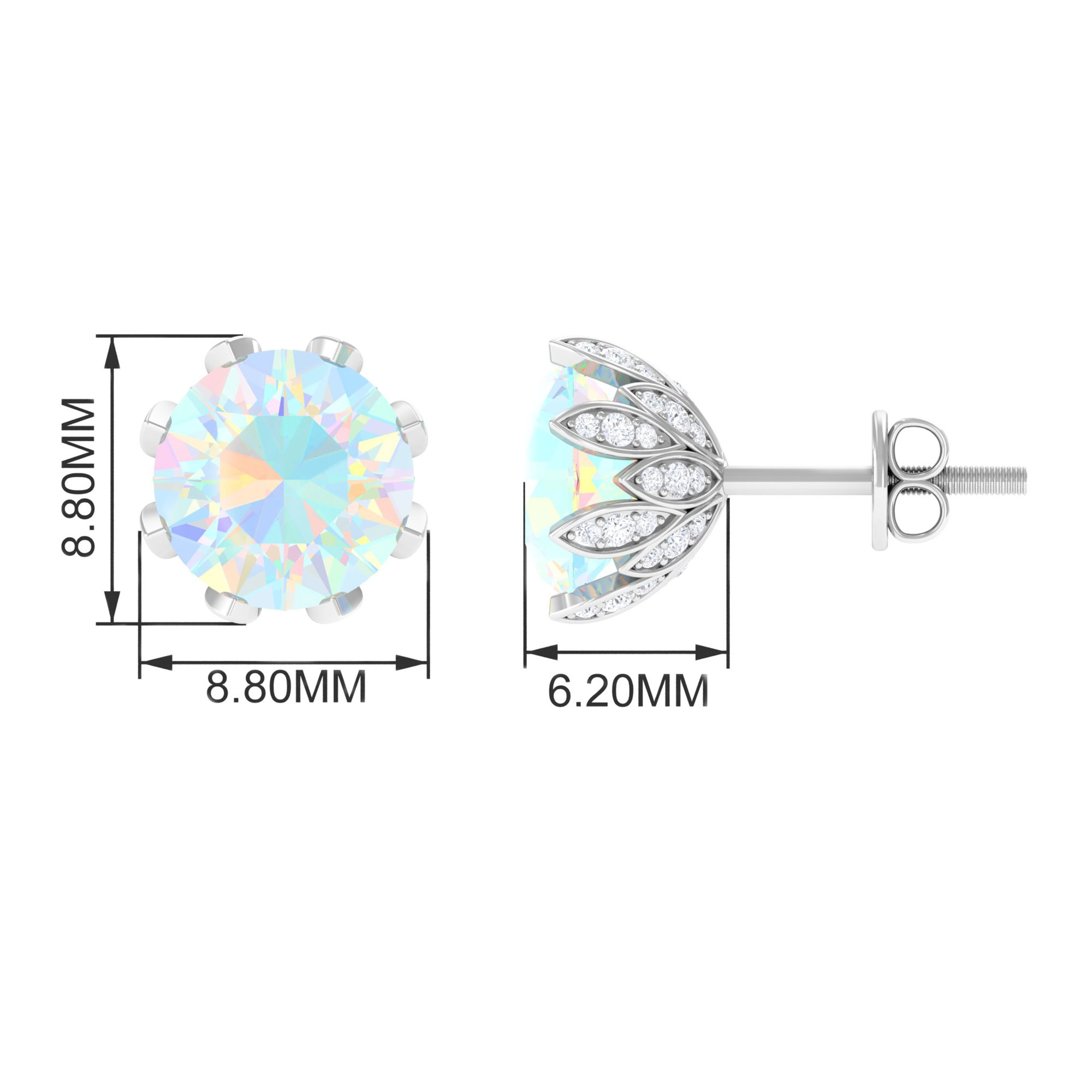 Ethiopian Opal Floral Stud Earrings for Women with Diamond (8 mm, AAA Grade), 925 Sterling Silver