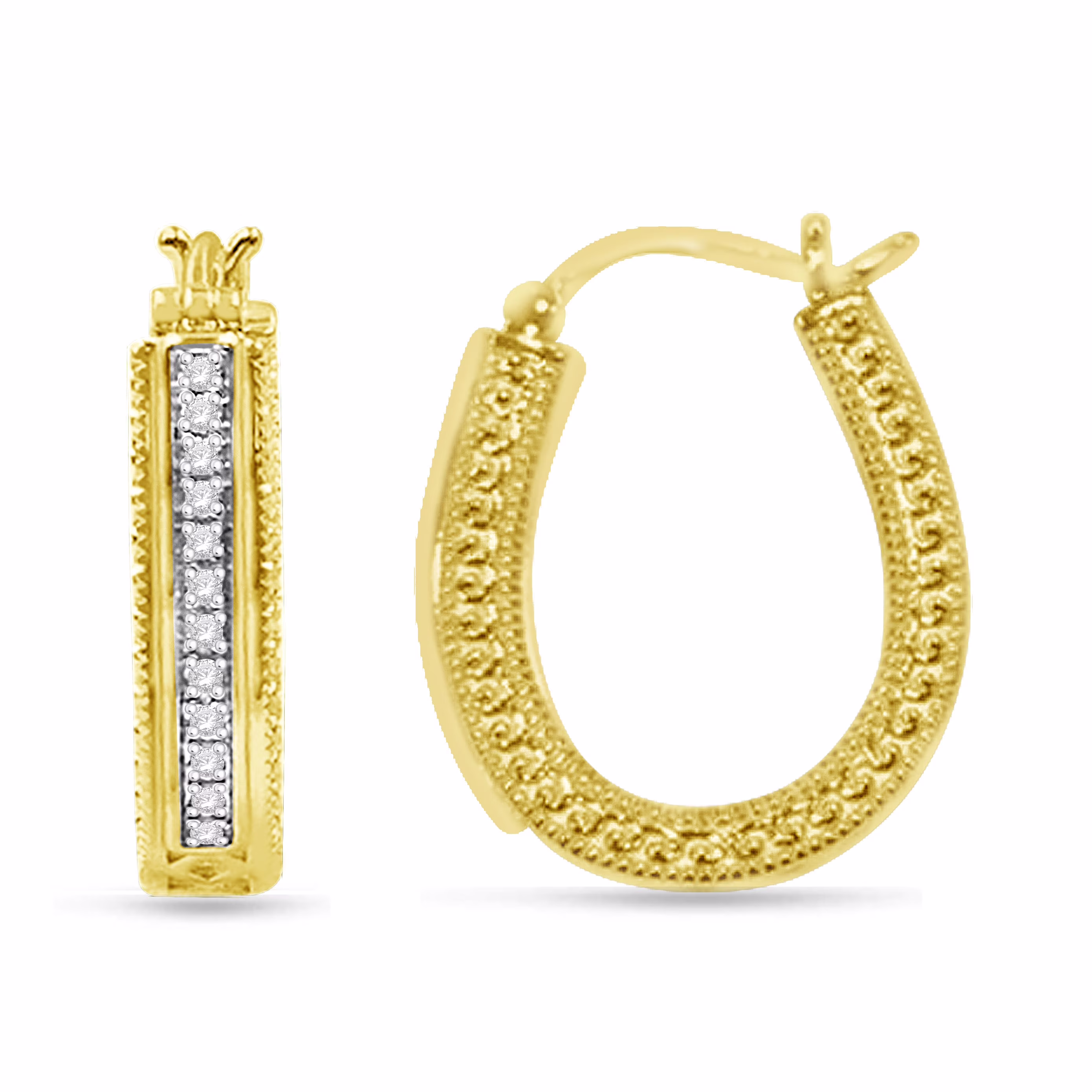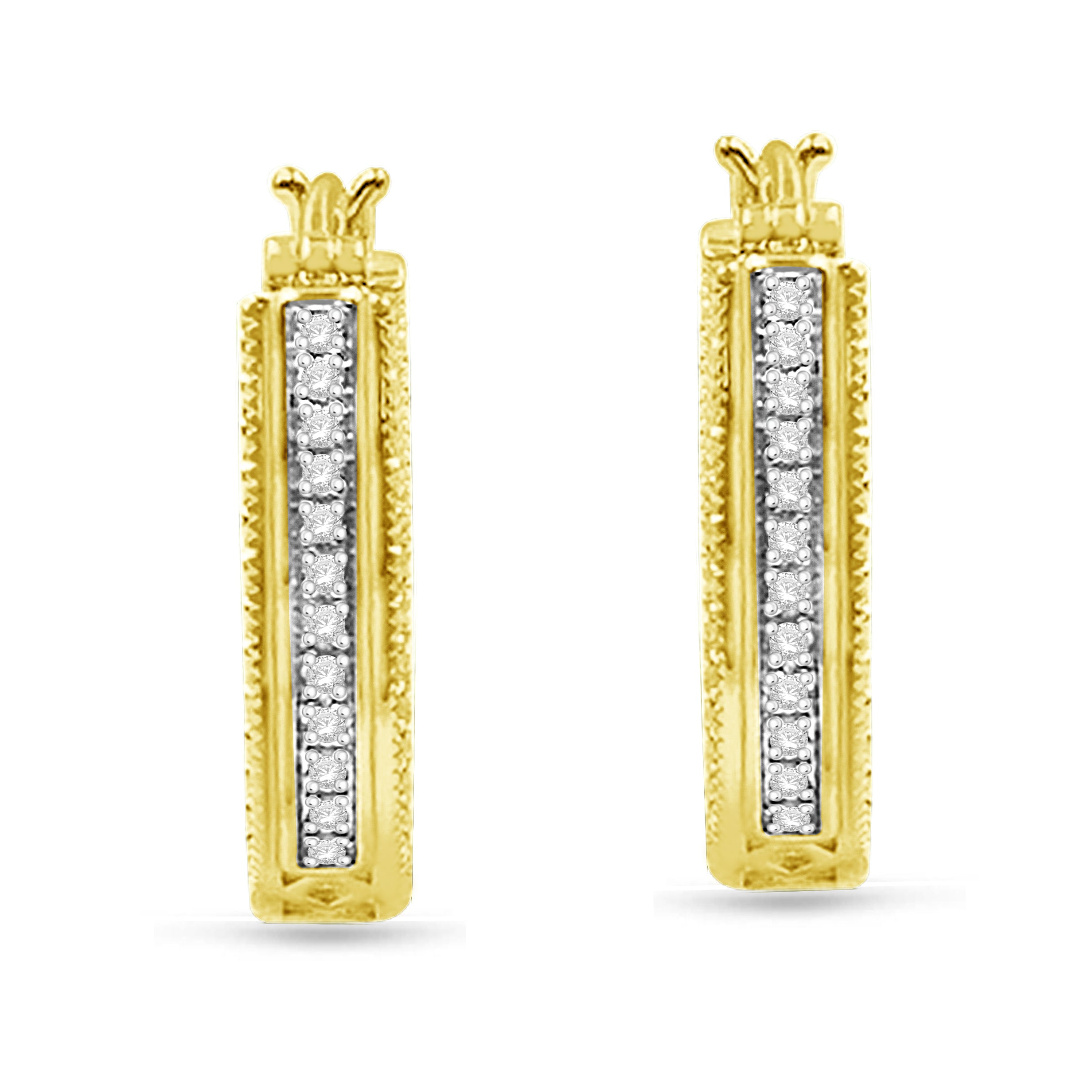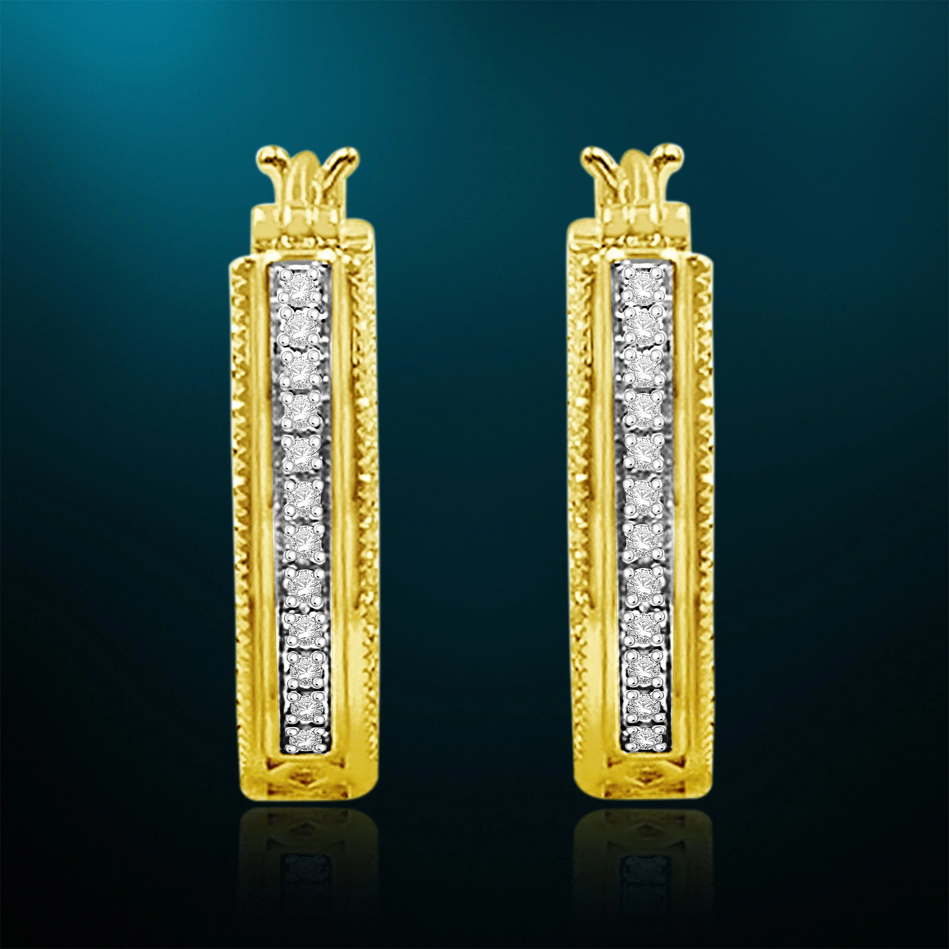 1/10 Cttw Diamond Round Filigree Hoop Earrings in Yellow Gold Plated Sterling Silver